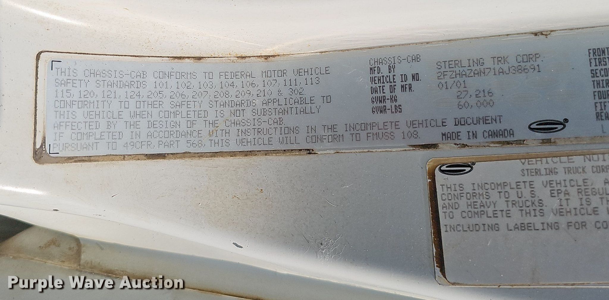 Purple Wave is selling a used Construction Dump Truck in Missouri. This item is a 2001 Sterling L9500 dump truck with the following: Miles: 23,694 on odometer, Hours: 6,009 on meter, VIN: 2FZHAZAN71AJ38691