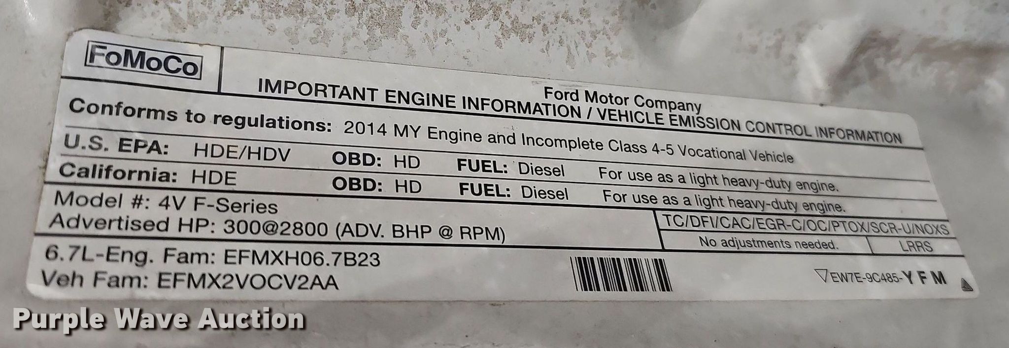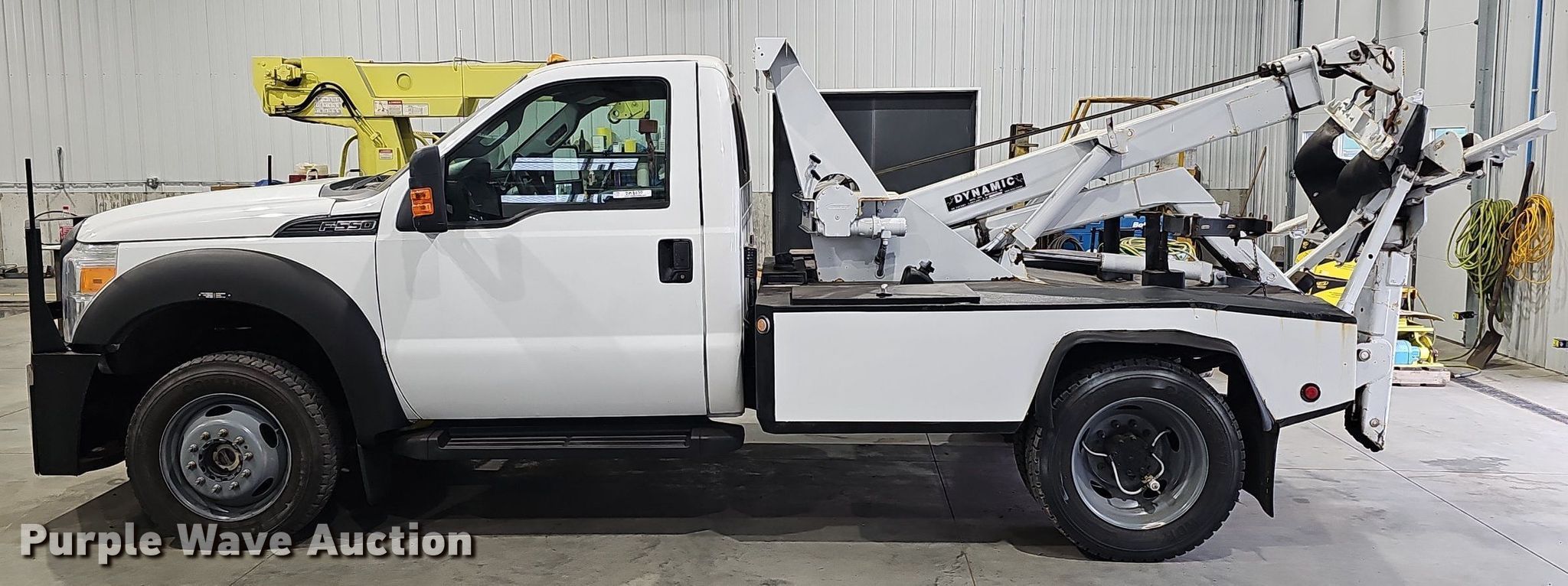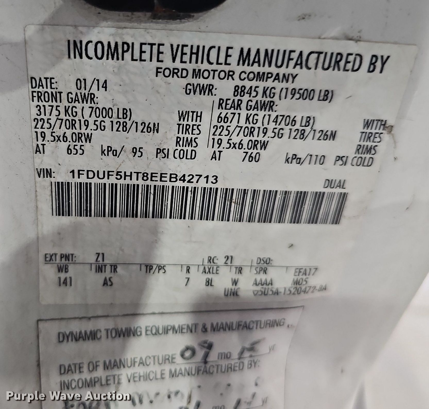 2014 Ford F550 Super Duty tow truck. Miles: 45,931 on odometer, VIN: 1FDUF5HT8EEB42713. Engine Displacement: 6.7L V8 OHV, Cylinders: 8, Fuel type: Diesel. Transmission Automatic. Chassis Four wheel drive, Axles: Single, Suspension: Spring, Brakes: Hydraulic, GVWR: 19,500 lbs, Wheelbase: 142". Interior AC, Heat, Power windows, Power locks, Auxiliary controls. Features Wrecker bed Dynamic 7016TW, Serial: 8268, 10' 2" L x 94" W, Wrecker boom: Hydraulic extendable, Winch Dual, Capacity: 8,000 lbs, Underlift Hydraulic fold, Capacity: 5,000 lbs, Remote control, Ramsey front winch Capacity: 15,000 lbs. Tires Size: 220/70R19.5. Notes Engine repaired December, 2021. View repairs. Nebraska title. Title distribution may be delayed up to 14 days from verification of funds. Midwest Waste Trucks. 2011 Clarice Street. Doniphan, NE 68832