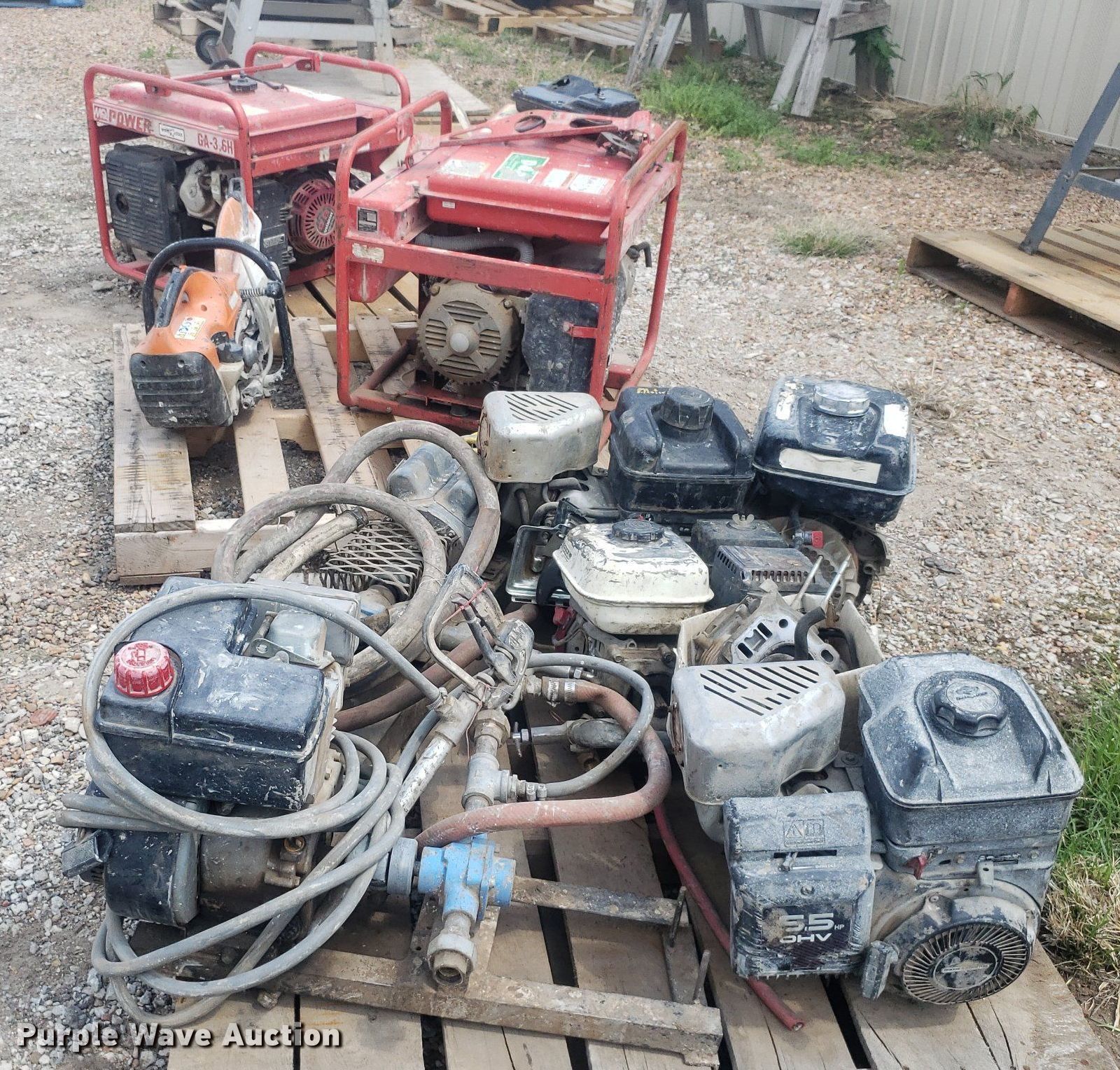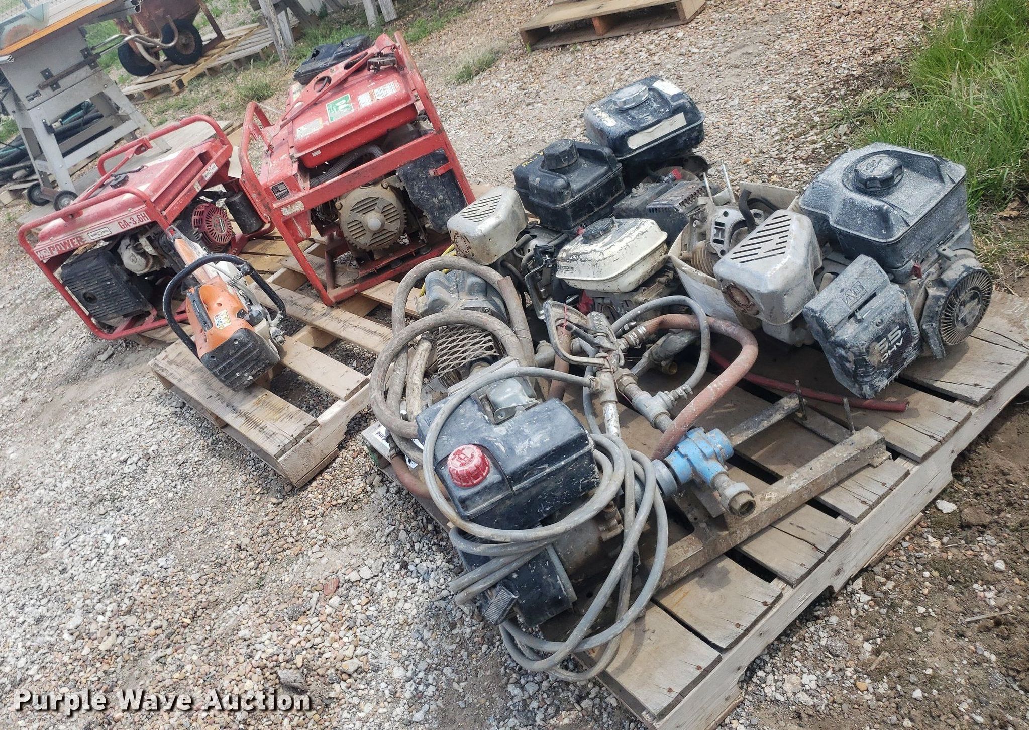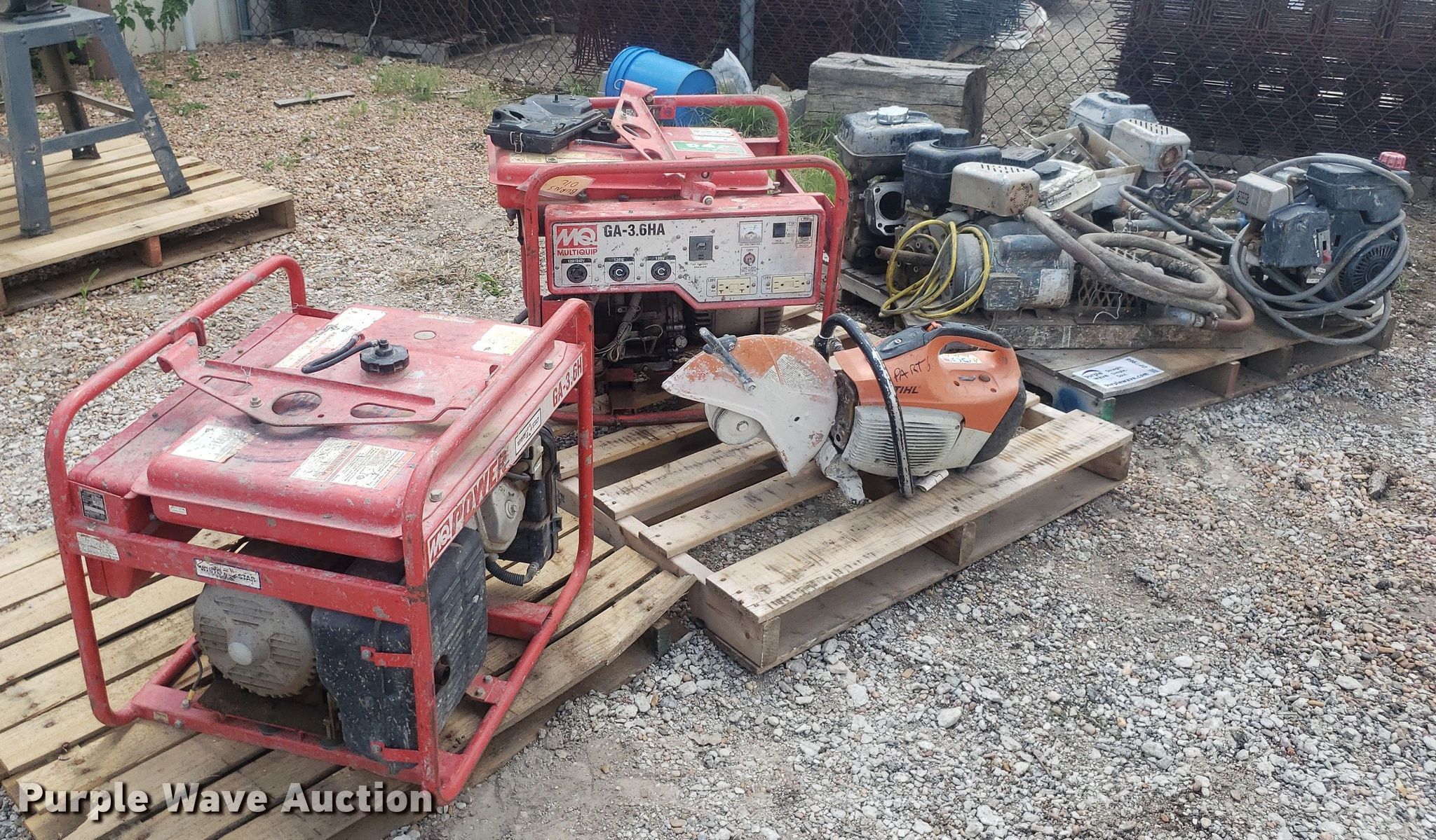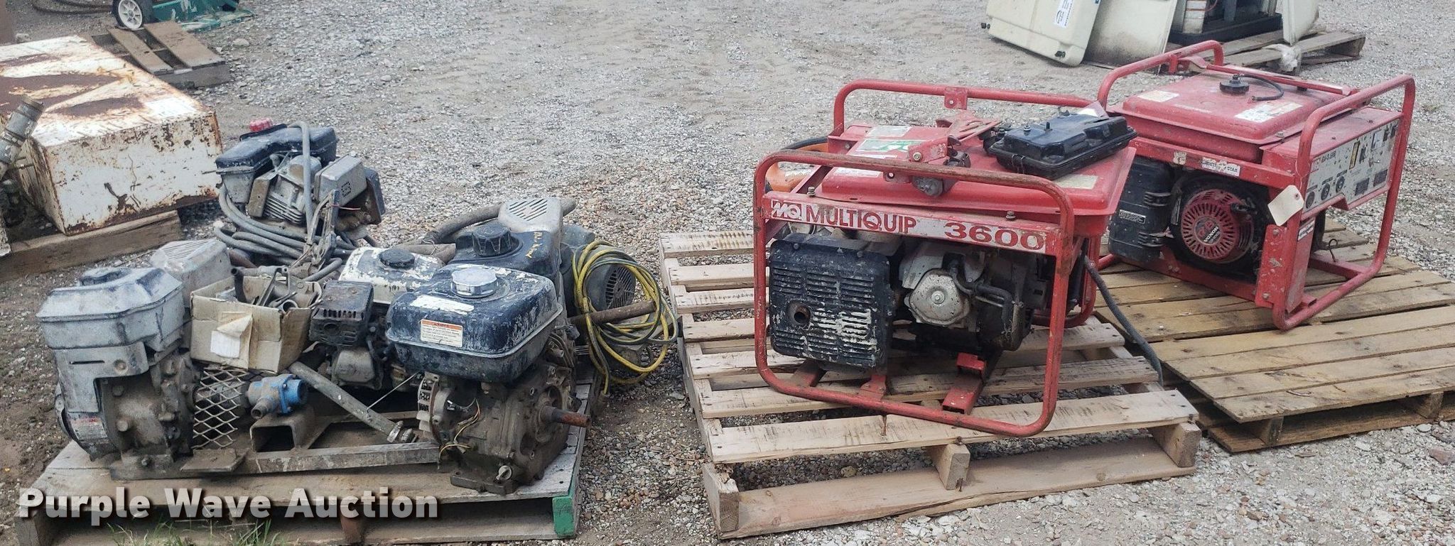 Purple Wave is selling a used Tools in Kansas. This item is a Tools with the following: (2) MultiQuip Power Equip GA-3.6A generators, Stihl 12" concrete saw, (5) engines, GE 1.5 HP electric motor, Single phase, 230V, Non-operational units