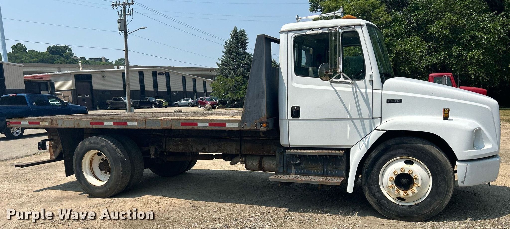 1997 Freightliner FL70 flatbed truck. Miles: 139,387 on odometer, VIN: 1FV6HJACXVH696736. Engine Caterpillar 3126, Displacement: 7.2L, Cylinders: 6, Fuel type: Diesel. Transmission Manual, Speed: 6. Chassis Axles: Single, Suspension: Spring, Brakes: Air, GVWR: 26,000 lbs. Interior Heat, Cruise control. Features Flatbed 16' 3" L x 96" W. Tires Size: 11R22.5. Notes Windshield chipped or cracked, Non-operational passenger door handle. Iowa title. Title distribution may be delayed up to 14 days from verification of funds. Zephyr Aluminum Products Inc.. 555 Huff Street. Dubuque, IA 52003