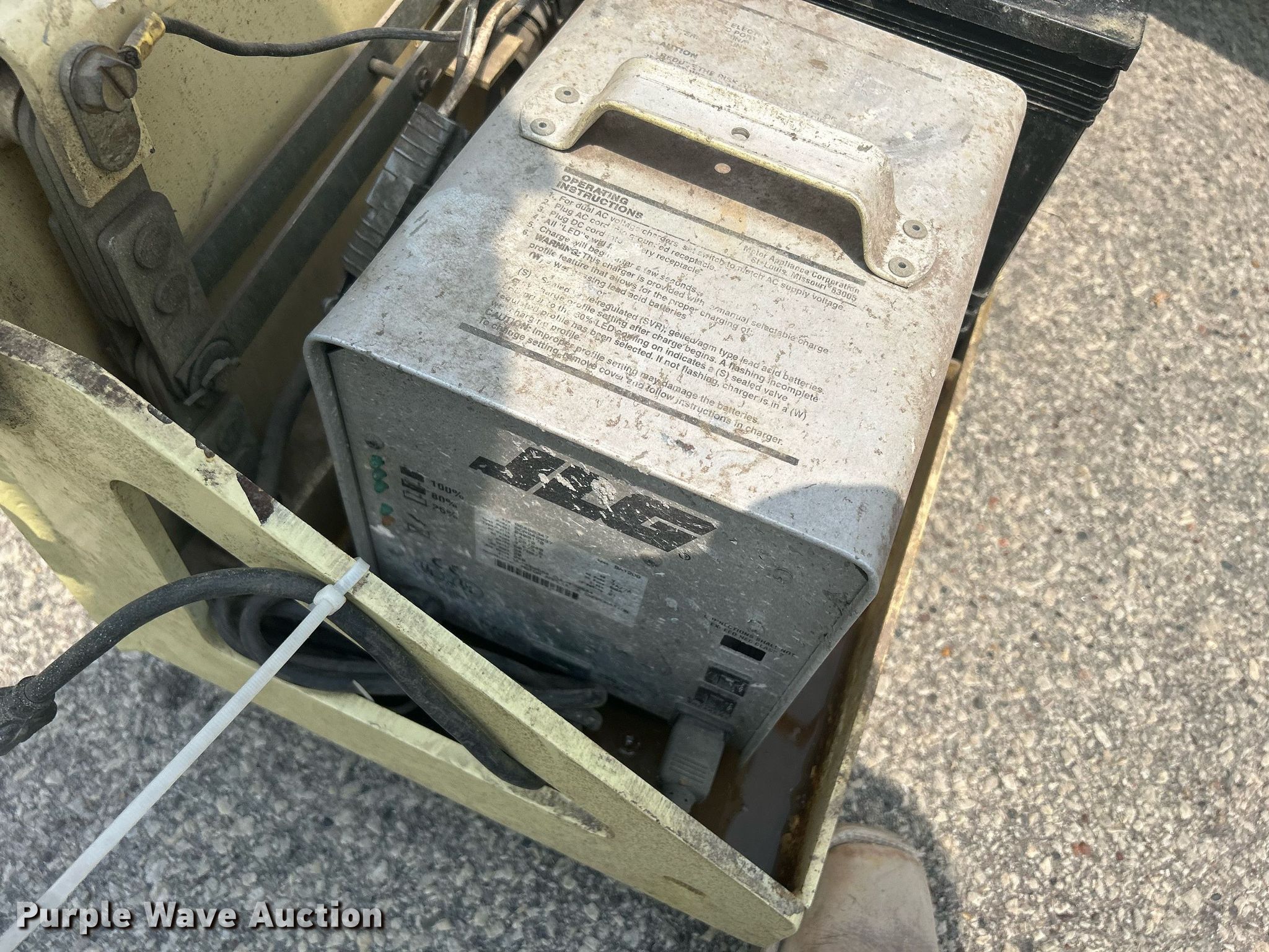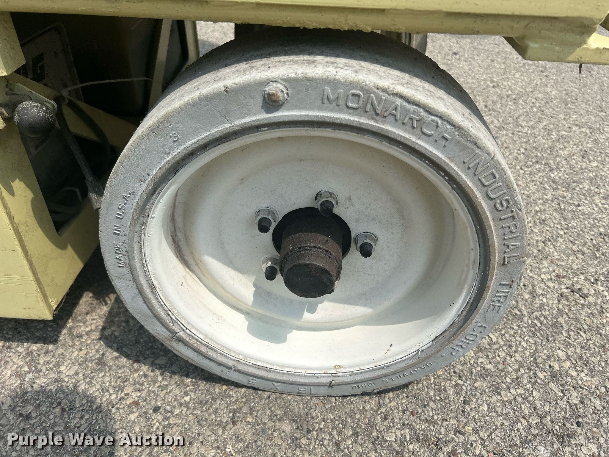 JLG 2032E2 scissor lift. Hours: 76 on meter, Serial: 0200054724. Features Maximum lift capacity: 750 lbs, Maximum lift height: 20', Platform: 96" L x 29" W, AC power outlet, Controls: Remote Control, Ground, Platform extensions: Manual, Safety alarm. Tires Tire size: 16x5, Solid. Zephyr Aluminum Products Inc.. 555 Huff Street. Dubuque, IA 52003
