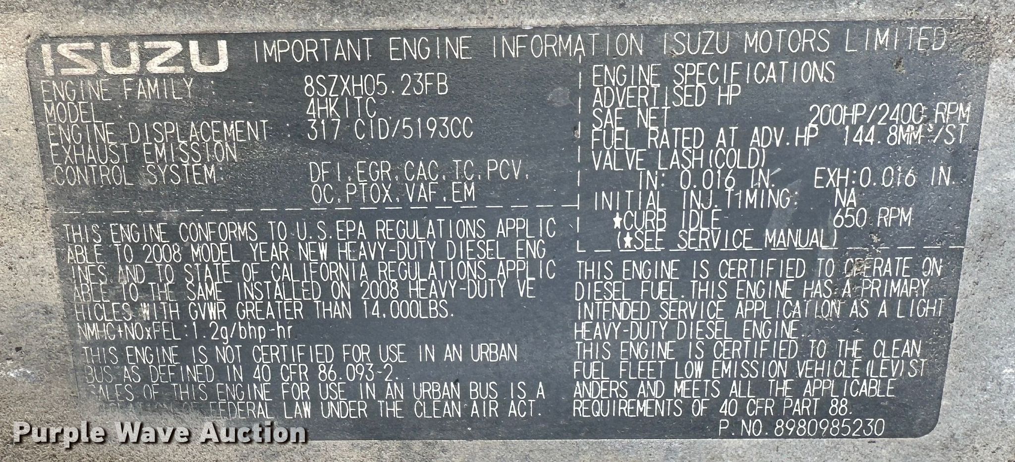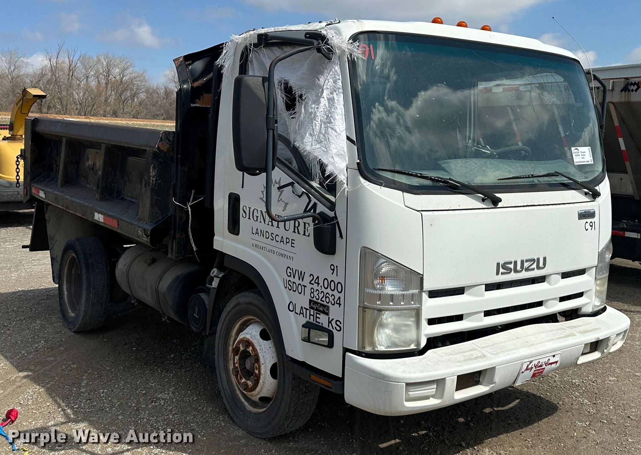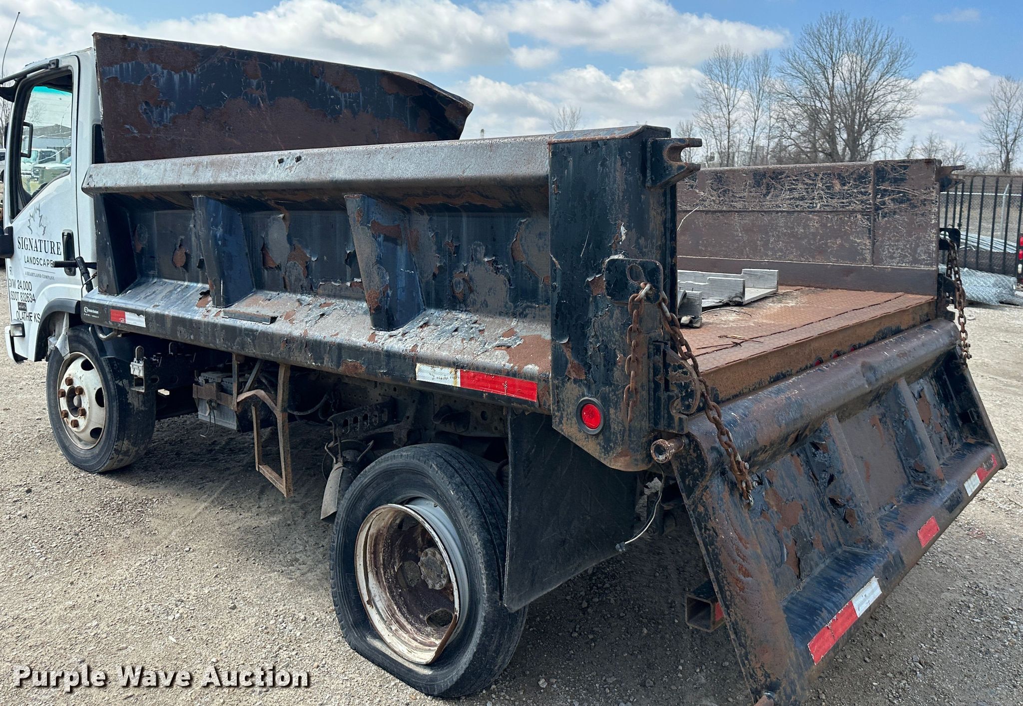 2009 Isuzu NQR dump truck. Hours: 7,104 on meter, VIN: JALE5W16597900263. Engine Isuzu 4HKLTC, Displacement: 5.2L, Cylinders: 4, Fuel type: Diesel. Transmission Automatic. Chassis Axles: Single, Suspension: Spring, Brakes: Hydraulic. Interior AC, Heat. Features Dump bed 10' L x 96" W, Side height: 28", Bed type: Steel, Ram: Single , End gate: Manual. Tires Size: 225/70R19.5. Notes Roll over damage , Parts may be missing, Non-operational unit. Kansas title. Mileage has not been verified. Odometer discrepancy will be marked on the title. 5380 Speaker Road. Kansas City, KS 66106