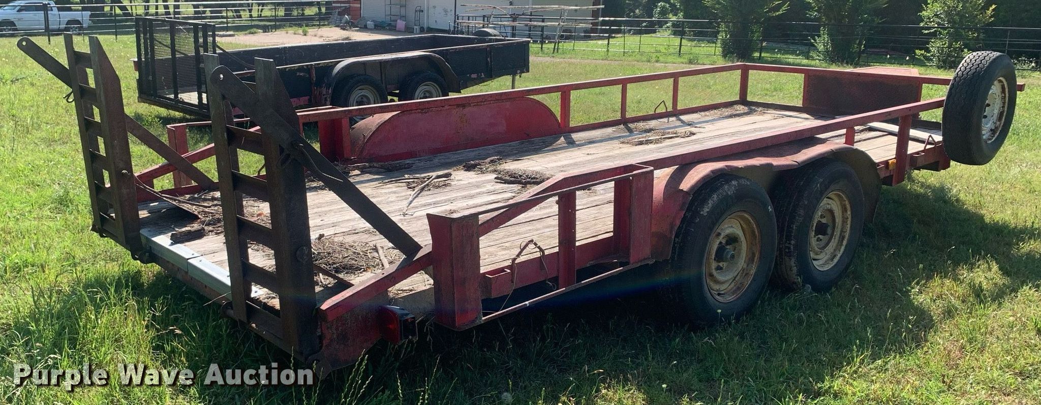 Purple Wave is selling a used Car or Utility Trailer in Texas. This item is a 1987 Shop built utility trailer with the following: Overall: 22' L x 104" W, Deck: 18' 3" L x 83" W, Ramps: Manual, Length: 3'
