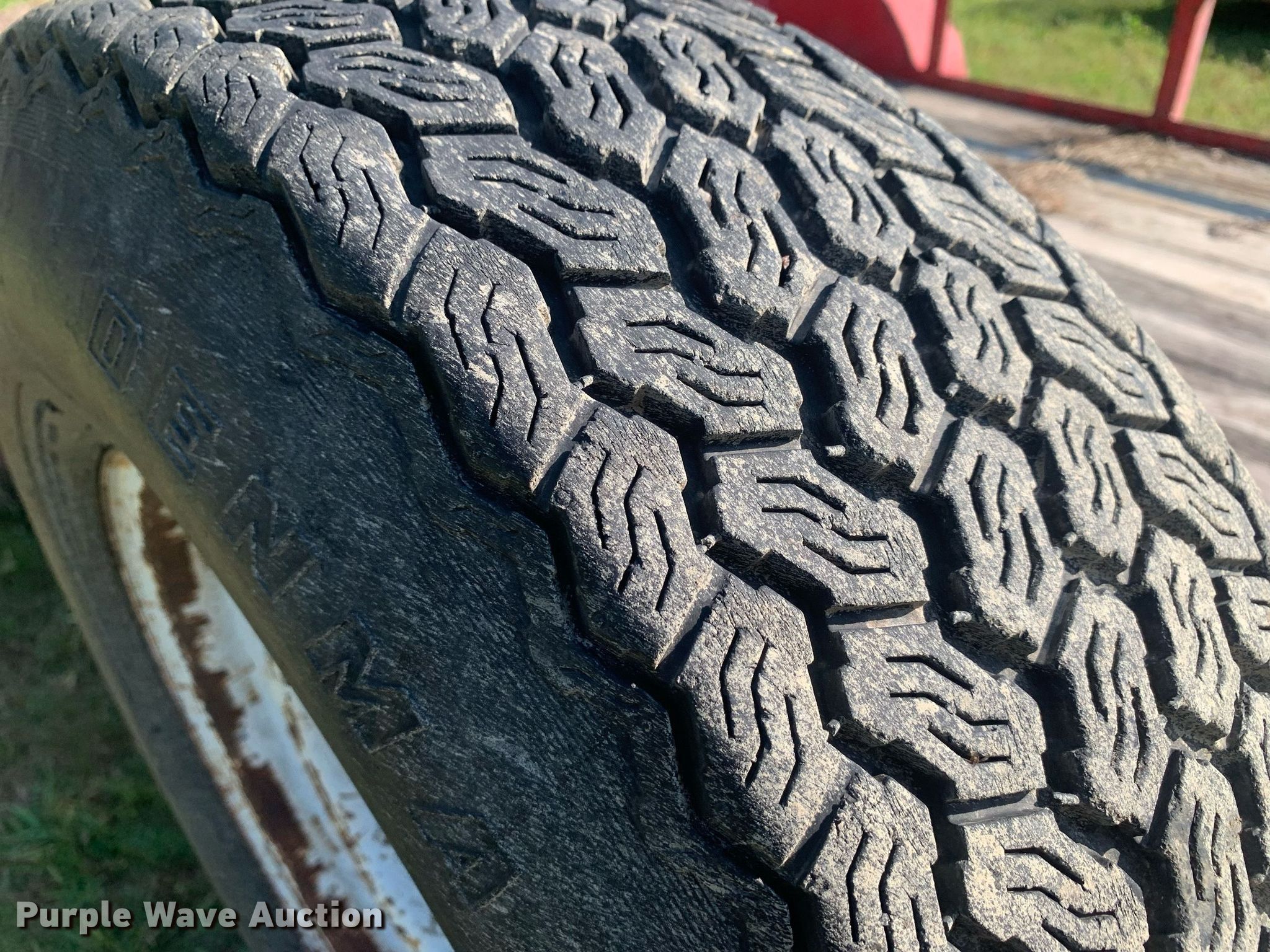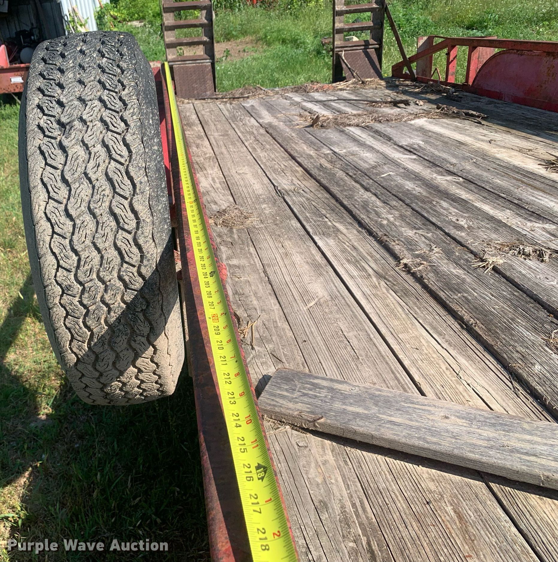 1987 Shop built utility trailer. Dimensions. Overall: 22' L x 104" W, Deck: 18' 3" L x 83" W, Ramps: Manual Length: 3'. Features Deck type: Wood. Chassis Ball hitch: 2", Landing gear: Single, Suspension: Spring, Brakes: Electric, Axles: Tandem. Tires Steel wheels, Size: ST225/75R15. Transfer of ownership documentation will be a bill of sale. HCC. 3207 Howard Road. Waxahachie, TX 75165