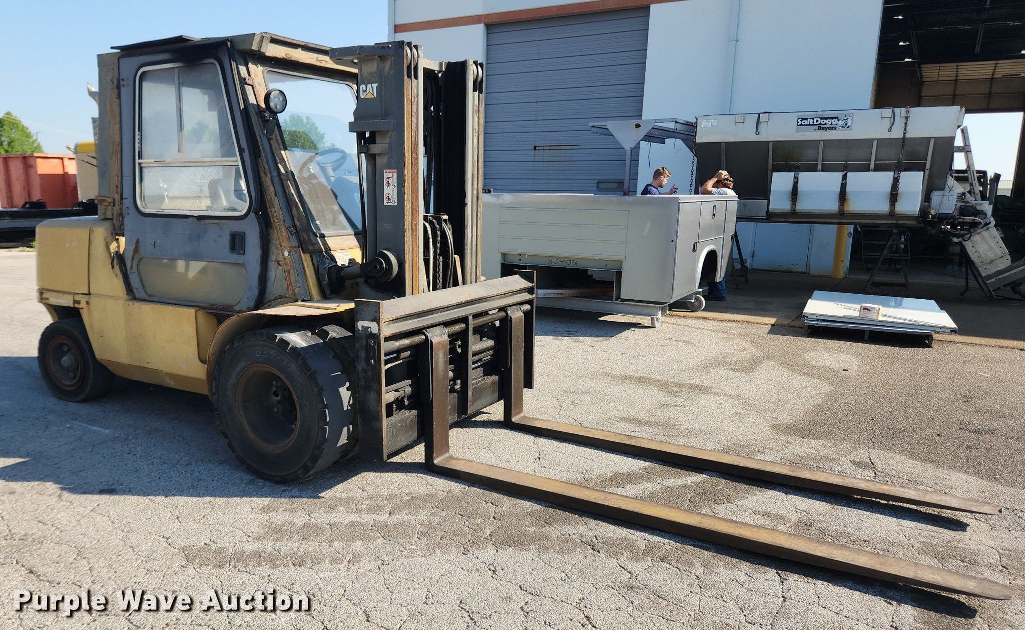 Purple Wave is selling a used Strt. Mast Rough Terr. Forklift in Missouri. This item is a Caterpillar DP50K forklift with the following: Hours: 14,038 on meter, Serial: AT-28B50039