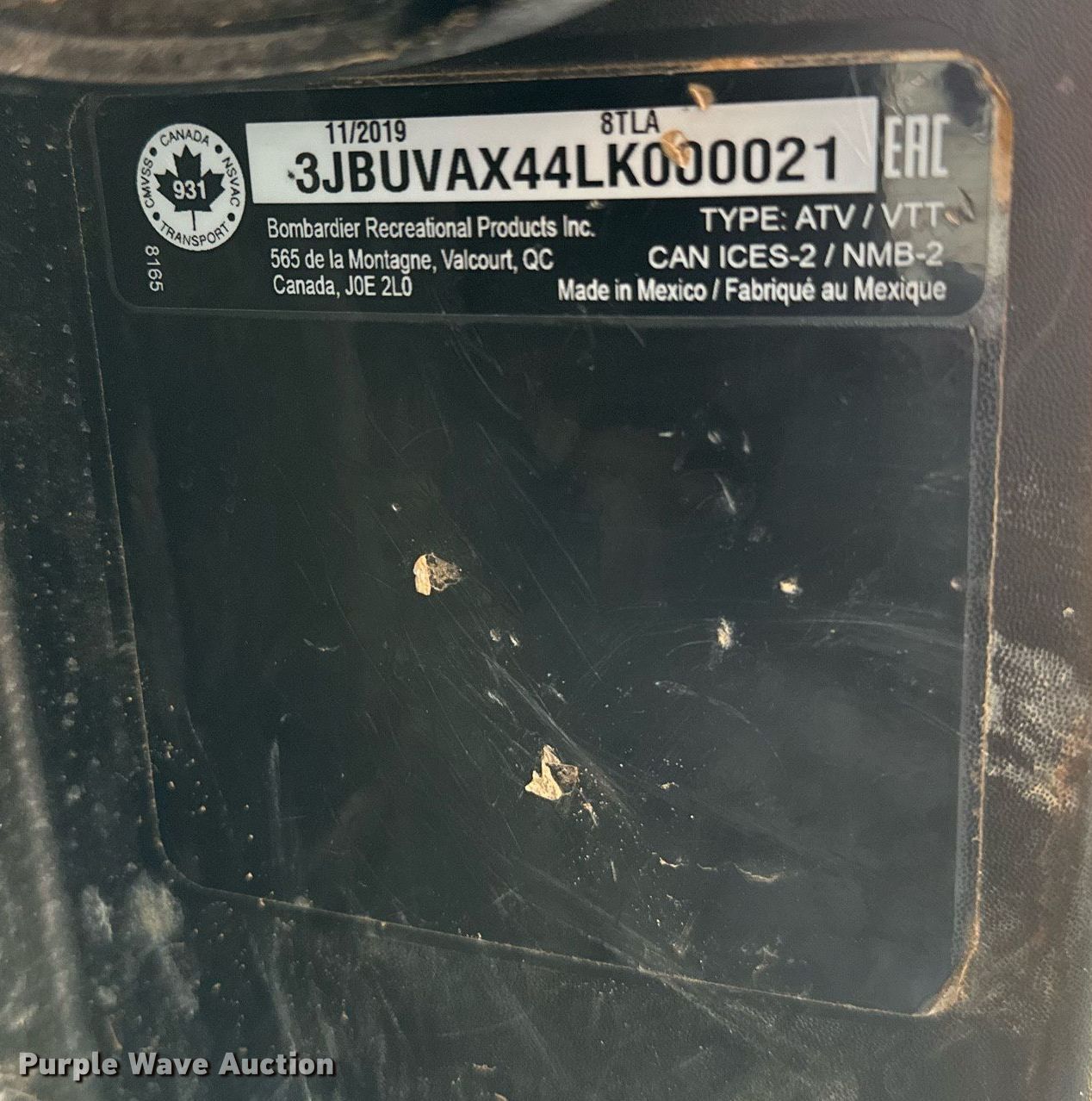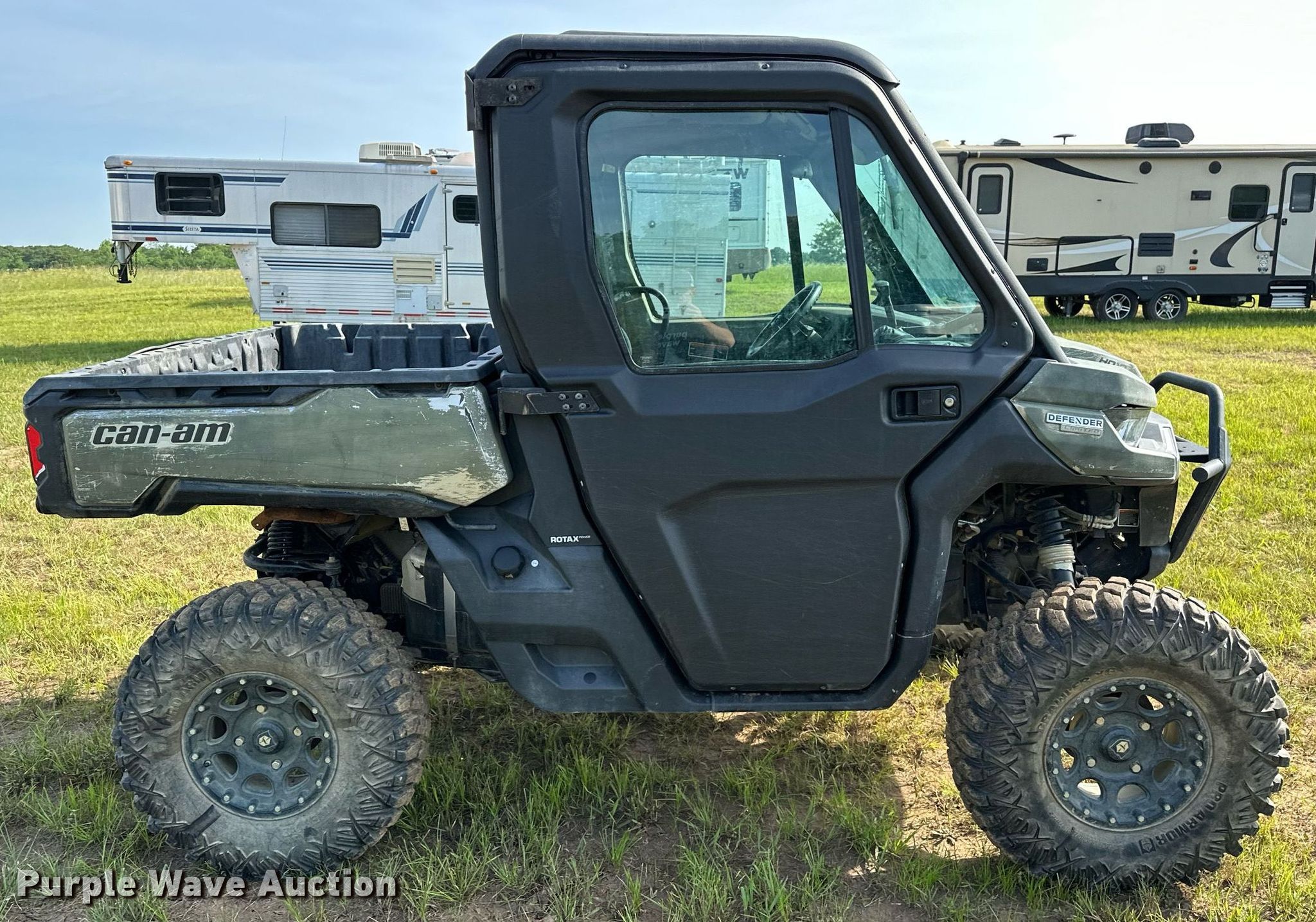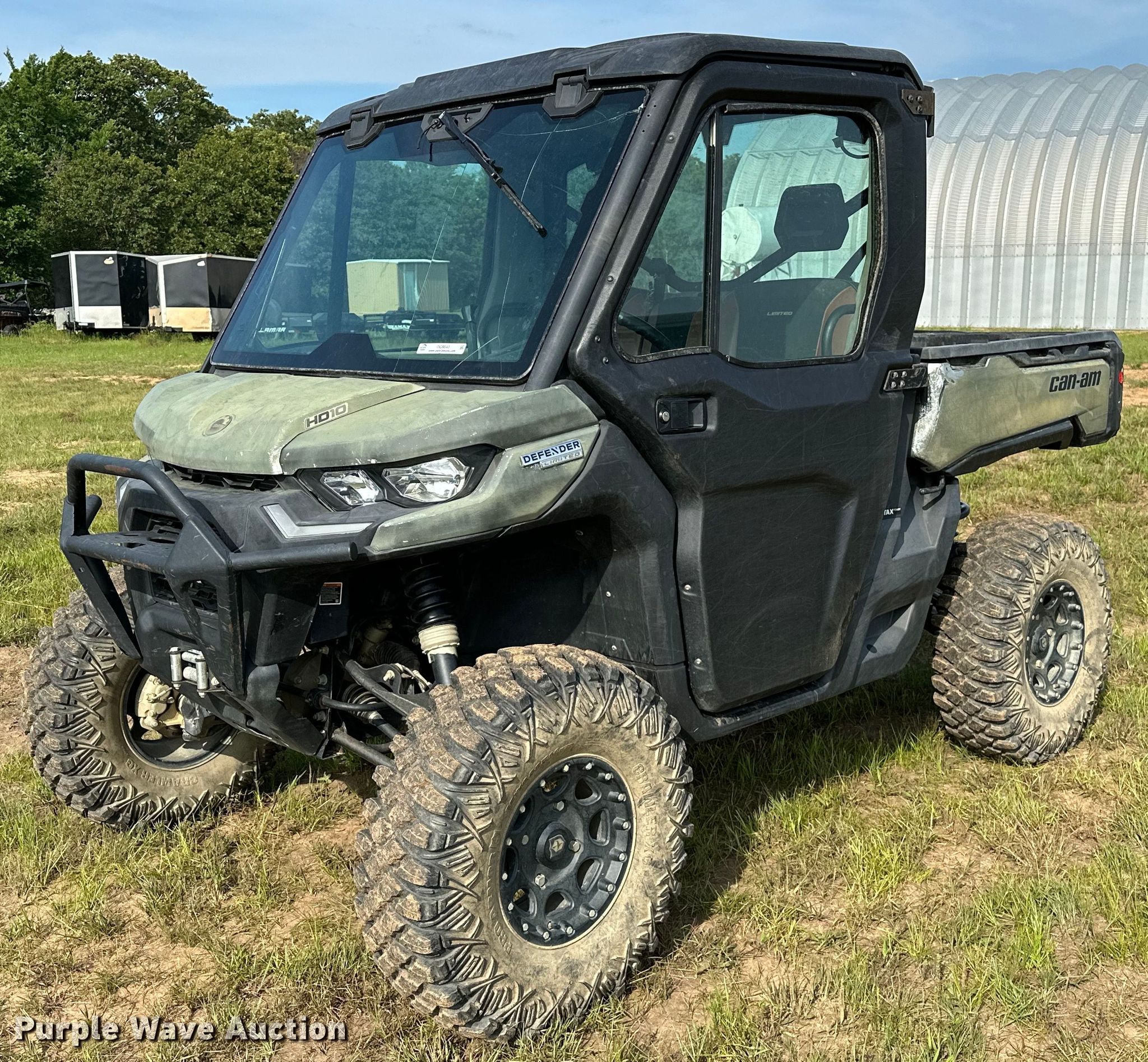 2020 Can-Am Defender Limited utility vehicle. Miles: 2,245 on odometer, VIN: 3JBUVAX44LK000021, Claim #: 0-802638. Engine Displacement: 976 cc, Cylinders: 2, Fuel type: Gas, Electric start. Transmission Automatic. Chassis Four wheel drive. Operators station Enclosed cab, AC, Heat. Features Receiver hitch, Dump bed 40" L x 56" W, Dump bed type: Manual. Tires Size: 32x10.00R14. Notes Windshield cracked, Damage: Theft recovery. Insurance salvage unit. Oklahoma title. Title distribution may be delayed up to 14 days from verification of funds. Oklahoma Farm Bureau Insurance. Seminole, OK 74868