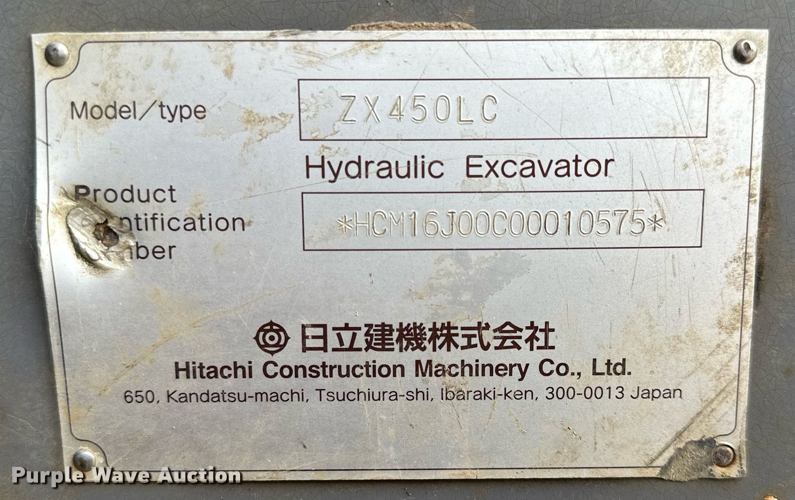 Purple Wave is selling a used Hydraulic Excavator in Minnesota. This item is a 2003 Hitachi ZX450LC excavator with the following: Hours: 2,441 on meter, Actual hours unknown, Serial: HCM16J00C00010575