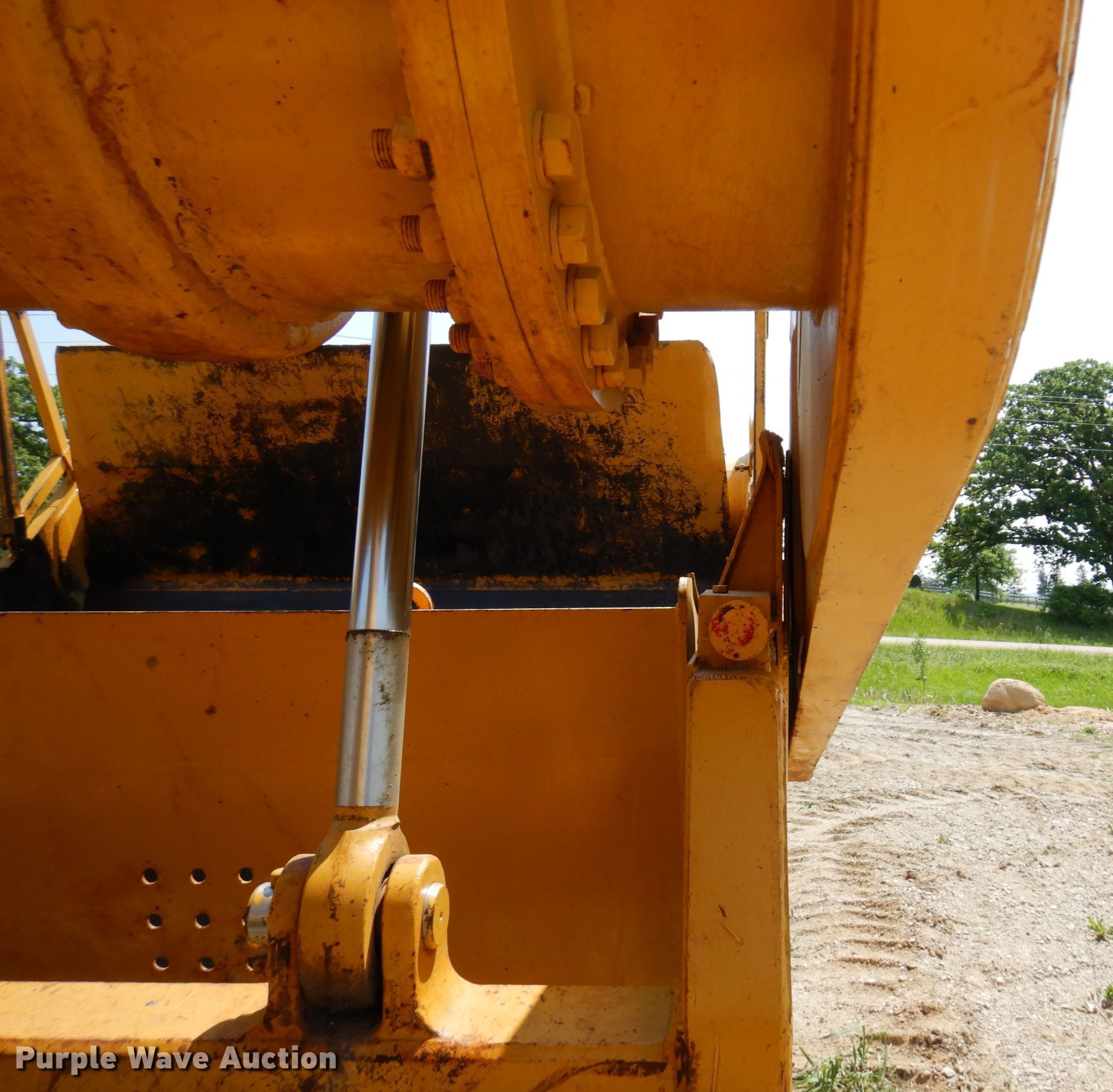 1988 Caterpillar 631E conventional scraper. Hours: 4,934 on meter, Serial: 1AB00953. Engine Caterpillar 3408, Cylinders: 8, Fuel type: Diesel. Transmission Powershift, 7F - 1R. Chassis Brakes: Air. Features Bowl capacity: 44 cu.yd., Hydraulic lift, Scraper controls: Lever controls No. of controls: 3, Rear push block. Tires Size: 37.25-35. Fitzgerald Excavating & Trucking. County Highway 4. Byron , MN 55920