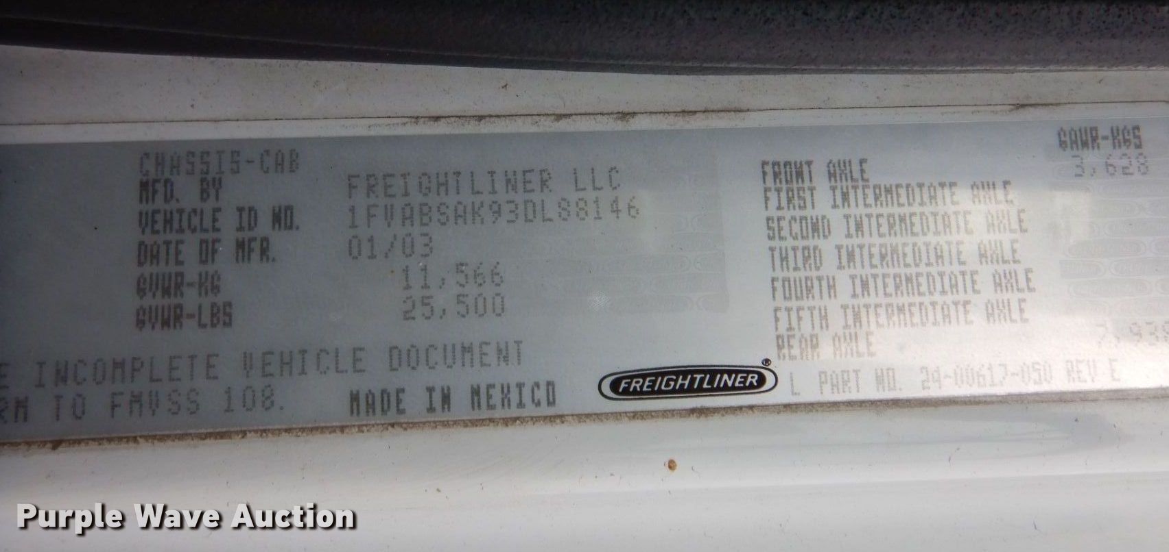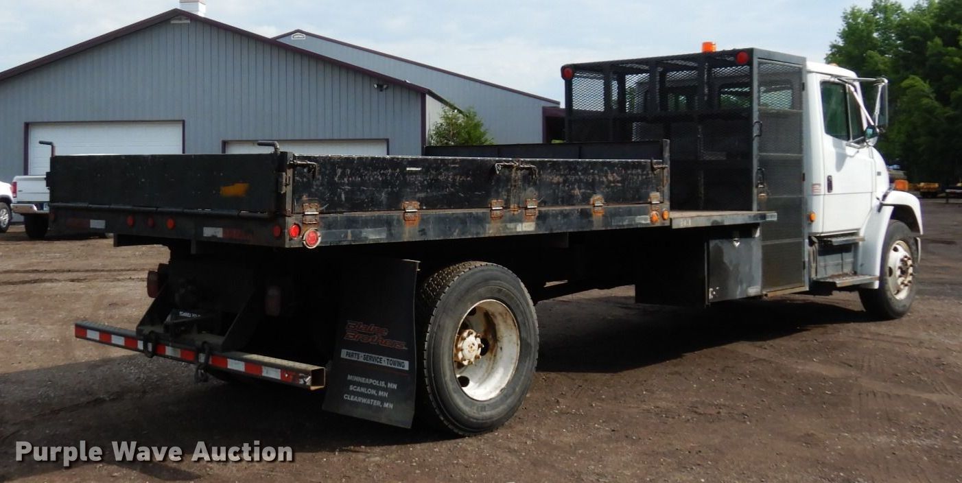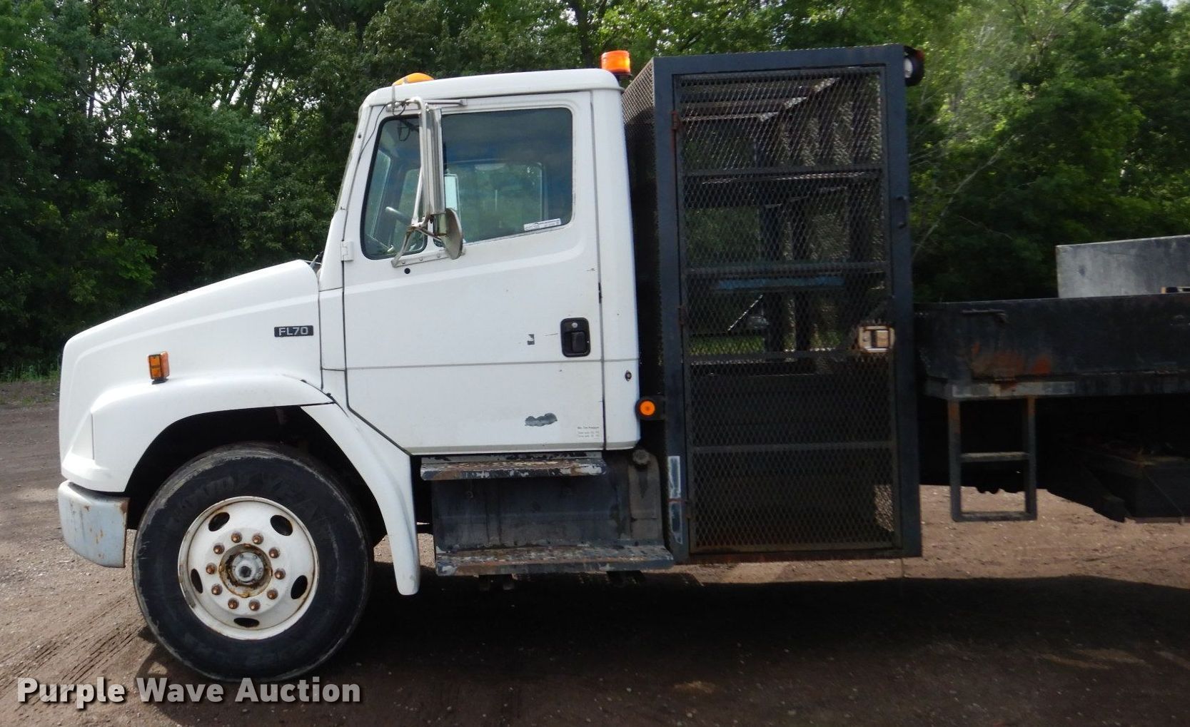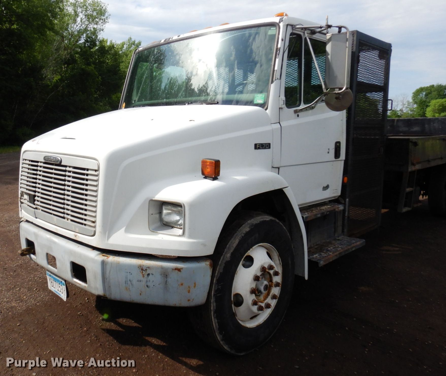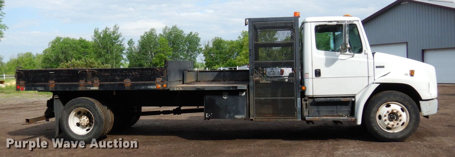 Purple Wave is selling a used Flat Bed Truck in Minnesota. This item is a 2003 Freightliner FL70 dump flatbed truck with the following: Miles: 179,117 on odometer, Hours: 8,228 on meter, VIN: 1FVABSAK93DL88146