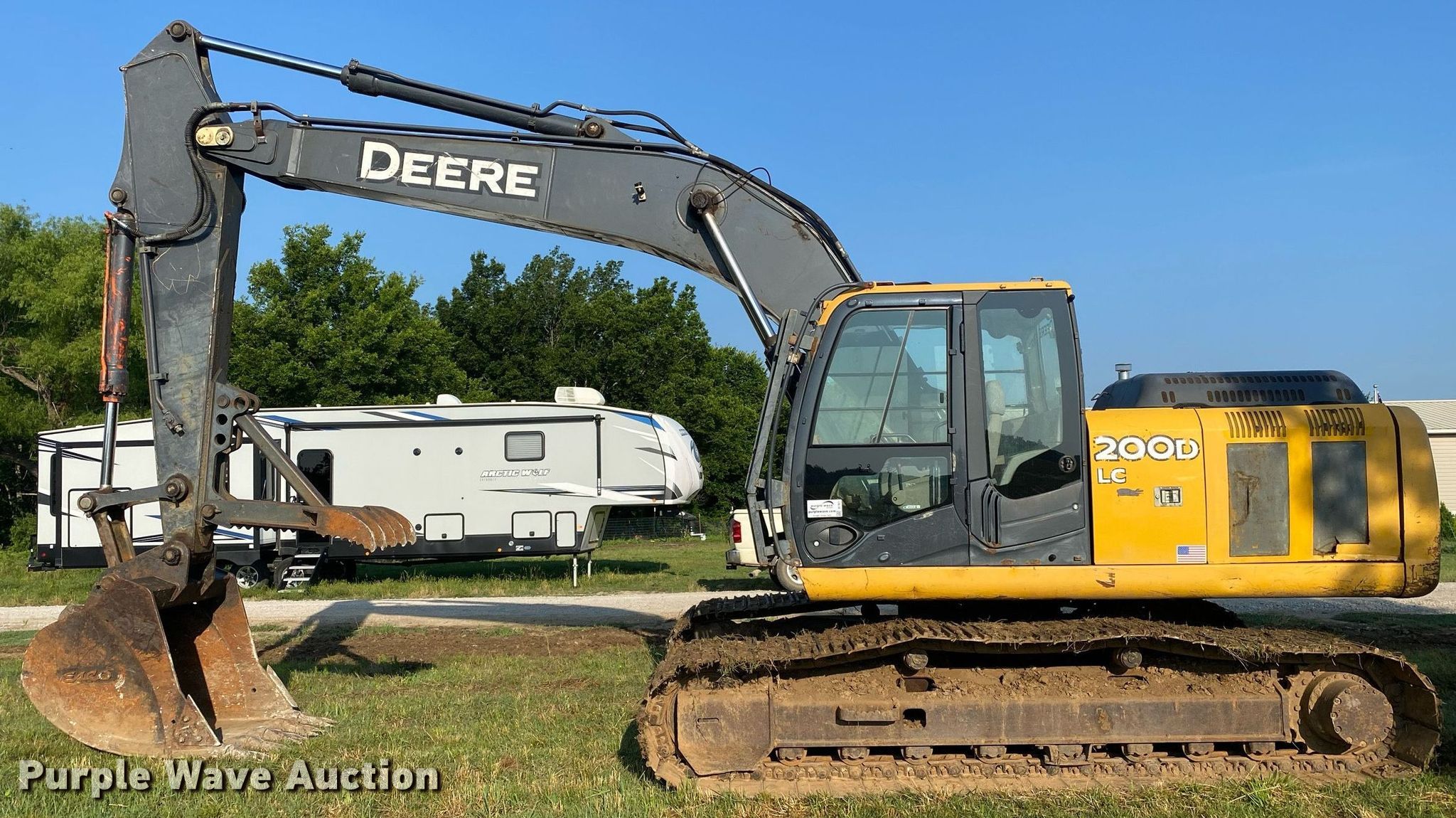 Purple Wave is selling a used Hydraulic Excavator in Oklahoma. This item is a 2009 John Deere 200D LC excavator with the following: Hours: 7,469 on meter, Serial: FF200DX511676