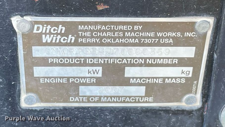 Purple Wave is selling a used Trencher or Rock Saw in Illinois. This item is a 2007 Ditch Witch RT55 rock saw with the following: Hours: 850 on meter, Serial: CMWRT55HJ70000369