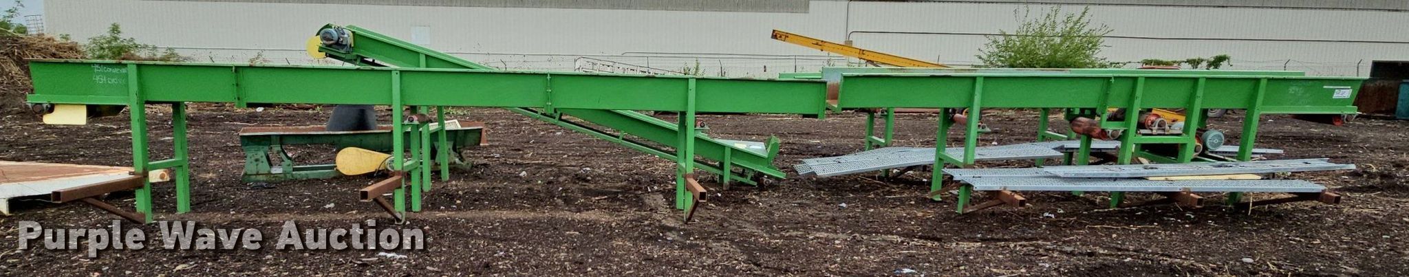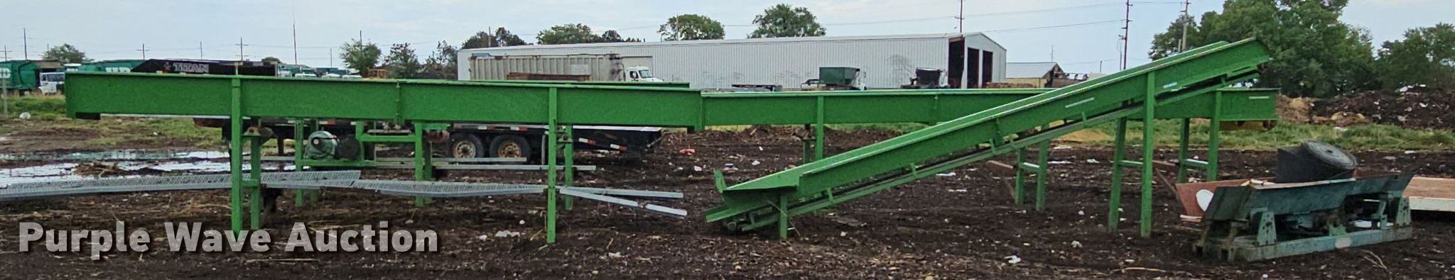 Purple Wave is selling a used Conveyor in Nebraska. This item is a West Salem Machinery conveyor with the following: Input hopper, Length: 10', Width: 16", Vibrating, 10' L shaker, US Electrical electric motor, 230/460V, Three phase, 5 HP,, Belt roller, 20' L x 20" W x 64" H belt roller, World Power electric motor, 230/460V, Three phase,, Belt roller, 20' L x 20" W x 64" H, Belt roller, 26' L x 20" W x 64" H, Incline section, 21' 8" L x 20" W x 86" H, Belt width: 18", World Power electric motor, 230/460V, Three phase, 1 HP,
