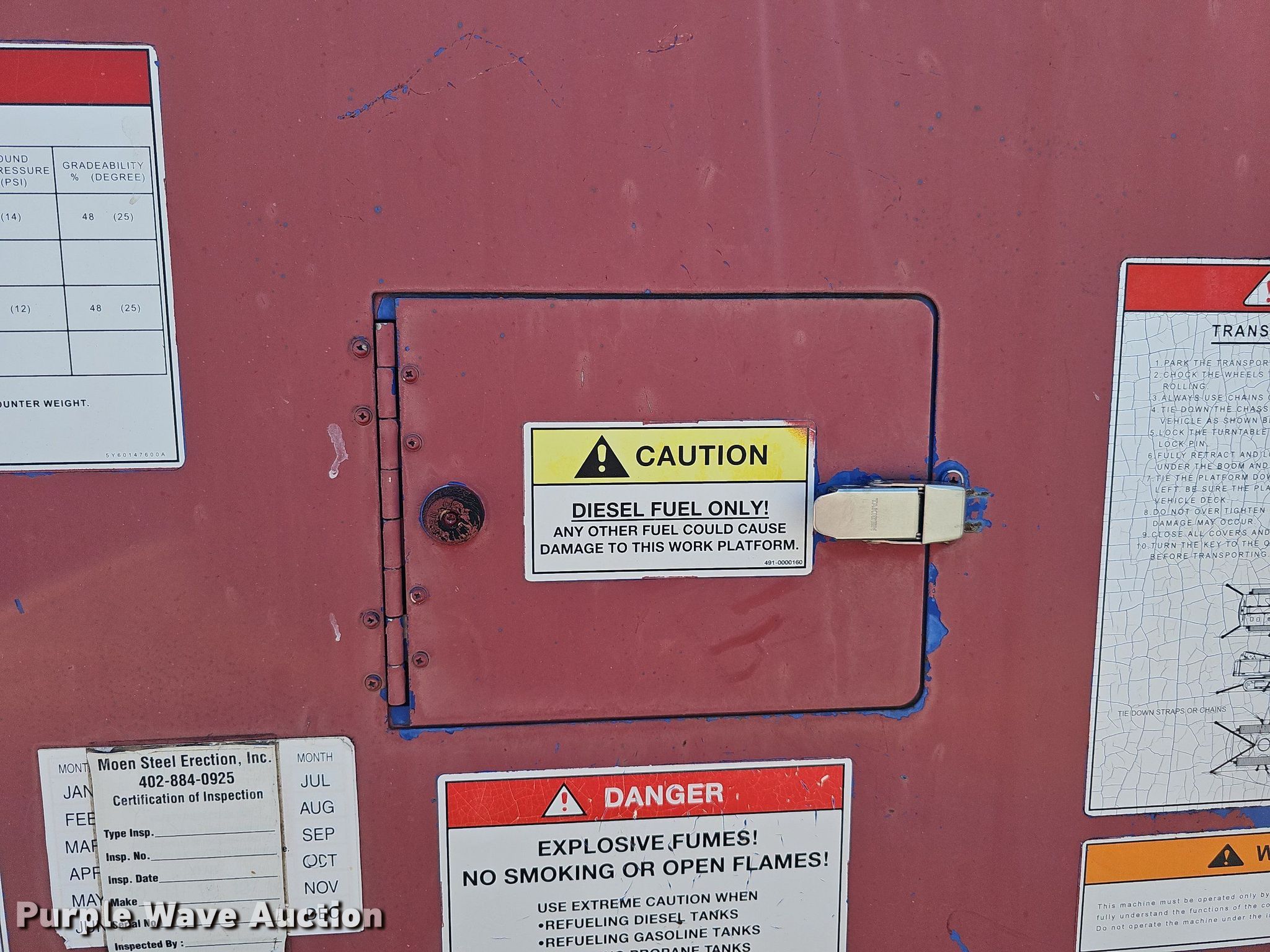 2007 Aichi 1SR 60 boom lift. Hours: 5,285 on meter, Serial: 699899, Unit #: 305. Engine Zexel, Cylinders: 4, Fuel type: Diesel. Features Rough terrain, Maximum lift capacity: 550 lbs, Maximum reach length: 59', Platform: 95" L x 30" W, Controls: Platform, Ground. Tracks Width: 19.5", Steel Rubber pad. Notes Owners manual, No battery, Electrical issues , Platform drive electrical issues. Moen Steel Erection. 4115 Lake St. Omaha, NE 68111