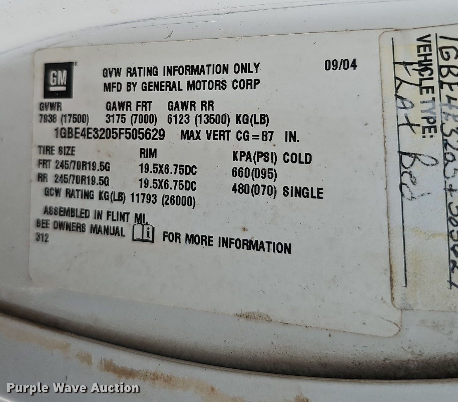 - VIN: 1GBE4E3205F505629