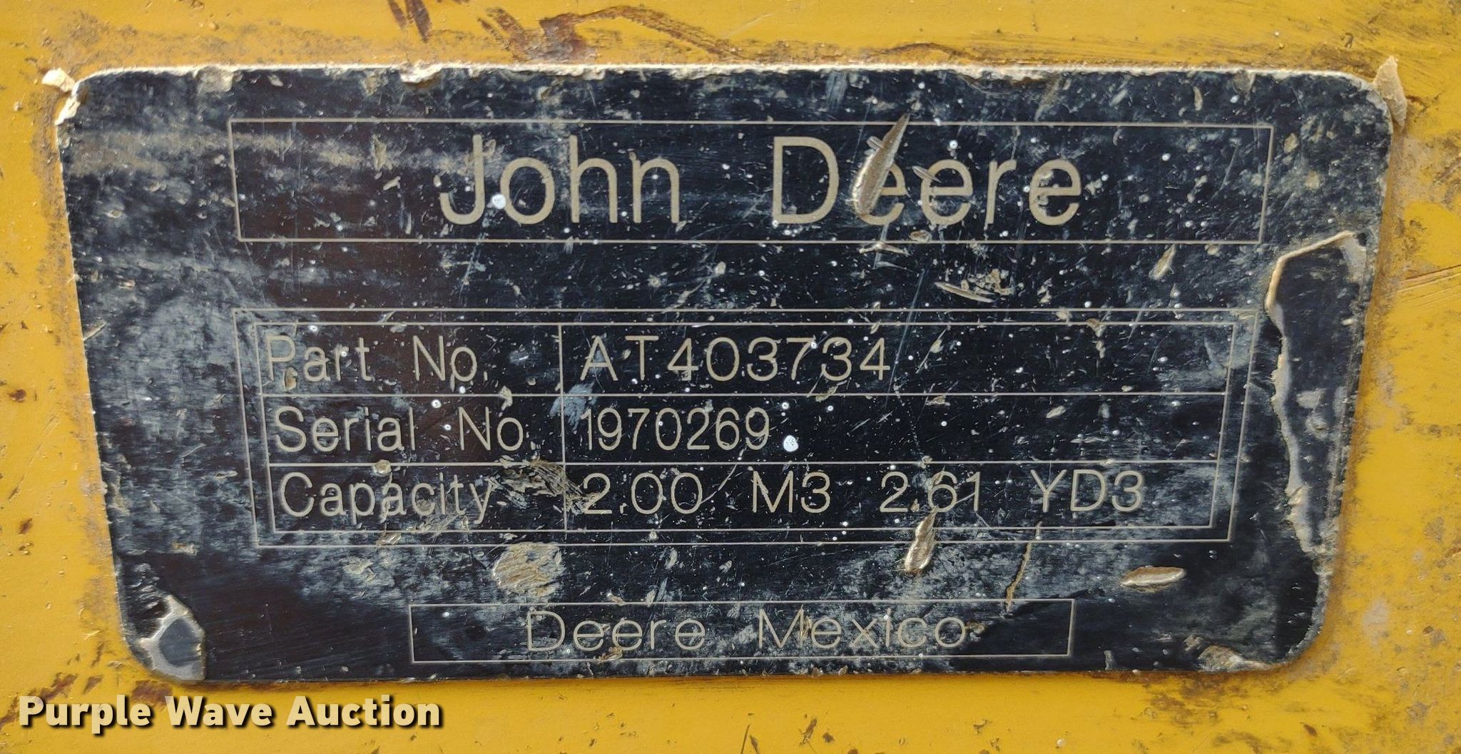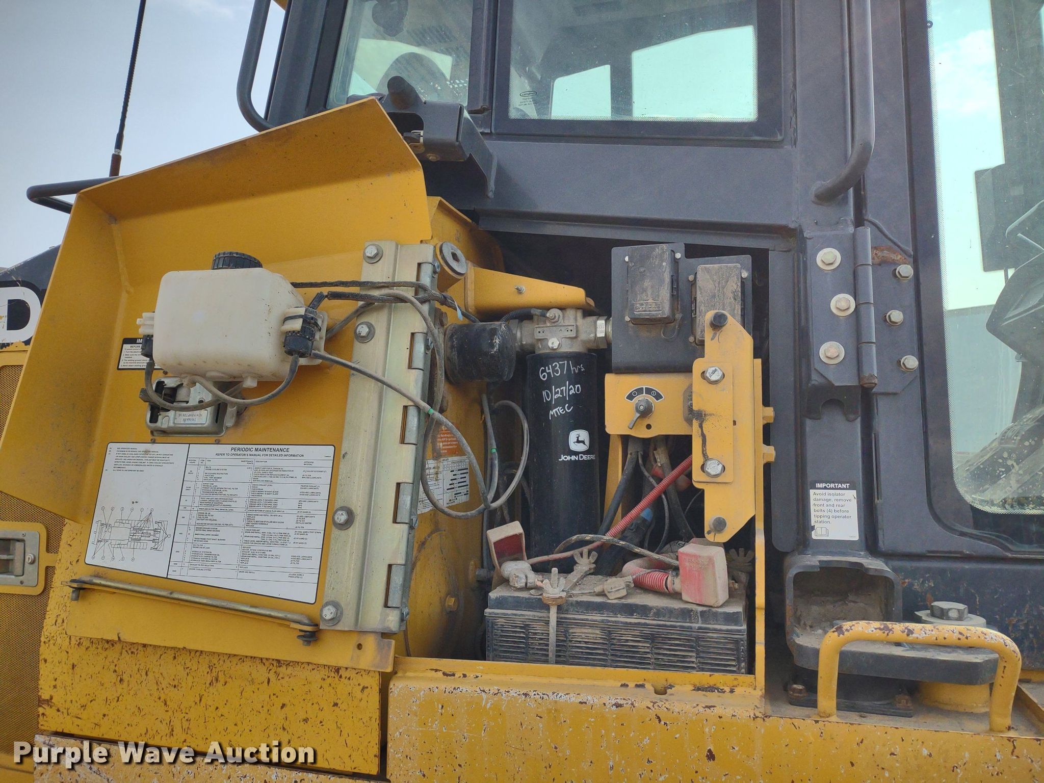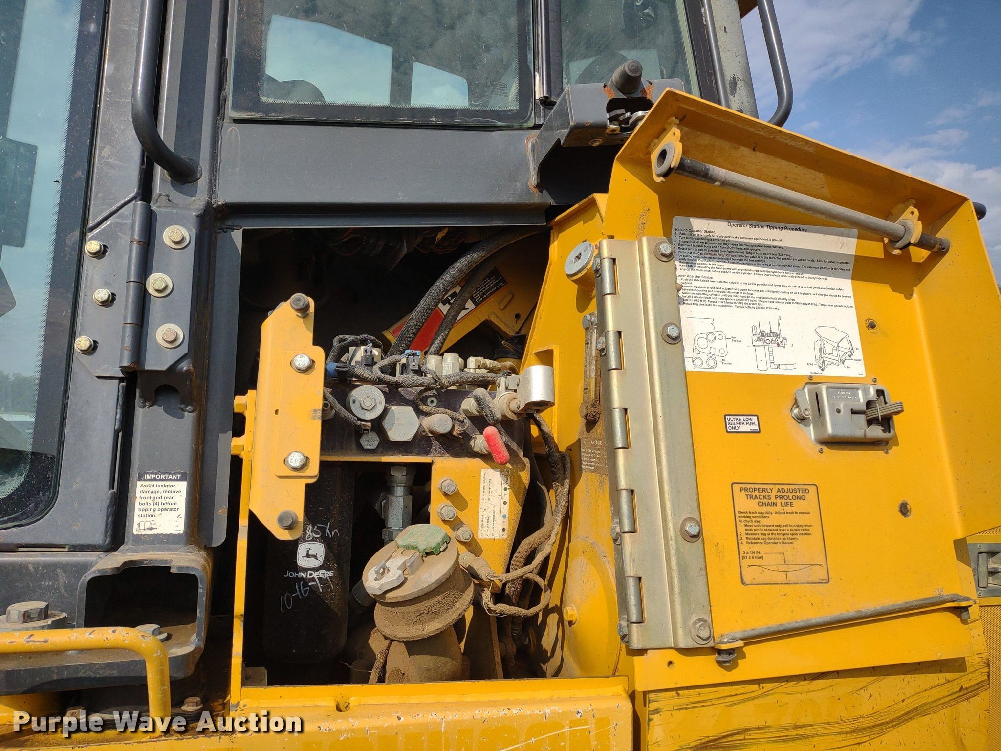 2012 John Deere 755k track loader. Hours: 7,209 on meter, Serial: 1T0755KXKCE221398, Unit #: 14.708. Engine John Deere, Displacement: 6.8L, Cylinders: 6, Fuel type: Diesel. Transmission Hydrostatic. Operators station Enclosed cab, AC, Heat, Bucket controls: Joystick, Ride control. Features Auxiliary hydraulics: Front, Bucket John Deere, Capacity: 2.67 cu.yd., Width: 102", Self- leveling bucket, Four-in-one, Cutting edge: Bolt-on, Teeth: 8. Tracks Width: 20", Grouser pads: Double. Sunflower Paving Inc./RD Johnson Excavating. 4123 Northeast Seward Avenue. Topeka, KS 66616