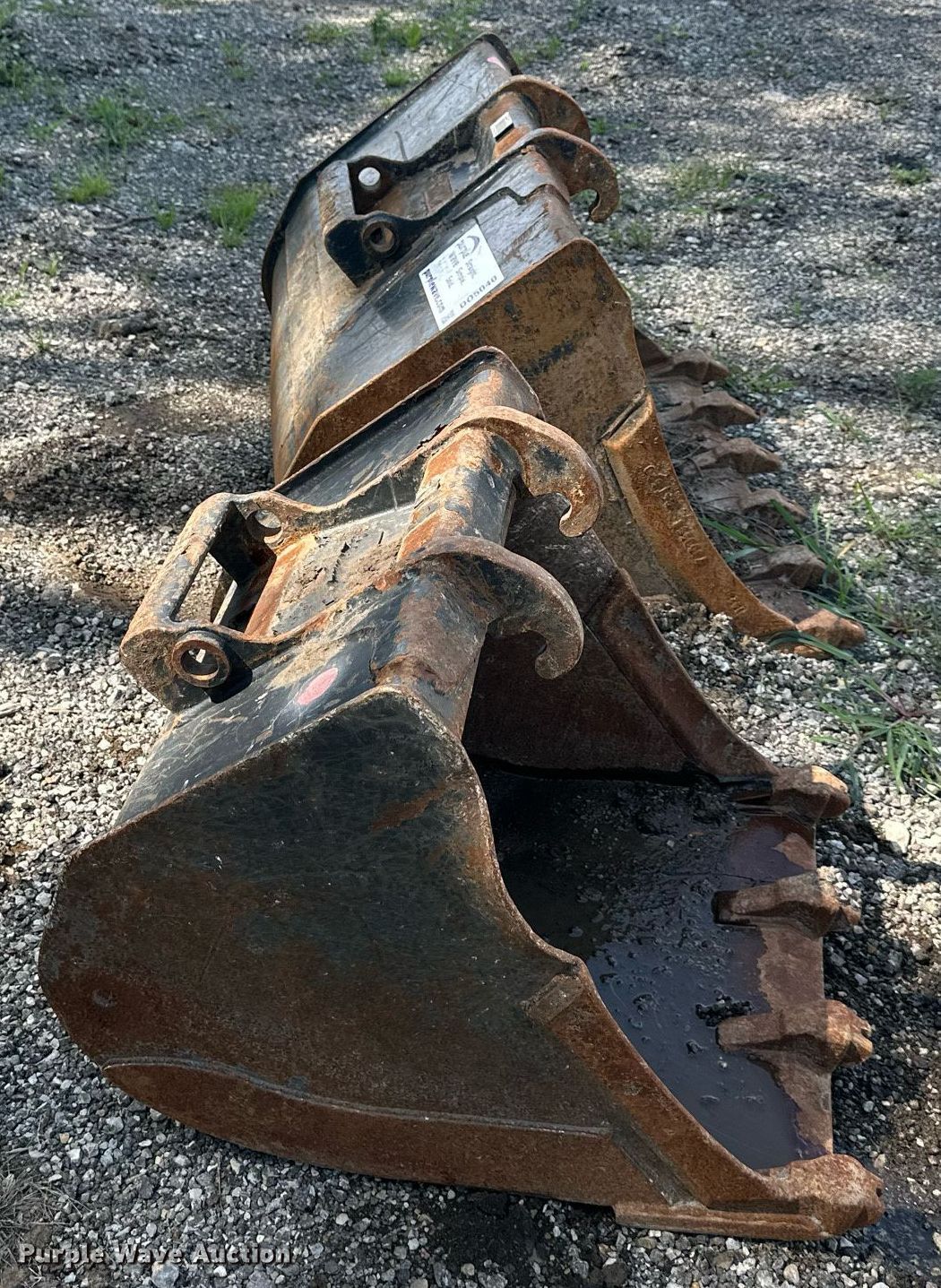 Purple Wave is selling a used Excavator Attach. in Kansas. This item is a (2) Bobcat excavator buckets with the following: Width: 37", Teeth: 6, Width: 24", Teeth: 4