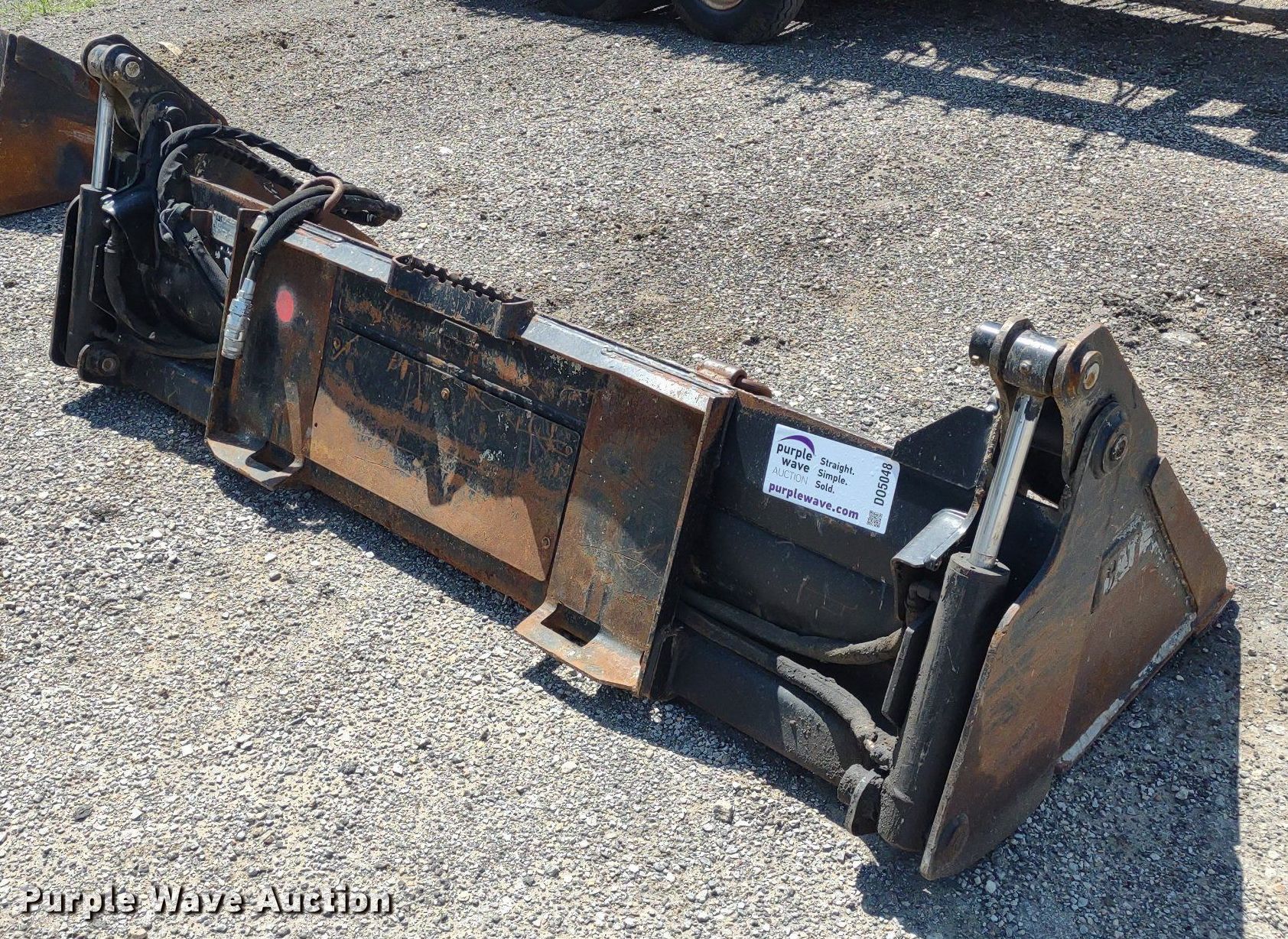 Purple Wave is selling a used Skid Steer Attach. in Kansas. This item is a Caterpillar 4-in-1 skid steer bucket with the following: Capacity: 0.56 cu.yd., Width: 84", Cutting edge: Bolt-on