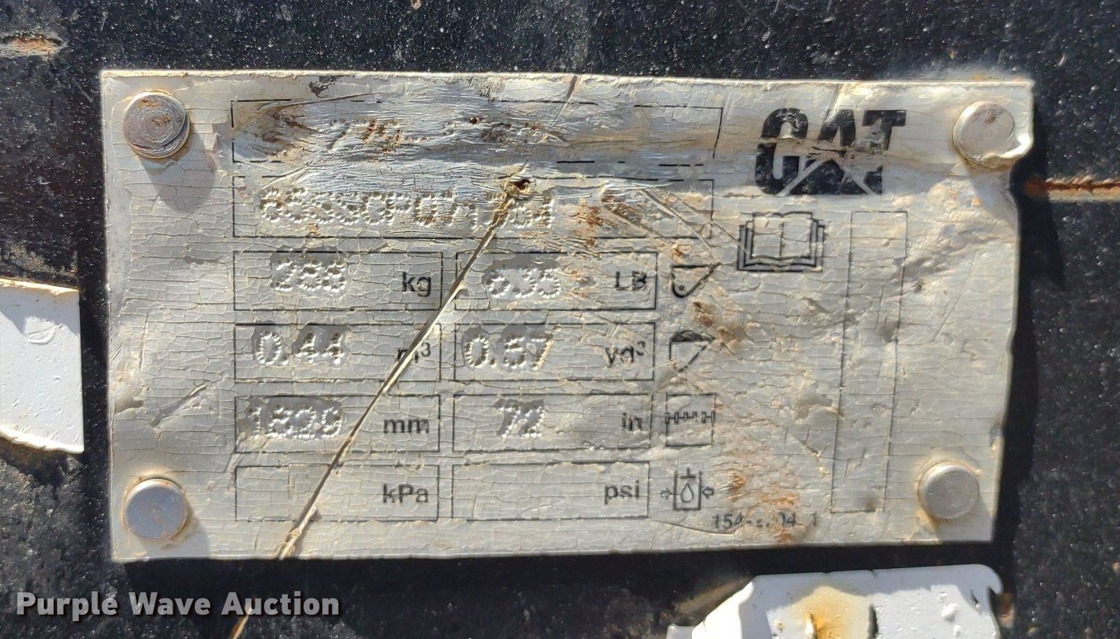 Purple Wave is selling a used Skid Steer Attach. in Kansas. This item is a Caterpillar 72" W skid steer bucket with the following: Capacity: 0.57 cu.yd., Width: 72"