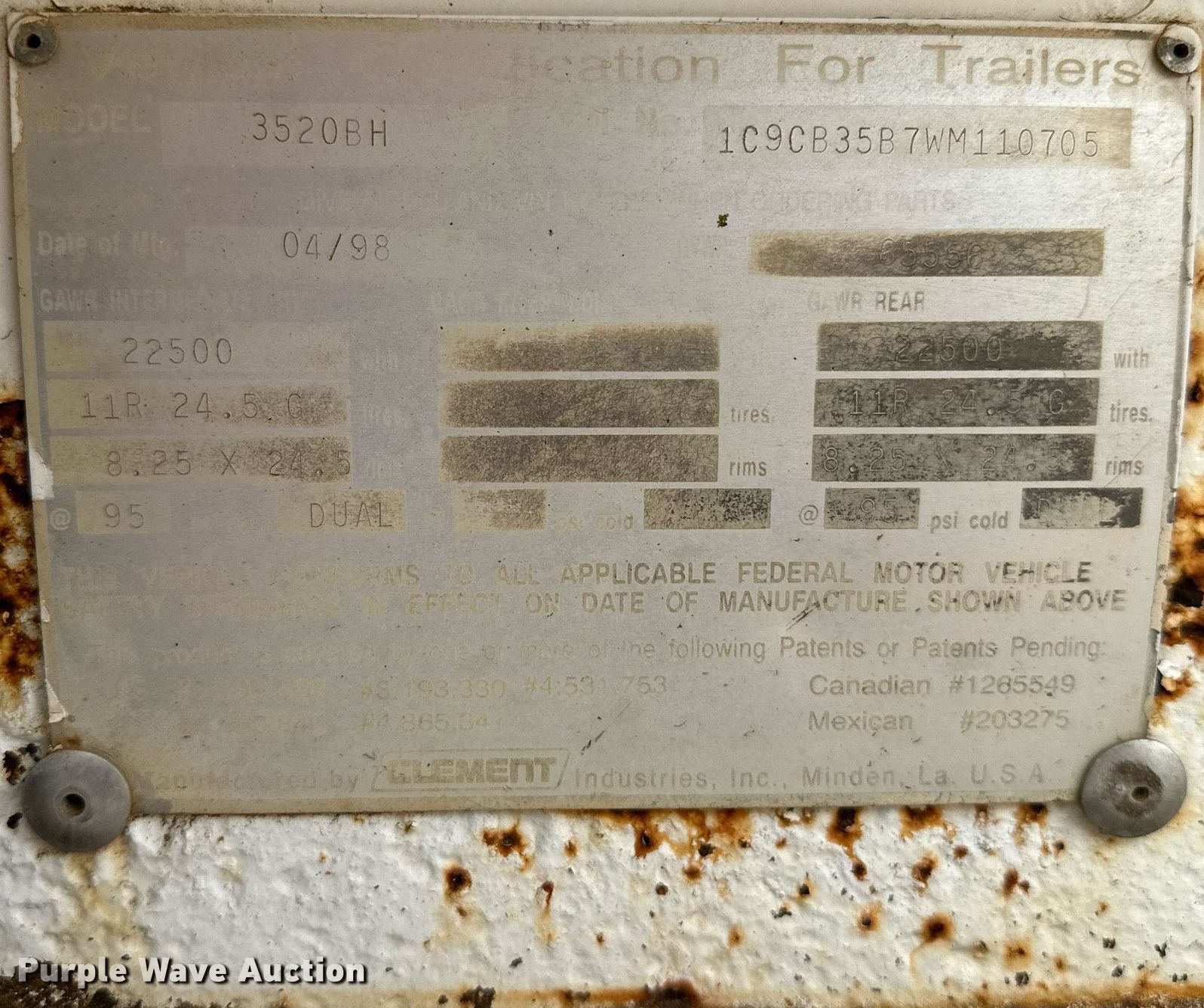 Purple Wave is selling a used Bottom Dump Trailer in Oklahoma. This item is a 1998 Clement 3520BH bottom dump trailer with the following: VIN: 1C9CB35B7WM110705