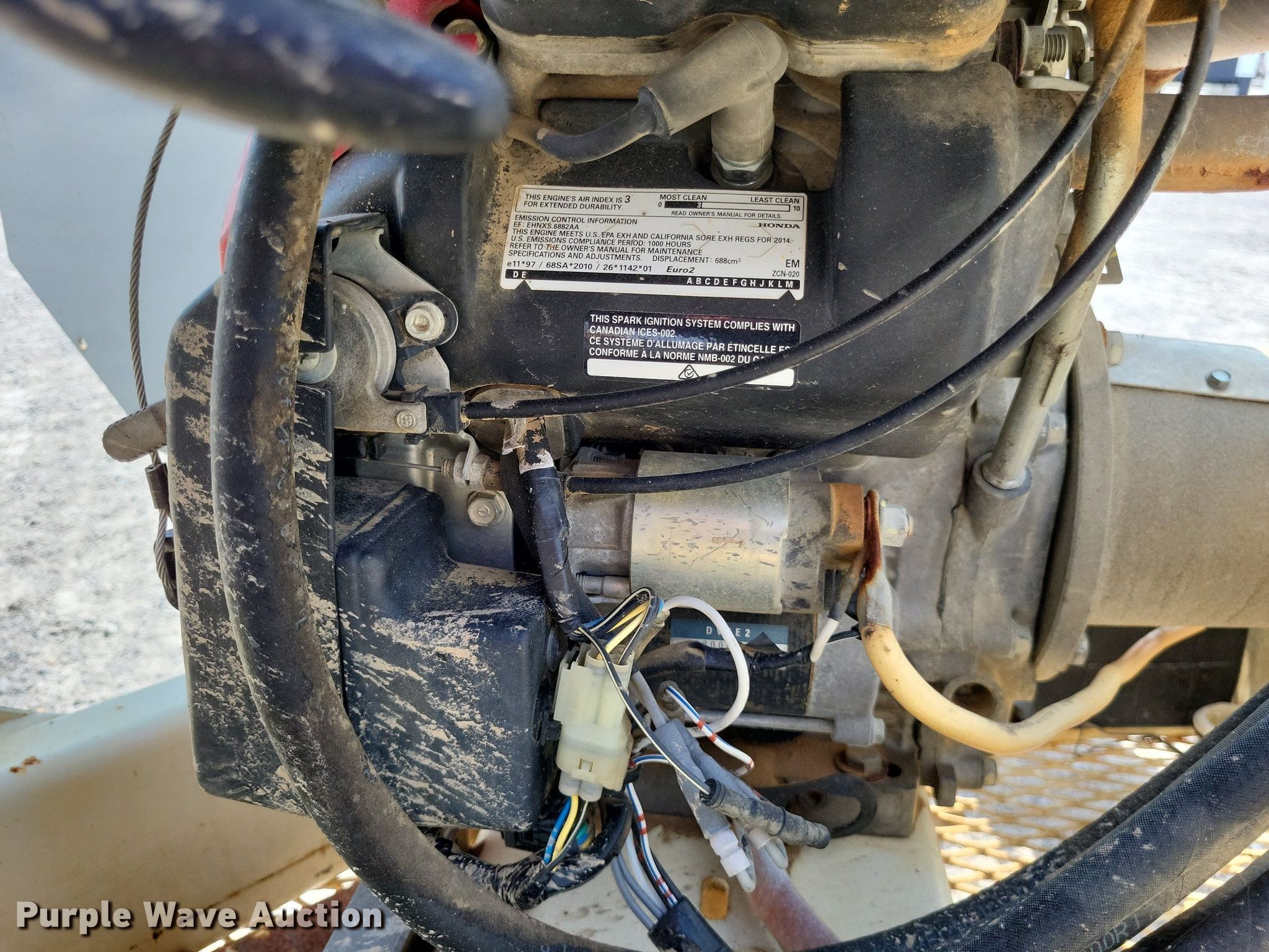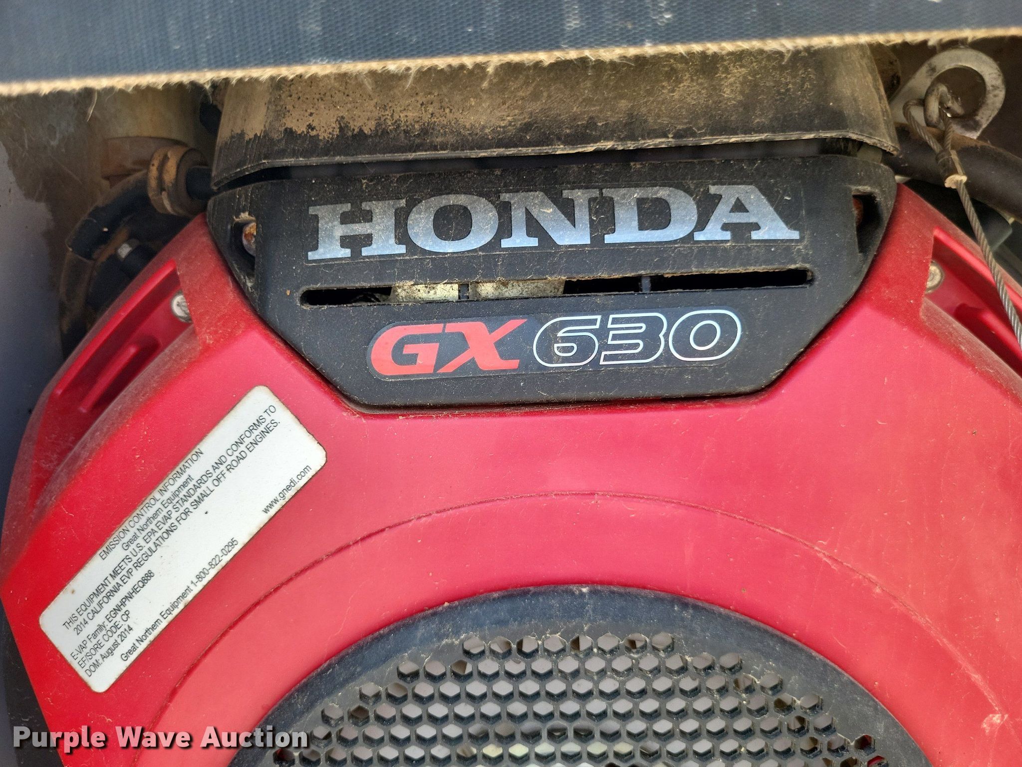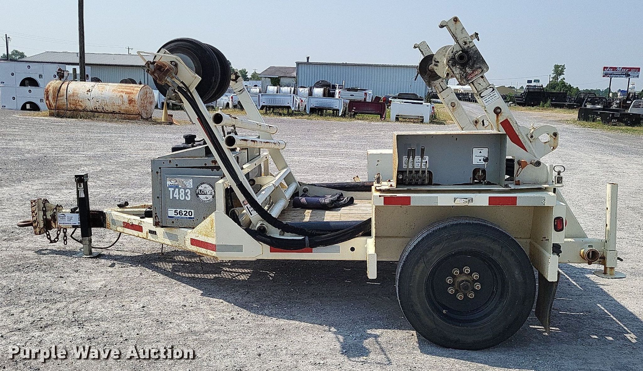 2015 Larson 5620 reel trailer. VIN: 1L9PU1418FH230699, Unit #: T483. Dimensions Overall: 14' 2" L x 101" W. Engine Honda GX630, Displacement: 688 cc, Fuel type: Gas, HP: 20.8. Features Reel: Single , Maximum reel width: 60", Maximum reel diameter: 144", Hydraulic height adjustment, Hydraulic wheel motor, Self-contained hydraulics, Auxiliary hydraulics. Chassis Hitch: Pintle, Landing gear: Single, Suspension: Spring, Brakes: Electric. Tires Size: 235/75R17.5. Transfer of ownership documentation will be a bill of sale. Floyd's Inc.. 225 N Interstate Dr. Sikeston, MO 63801