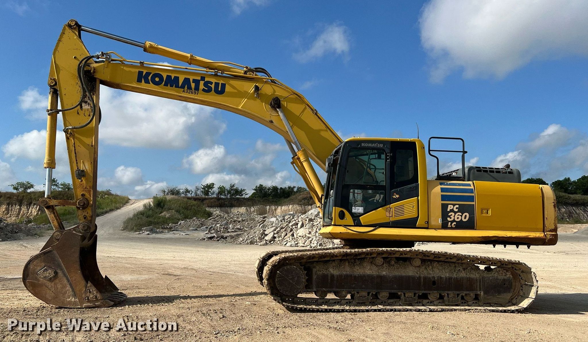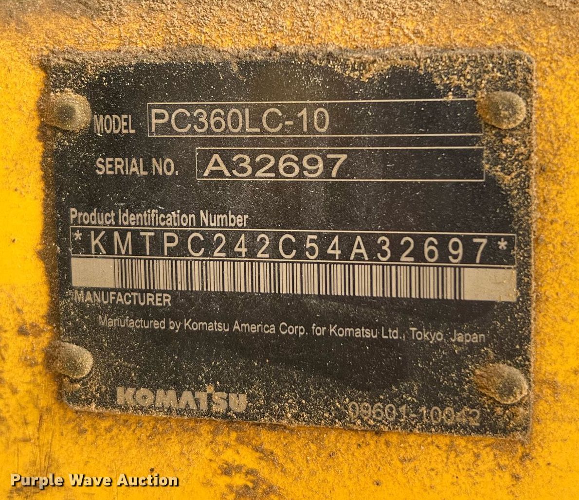 Purple Wave is selling a used Hydraulic Excavator in Texas. This item is a 2012 Komatsu PC360LC-10 excavator with the following: Hours: 11,143 on meter, Serial: KMTPC242C54A32697