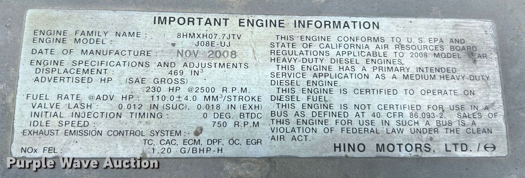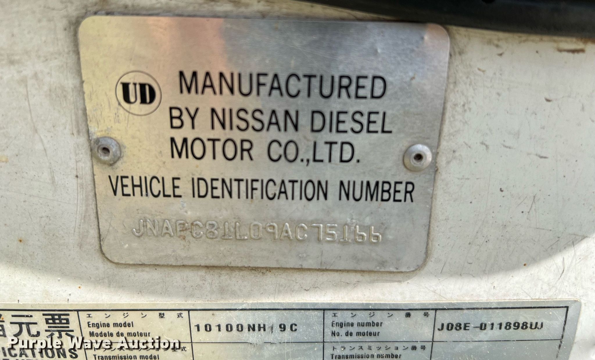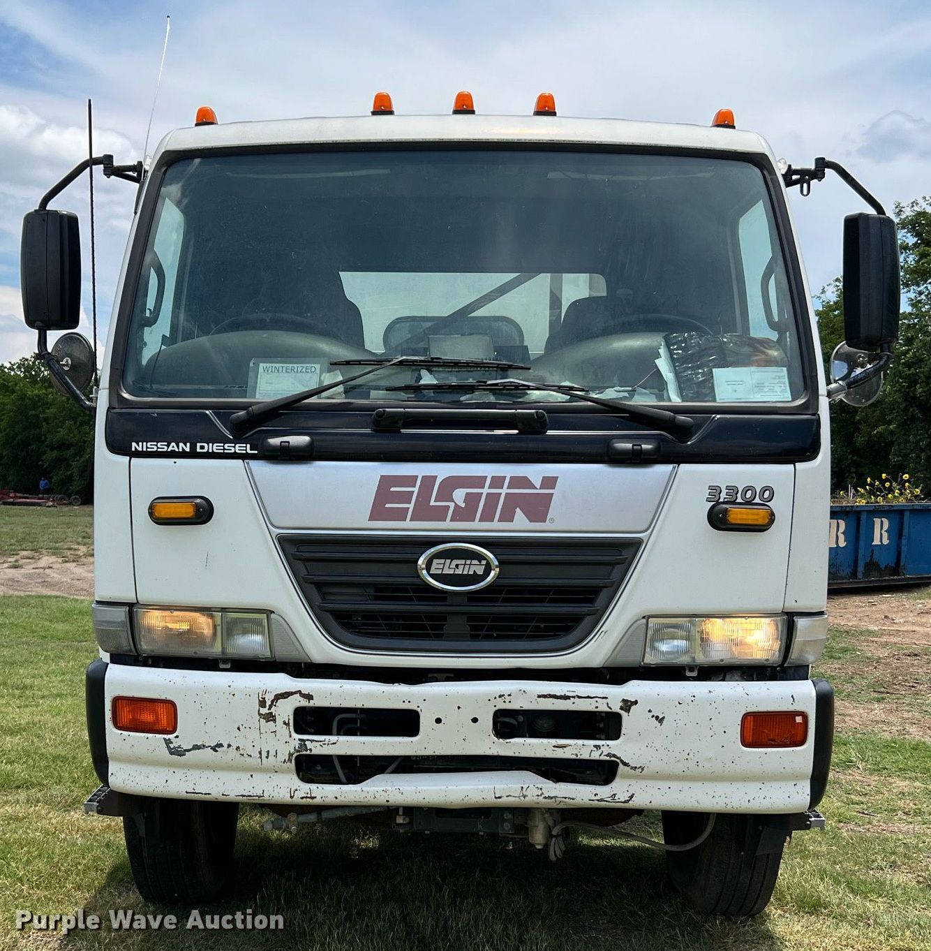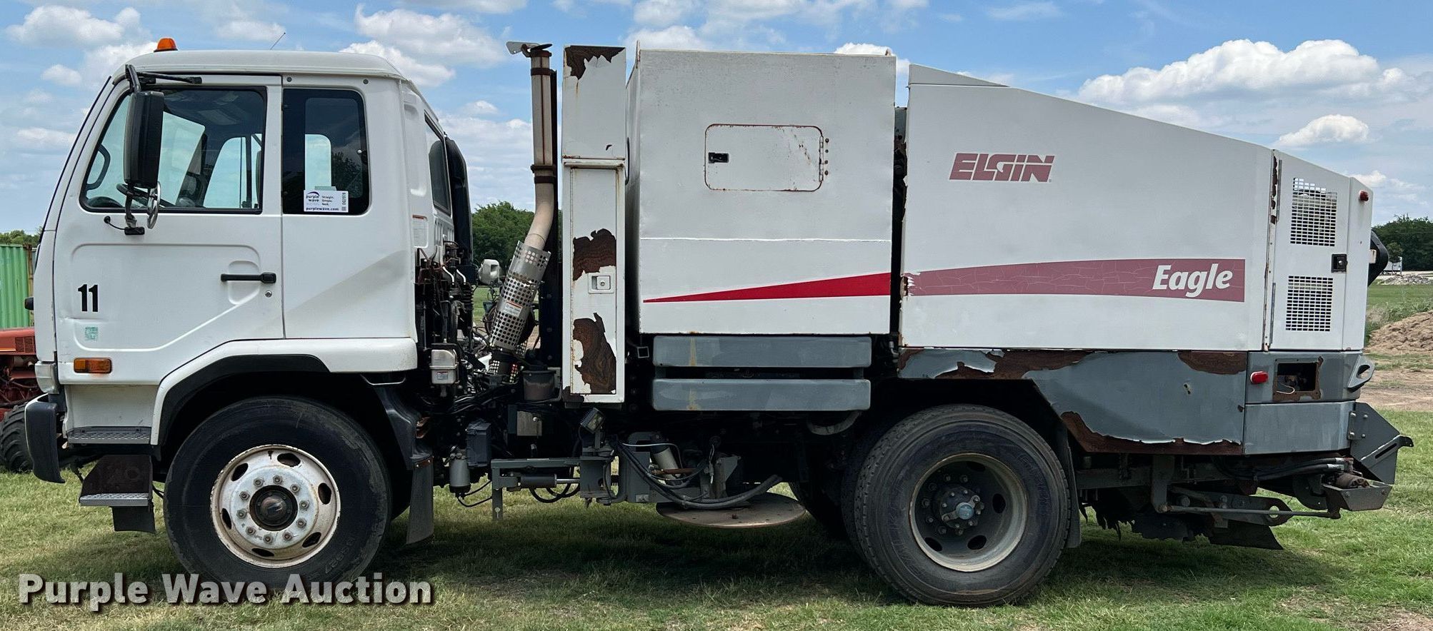 2010 Elgin Eagle street sweeper truck. Miles: 65,432 on odometer, VIN: JNAPC81L09AC75166, Serial: F2714D. Engine Nissan J08E-UJ, Displacement: 469 C.I.D, Cylinders: 6, Fuel type: Diesel, HP: 230. Transmission Automatic. Chassis Suspension: Air, Brakes: Air, GVWR: 32,900 lbs. Operators station AC, Dual operating station, Backup camera. Features Broom Width: 60", Water spray system, Auto lube, Sweeper bed Sweeper bed type: Conveyor Elgin, Left gutter broom Diameter: 30", Right gutter broom Diameter: 30", Engine John Deere 4024TF281A, Displacement: 2.4L, Cylinders: 4. Tires Size: 11R22.5. Notes Possible AC issues, may need charged, Non-operational backup camera , Windshield chipped or cracked. Transfer of ownership documentation will be a bill of sale. Cen-Tex Irrigation Systems. 9181 Highway 6. Crawford, TX 76638