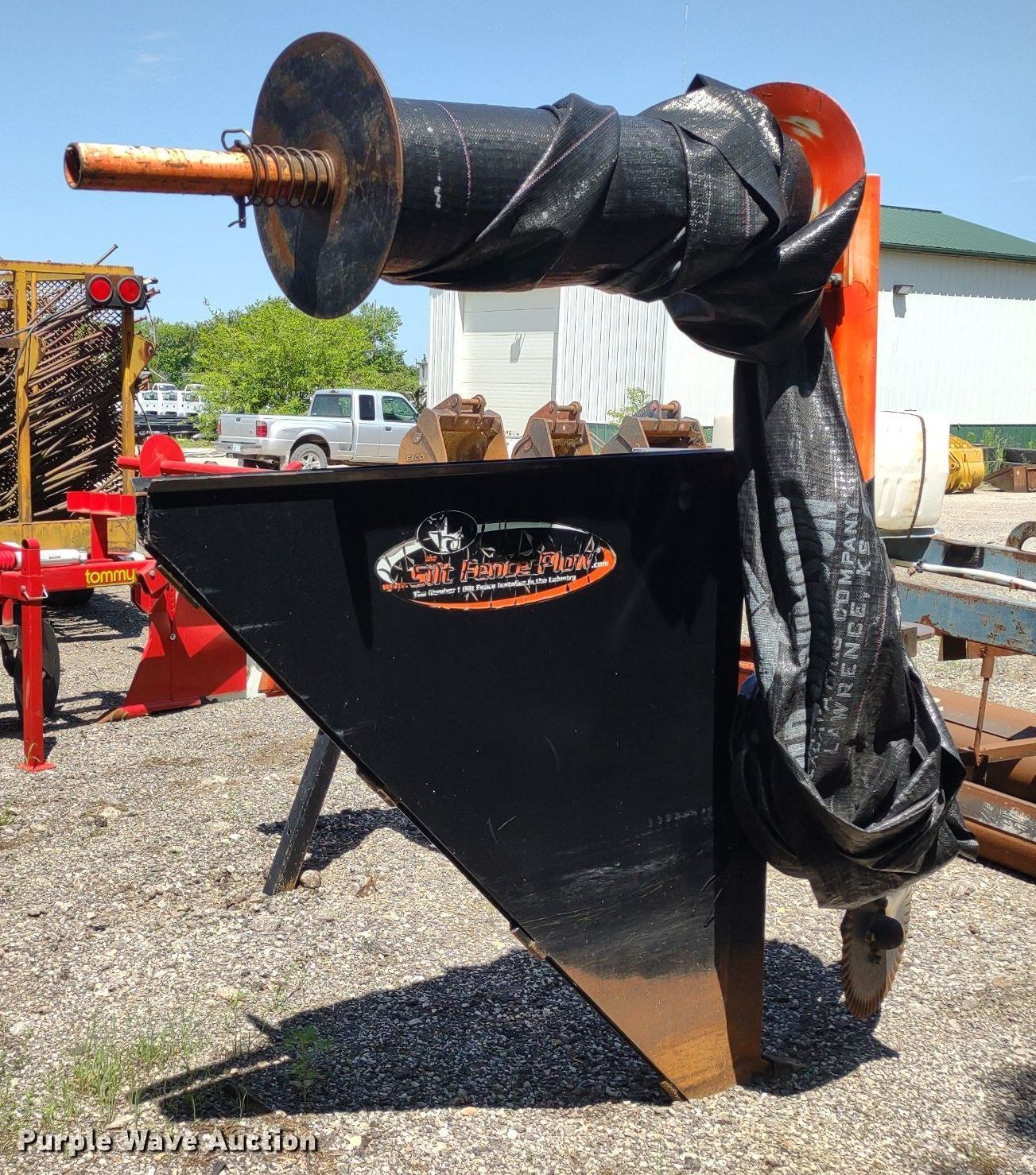 Purple Wave is selling a used Skid Steer Attach. in Kansas. This item is a Silt fence plow with the following: Silt fence plow. Sunflower Paving Inc./RD Johnson Excavating. 3701 East 23rd Street. Lawrence, KS 66046