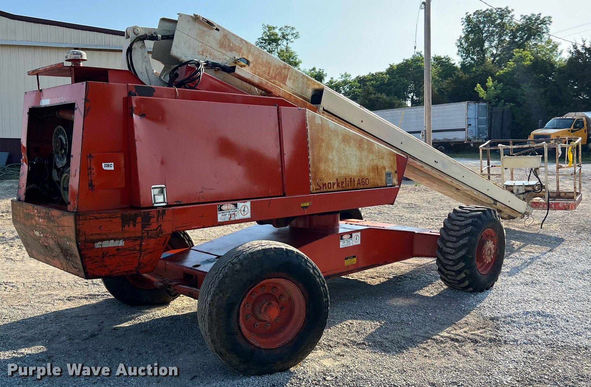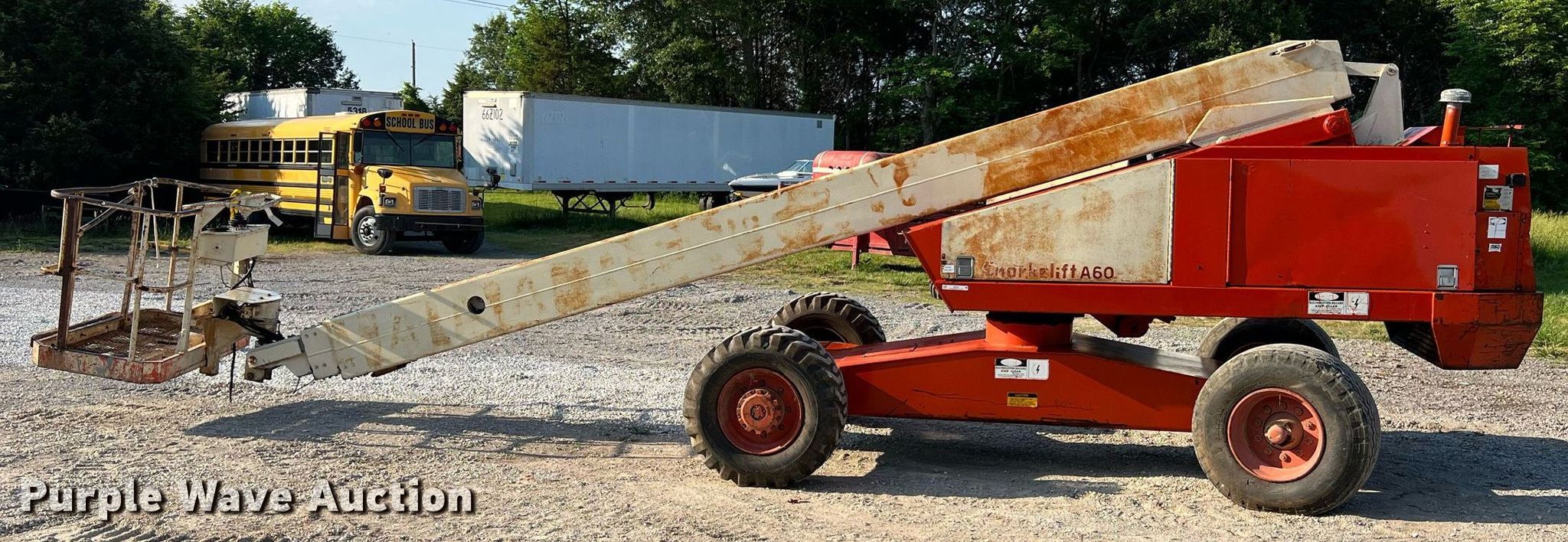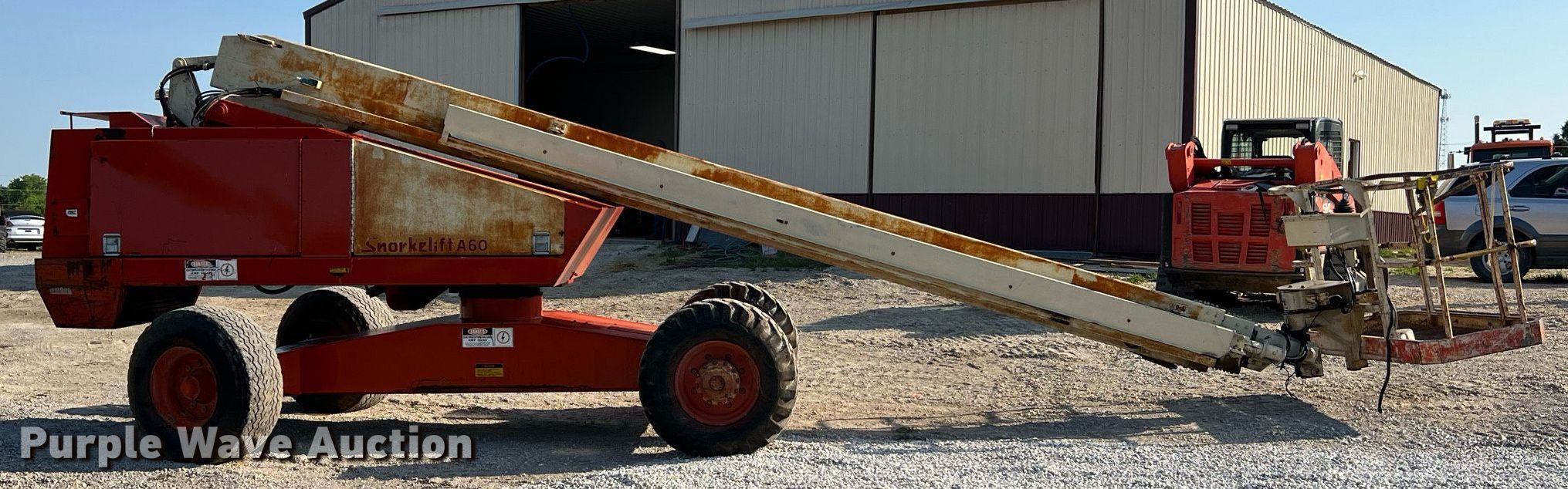 Purple Wave is selling a used Boom Lift in Missouri. This item is a Snorkelift TB-A60RD boom lift with the following: Hours: 1,406 on meter, Serial: 864050986