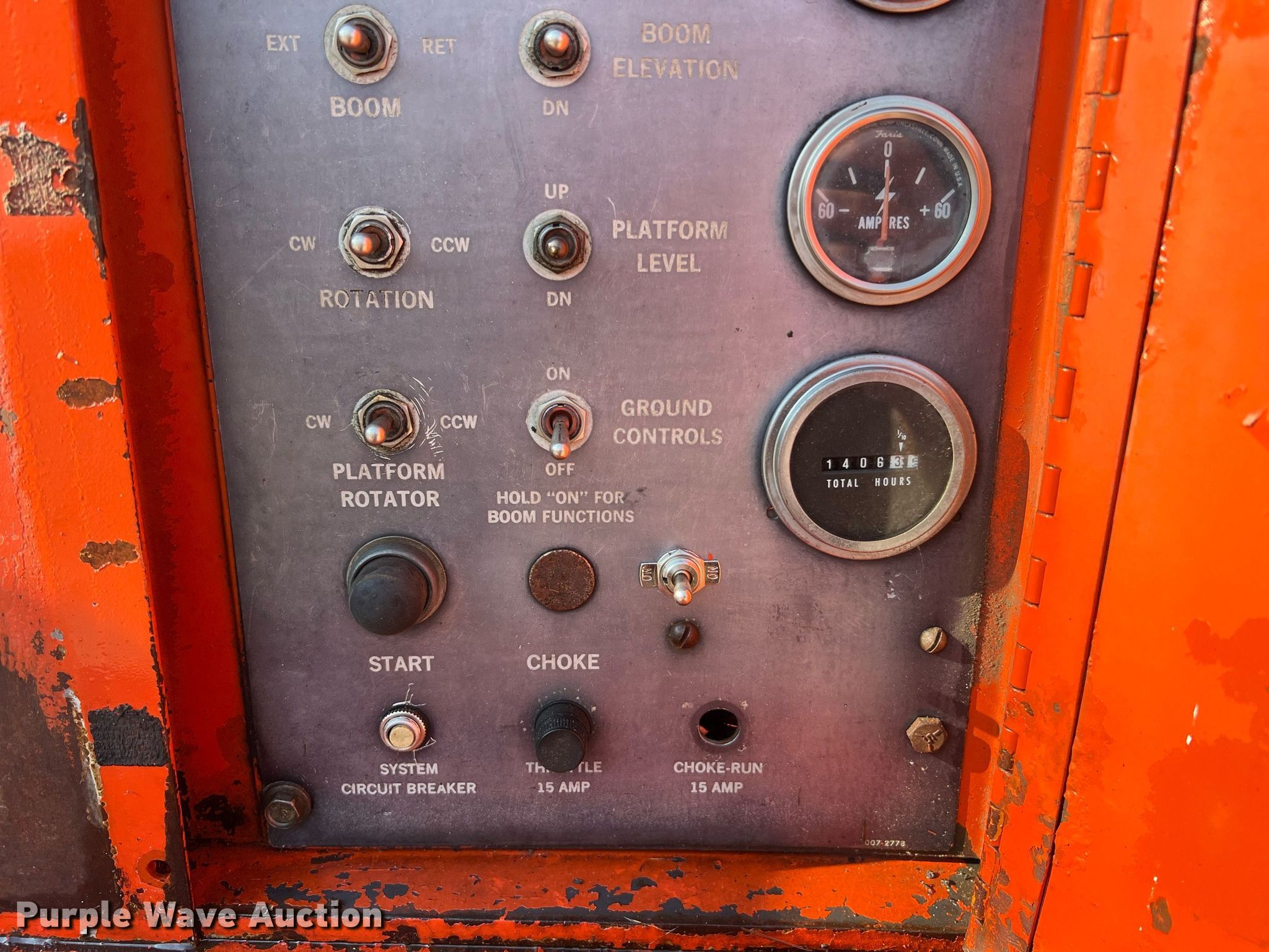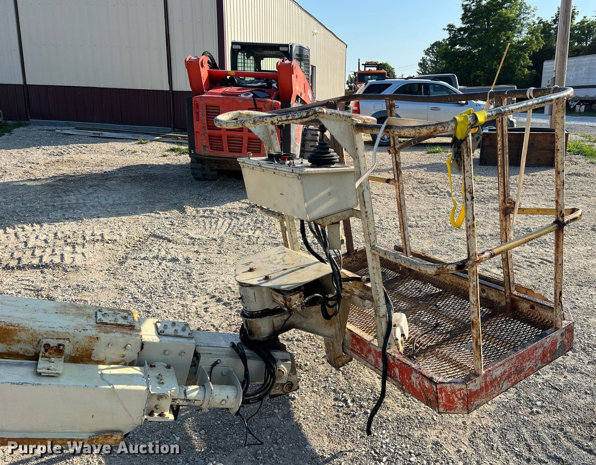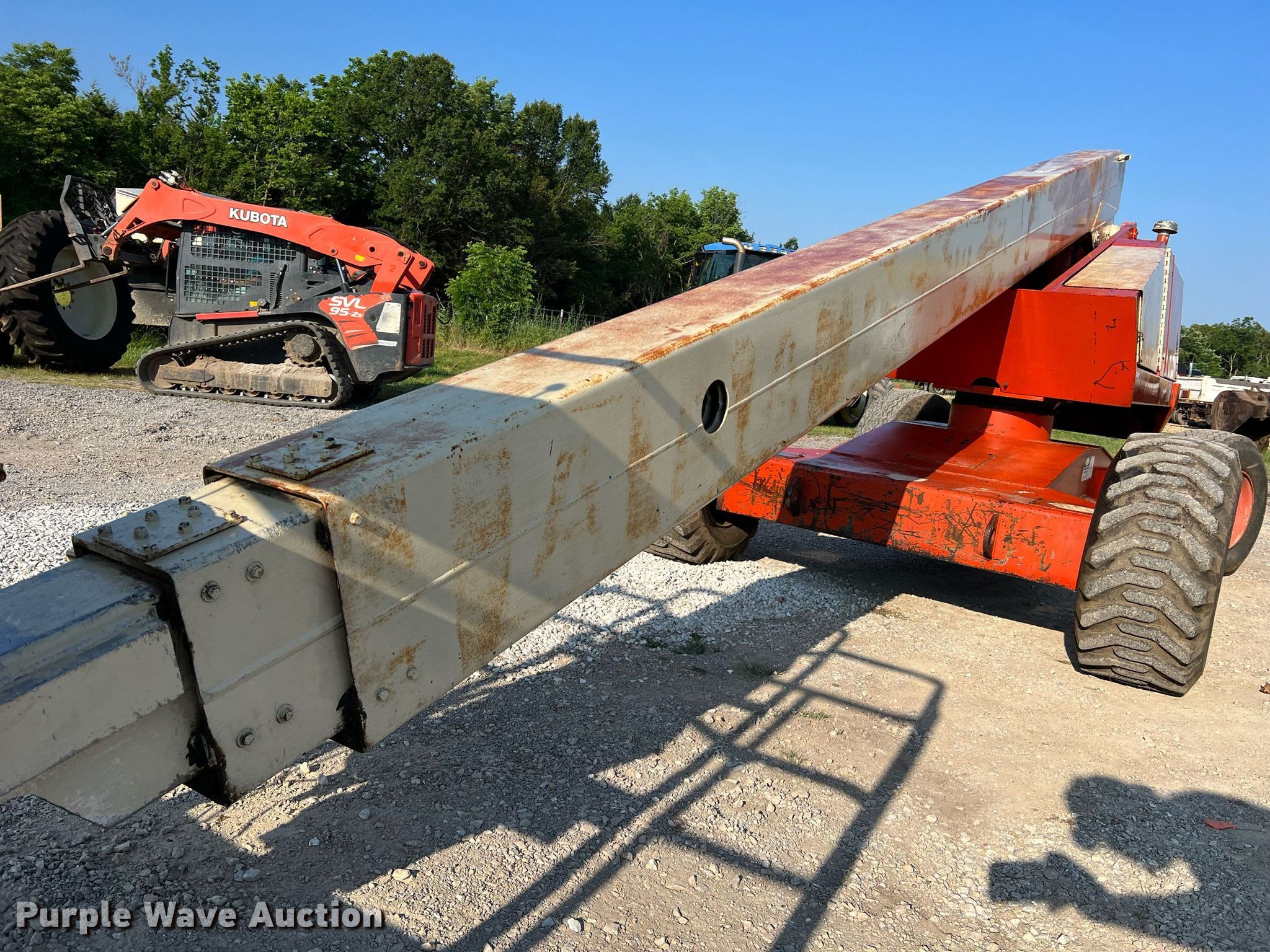 Snorkelift TB-A60RD boom lift. Hours: 1,406 on meter, Serial: 864050986. Engine Deutz F3L912, Serial: 7242728, Cylinders: 3, Fuel type: Diesel. Features Rough terrain, Maximum lift capacity: 500 lbs, Maximum lift height: 60', Platform: 33" L x 63" W, Controls: Platform, Ground, Platform rotation: Hydraulic. Tires Tire size: 15-19.5. Notes Controller issues, basket/ground control issues. Don Hanson Retirement Auction. 8267 Old US Highway 54. New Bloomfield, MO 65063