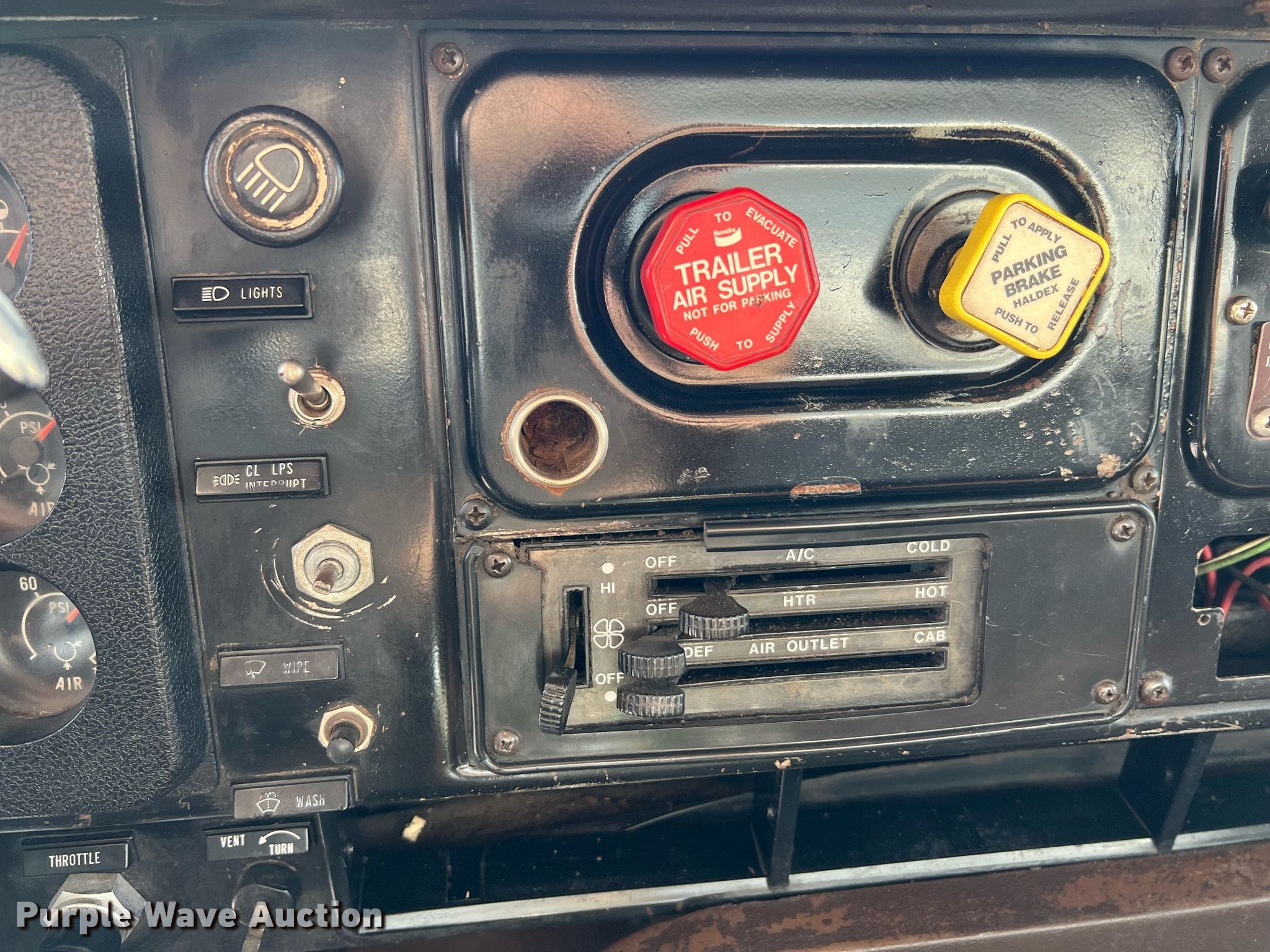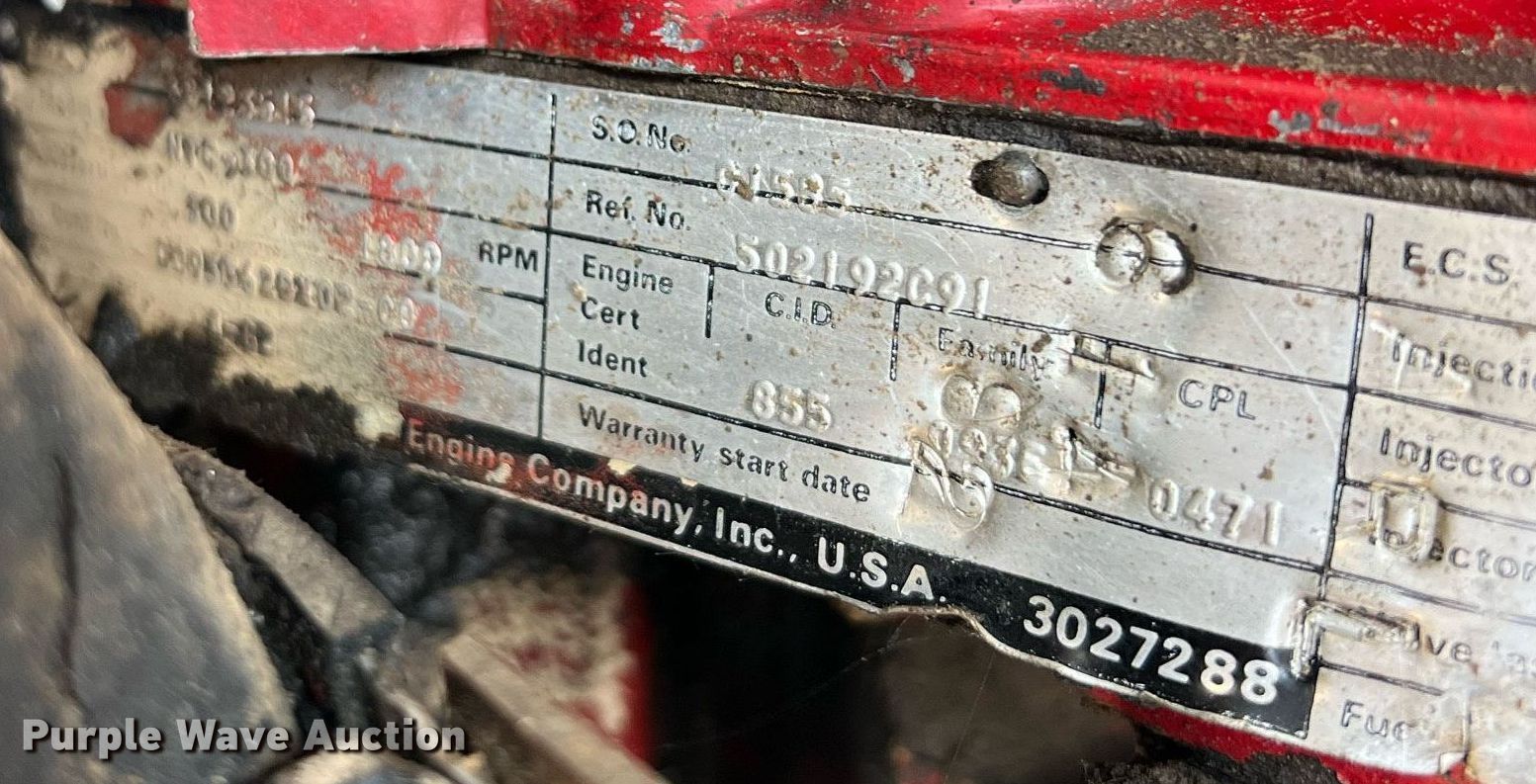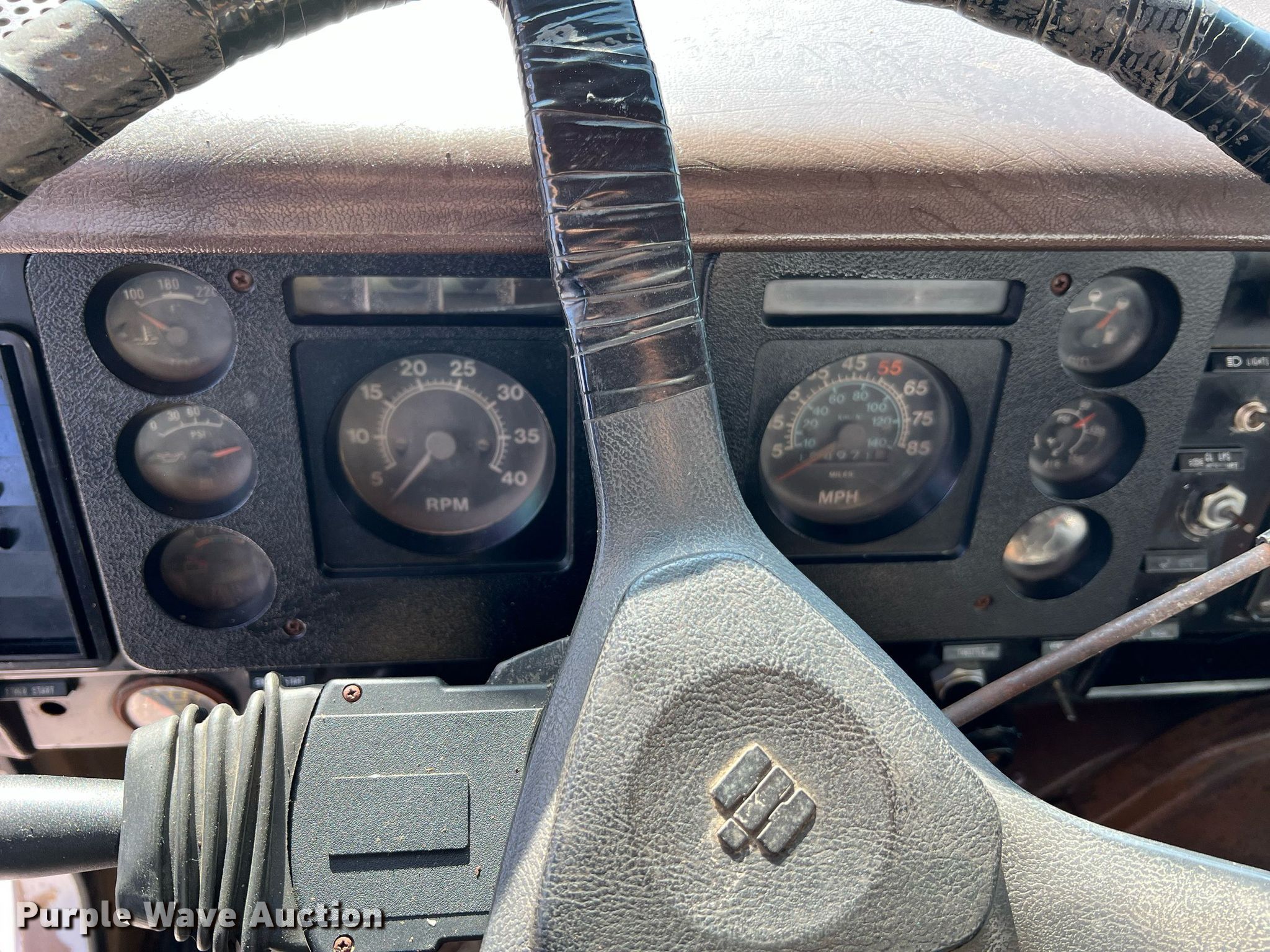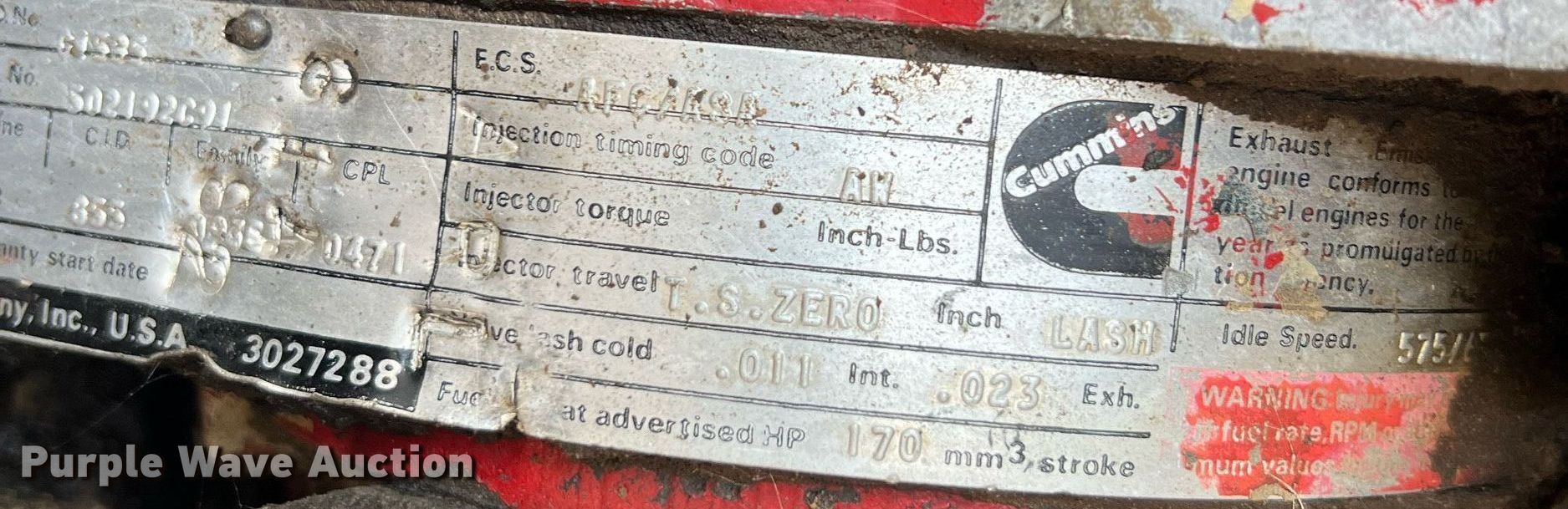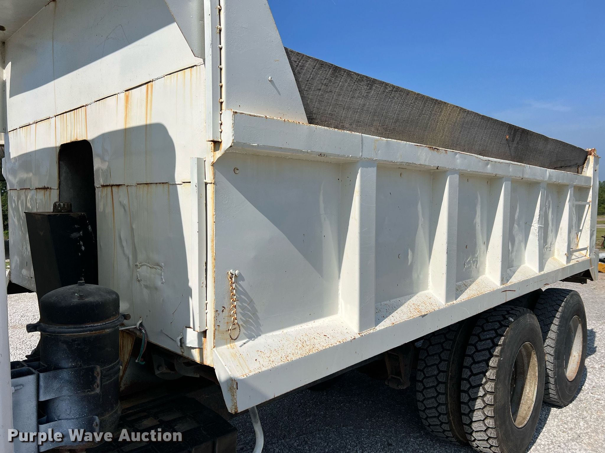 1982 International F2275 dump truck. Miles: 104,971 on odometer, VIN: 1HTDF2276CGB15239. Engine Cummins, Cylinders: 6, Fuel type: Diesel, HP: 300. Transmission FULLER Roadranger, Manual, Speed: 13. Chassis Axles: Tandem, Differential lock: Inter-axle, Suspension: Spring, Brakes: Air, PTO. Interior Heat. Features Dump bed Model: HPT10YD15, 14' 10" L x 95" W, Side height: 35", Side board height: 9", Bed type: Steel, Ram: Single , End gate: Manual. Tires Size: 11R22.5. Notes Transmission overdrive disconnected, Brake issues. Missouri title. Title distribution may be delayed up to 14 days from verification of funds. T&R Equipment. 8267 Old Highway 54. New Bloomfield, MO 65063