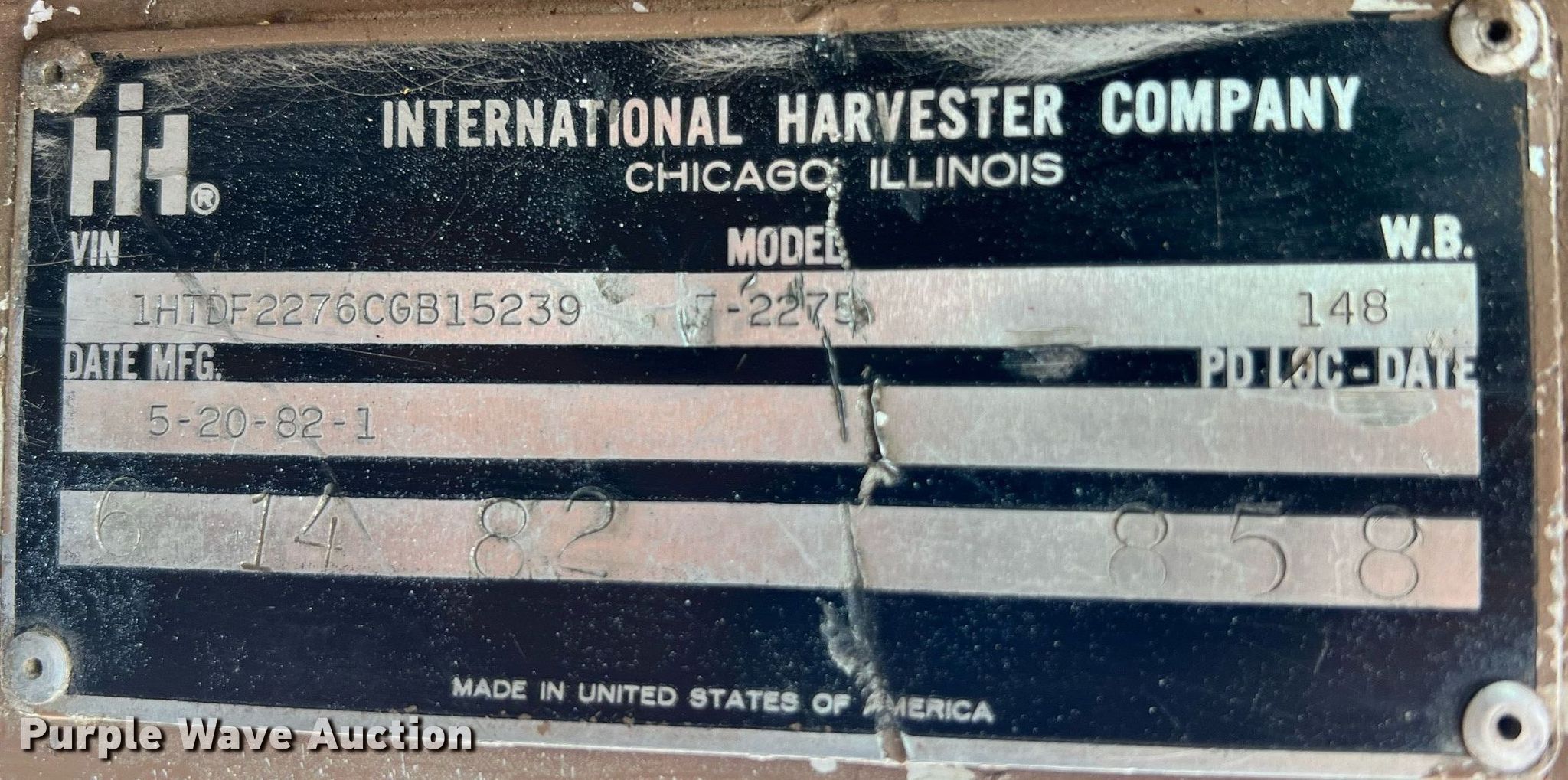 Purple Wave is selling a used Construction Dump Truck in Missouri. This item is a 1982 International F2275 dump truck with the following: Miles: 104,971 on odometer, VIN: 1HTDF2276CGB15239