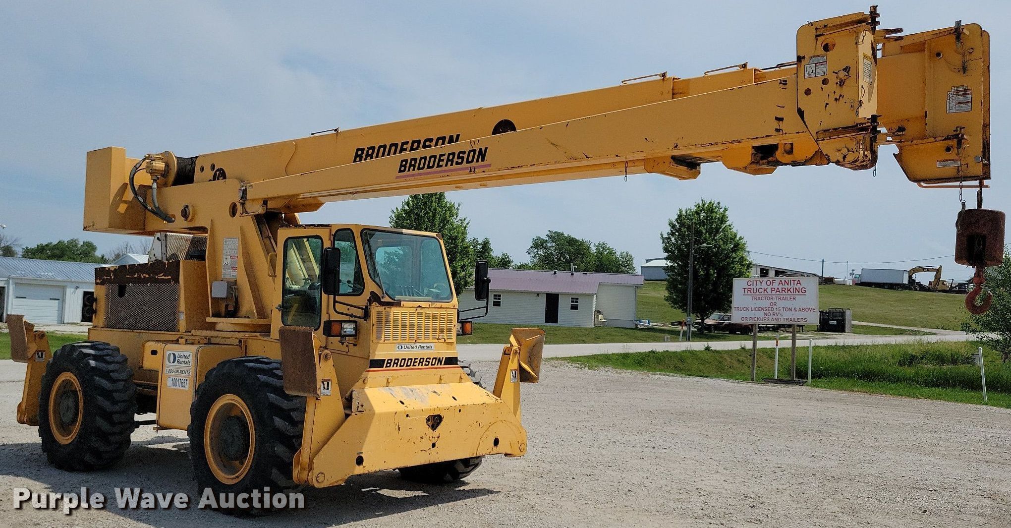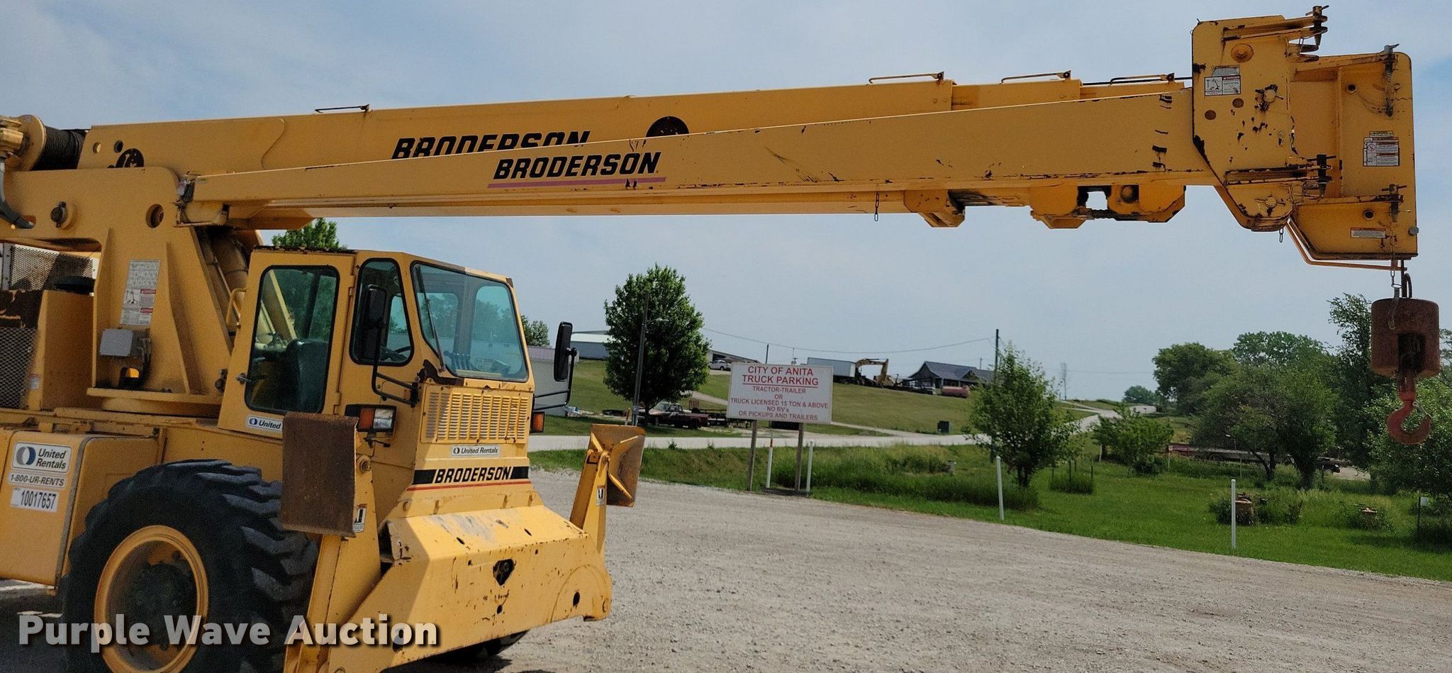 Purple Wave is selling a used Rough or All Terrain Crane in Iowa. This item is a 2009 Broderson RT-300-2E crane with the following: Hours: 6,044 on meter, Serial: 35374