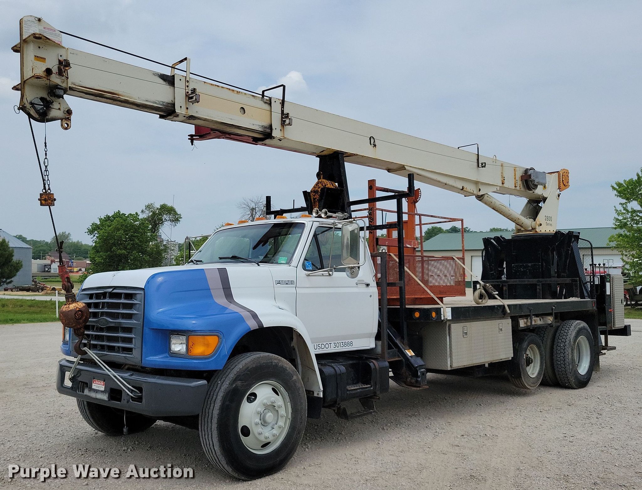 This 1999 Ford F800 crane truck will sell to the highest bidder regardless of price.