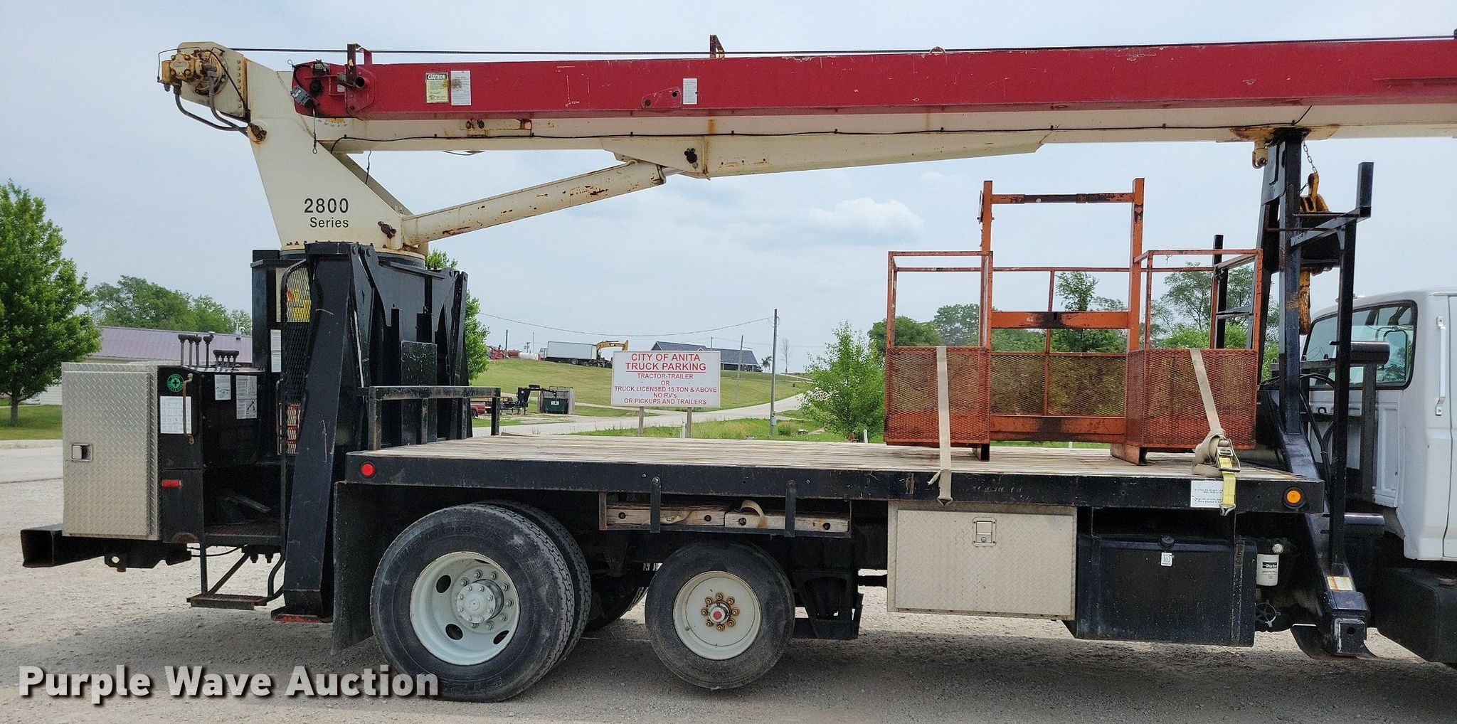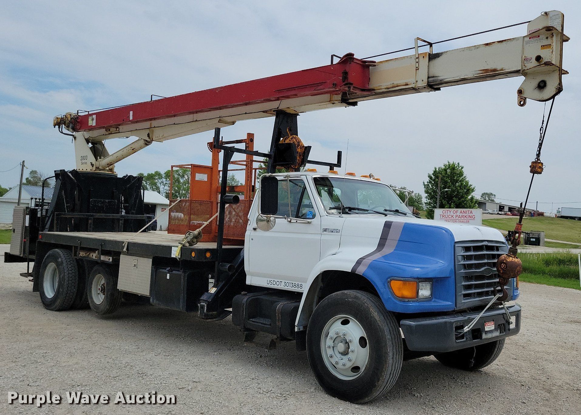 1999 Ford F800 crane truck has sold in Anita, Iowa for $35750. Item JO9175 sold on July 6th, 2023.
