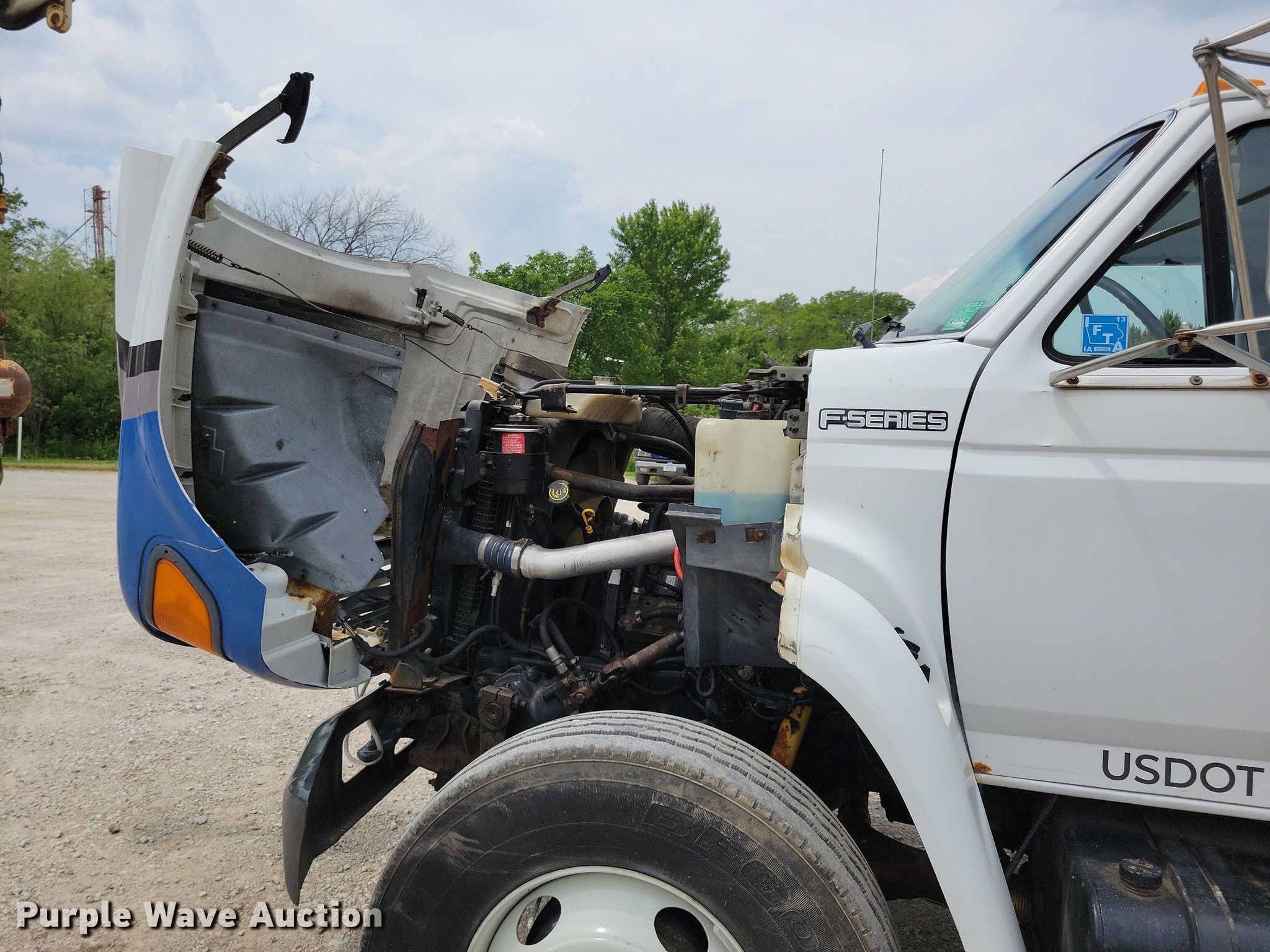 Purple Wave is selling a used Crane Truck in Iowa. This item is a 1999 Ford F800 crane truck with the following: Miles: 124,304 on odometer, Hours: 9,111 on meter, VIN: 3FEXF801XXMA06150