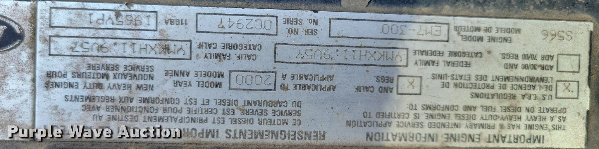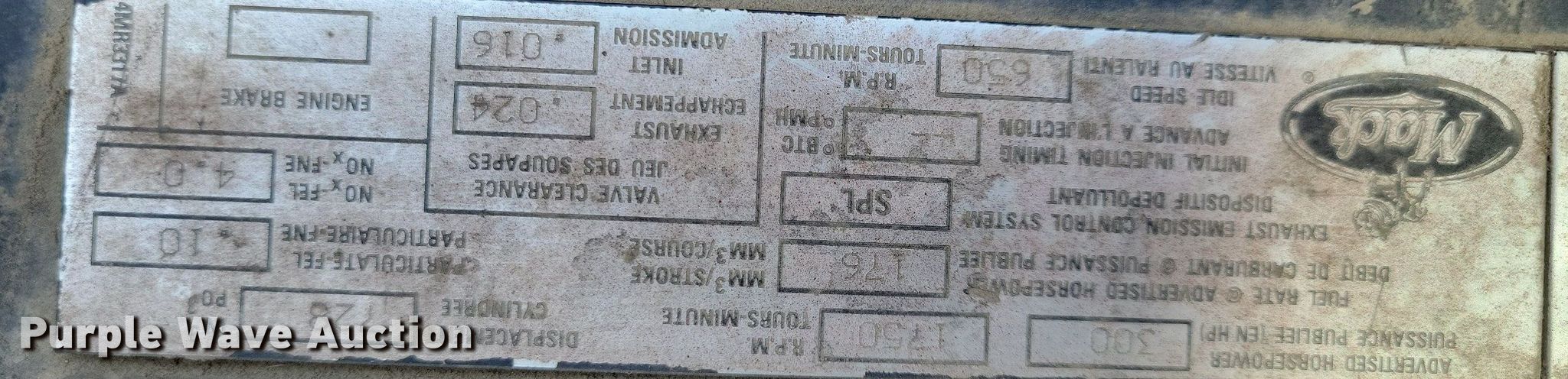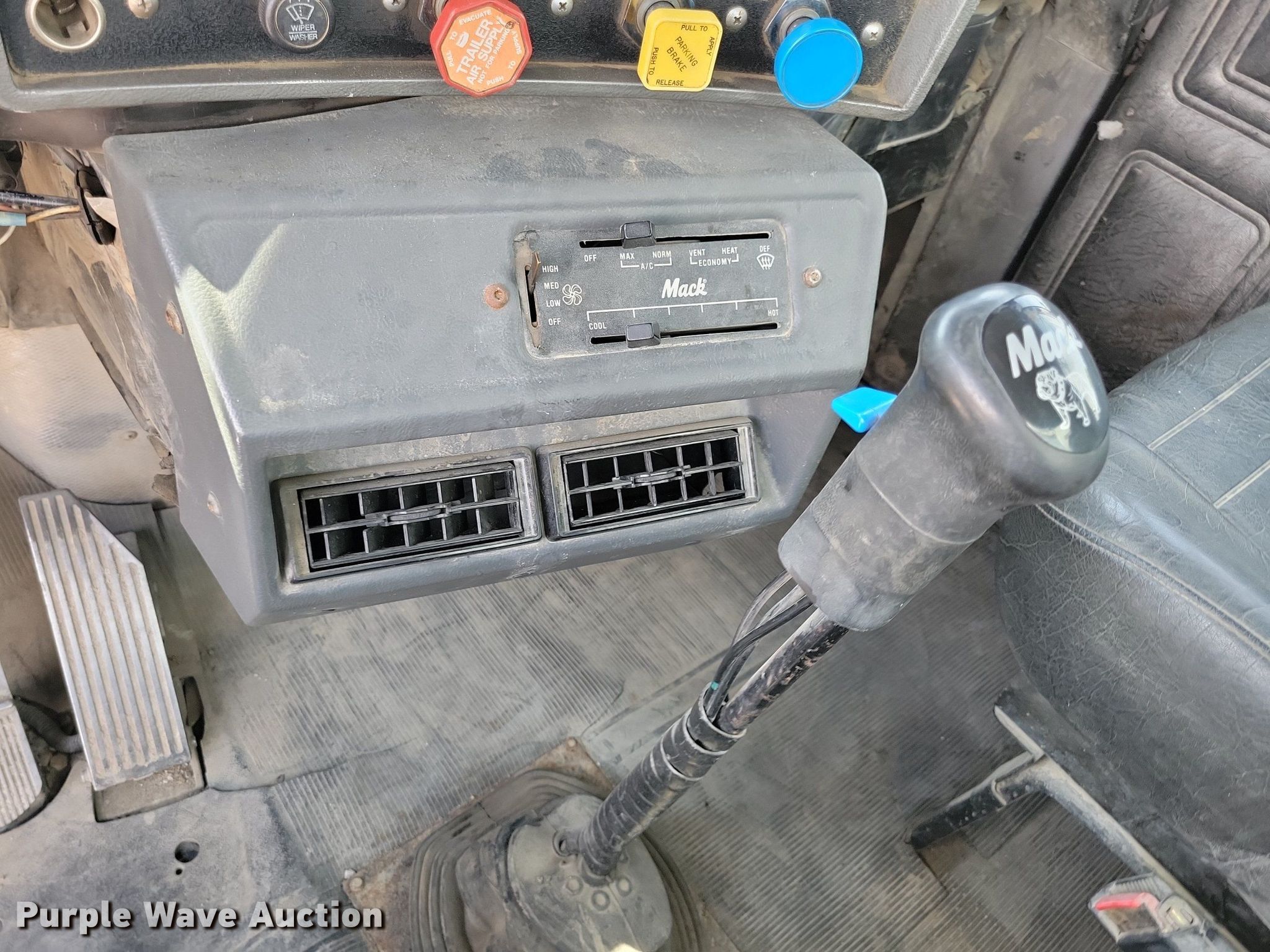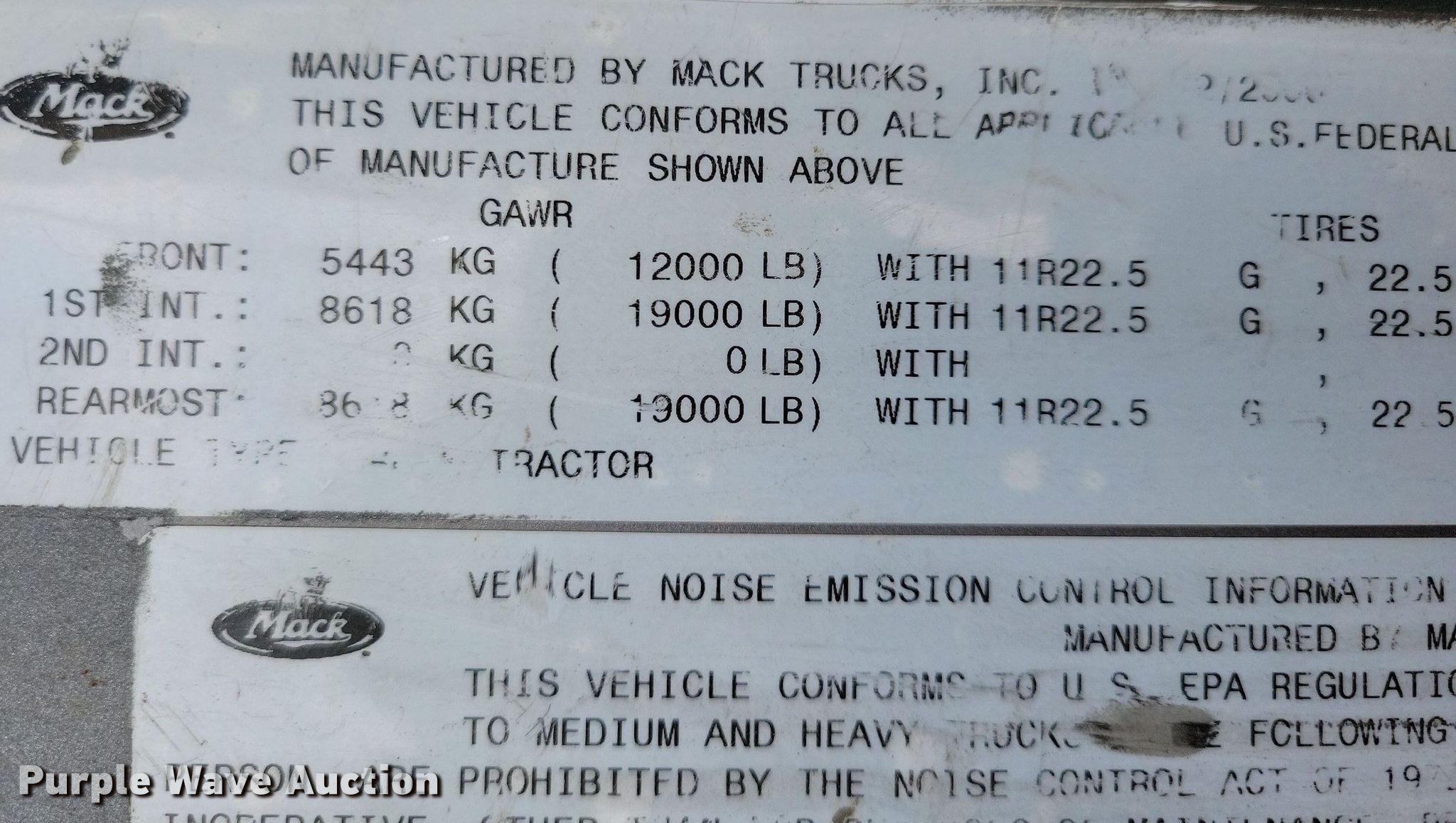 2000 Mack RD690S semi truck. Miles: 15,526 on odometer, Hours: 3,227 on meter, VIN: 1M1P264Y3YM031291. Engine Mack EM7-300, Serial: OC2947, Displacement: 12.0L, Cylinders: 6, Fuel type: Diesel, HP: 300. Transmission Mack, Manual, Speed: 6. Chassis Axles: Tandem, Differential lock: Inter-axle, Suspension: Camelback, Brakes: Air, GVWR: 50,000 lbs FAWR: 12,000 lbs, IAWR: 19,000 lbs, RAWR: 19,000 lbs. Interior AC, Heat, Heated mirrors, Air ride cab. Features Deck plate: Aluminum, Fifth wheel type: Air operated, Sliding, Fuel tank: Dual. Tires Size: 11R22.5. Iowa title. Seller is an Iowa licensed motor vehicle dealer. The buyer may be required to pay sales tax and/or registration fees to the dealer prior to taking possession. Buyers may be required to provide identification to the licensed dealer to comply with Iowa state laws. Title will be assigned and distributed by the dealer. Please contact the seller for distribution questions. BC Murphy Enterprises, LLC. 1299 White Pole Road. Anita, IA 50020
