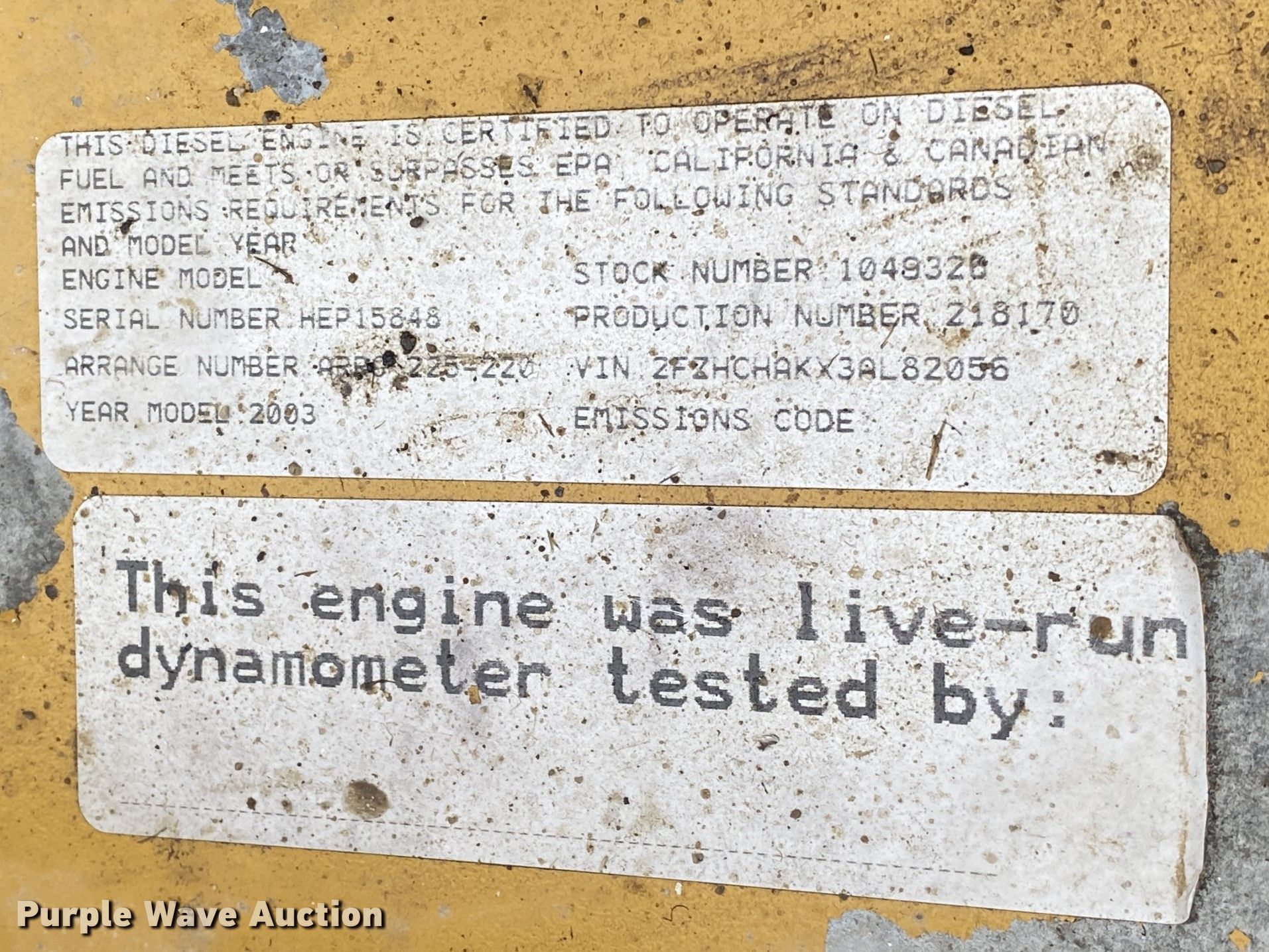 2003 Sterling Acterra dump truck. Miles: 233,764 on odometer, Hours: 10,860 on meter, VIN: 2FZHCHAKX3AL82056. Engine Caterpillar 3126, Serial: HEP15848, Displacement: 7.2L, Cylinders: 6, Fuel type: Diesel. Transmission Eaton Fuller Roadranger RT, Manual, Speed: 10. Chassis Double frame, Axles: Tandem, Differential lock: Inter-axle, Suspension: Spring over walking beam, Brakes: Air, PTO, GVWR: 56,000 lbs FAWR: 16,000 lbs, IAWR: 20,000 lbs, RAWR: 20,000 lbs. Interior AC, Heat, Cruise control, Brake controller. Features Dump bed 15' L x 86" W, Side height: 40", Side board height: 10", Bed type: Steel, Roll tarp, Ram: Single , End gate: Air operated. Tires Front: 315/80R22.5, Rear: 11R22.5. Oklahoma title. 15600 N 145th E. AVE. Collinsville, OK 74021