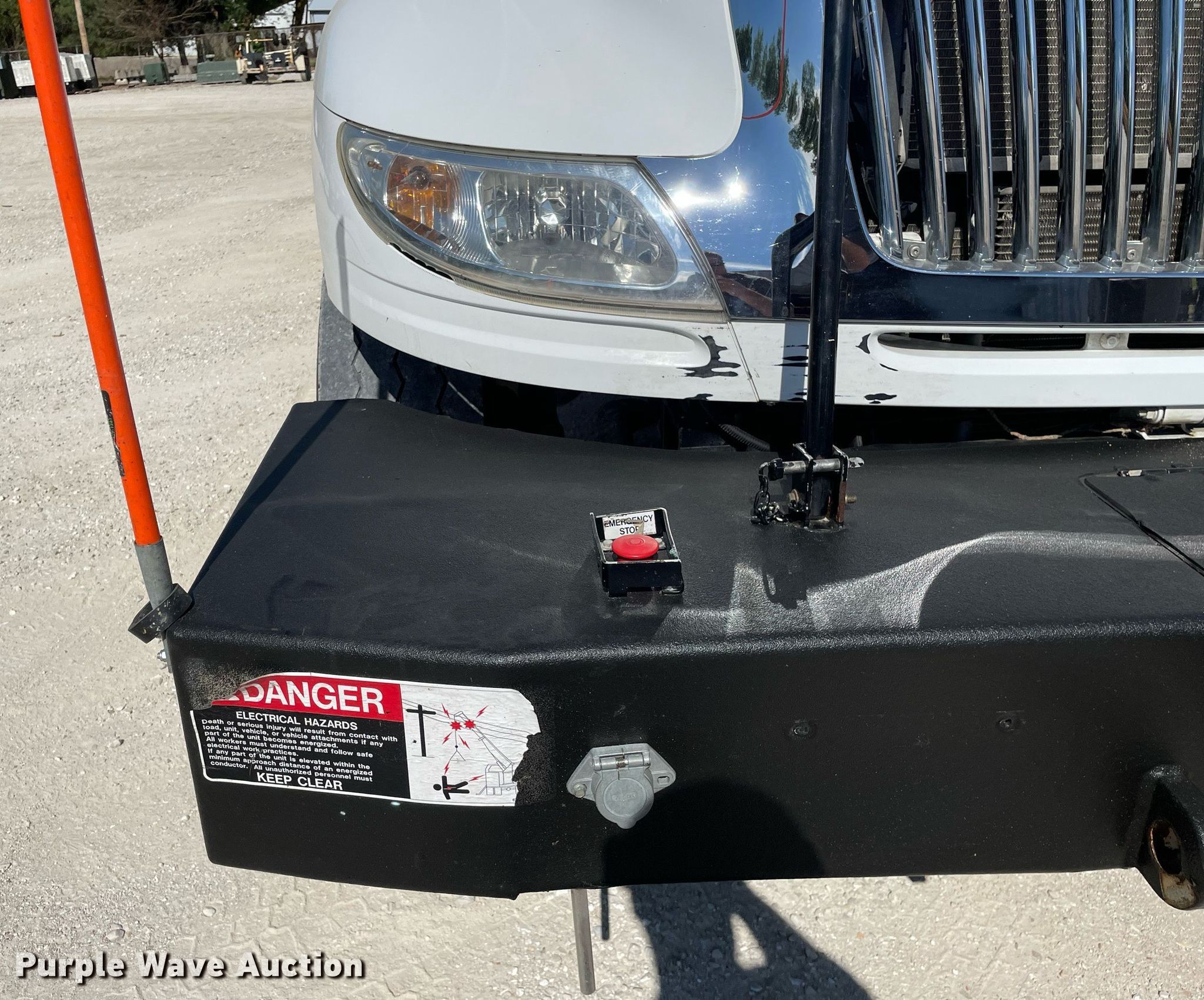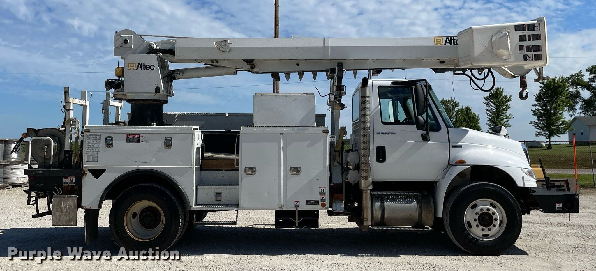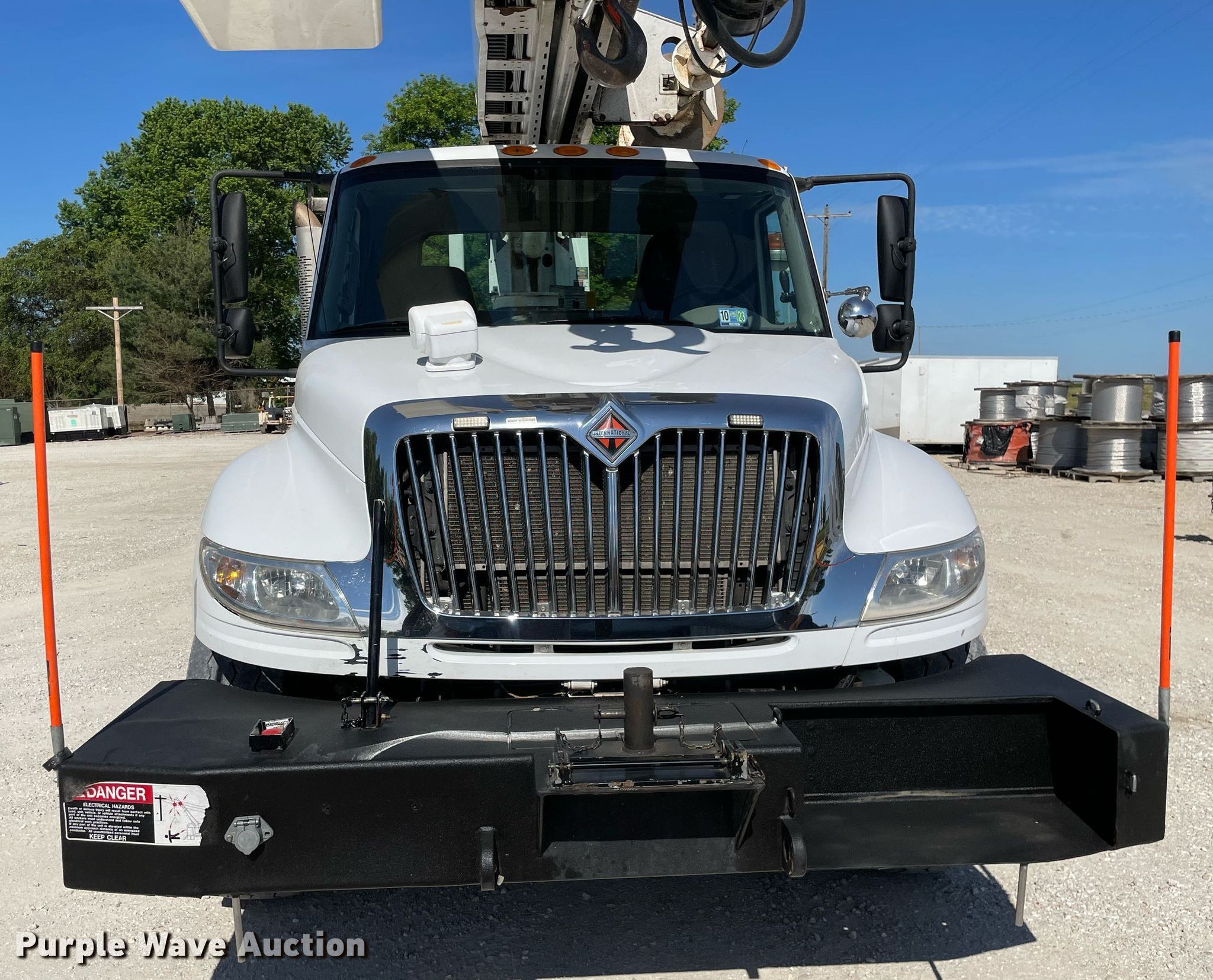 2015 International DuraStar 4400 digger derrick truck. Miles: 140,877 on odometer, Hours: 10,383 on meter, VIN: 3HAMKAAN1FL038100. Engine Model: Maxxforce DT, Displacement: 7.6L, Cylinders: 6, Fuel type: Diesel. Transmission Automatic. Chassis Axles: Single, Suspension: Spring, Brakes: Air, PTO, GVWR: 33,000 lbs. Interior AC, Heat, Heated mirrors, Power windows, Power locks, Cruise control, Auxiliary controls, Brake controller. Features Bed Altec, Serial: 37-29988286, 12' L x 94" W, Boom 2014 Altec DM47B-T, Serial: 0314FR1130, Maximum lift capacity: 23,790 lbs, Maximum lift height: 47', Boom type: Insulated, Telescopic, Man basket, Boom controls Ground, Platform/ basket, Remote control, Material handler, Pole guide, Auger Diameter: 18".. Tires Front: 315/80R22.5, Rear: 11R22.5. Illinois title. Title distribution may be delayed up to 14 days from verification of funds. Illinois Electrical Coop. 2 South Main Street. Winchester, IL 62694