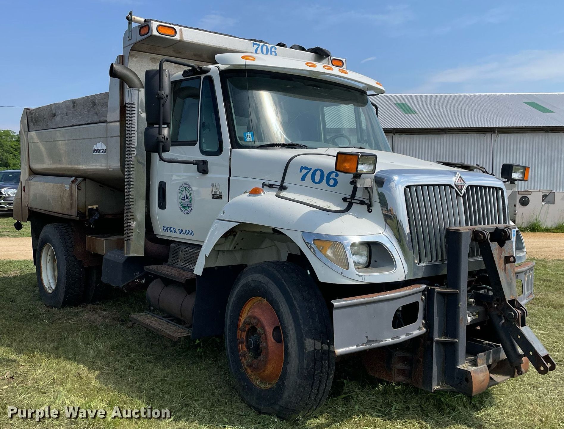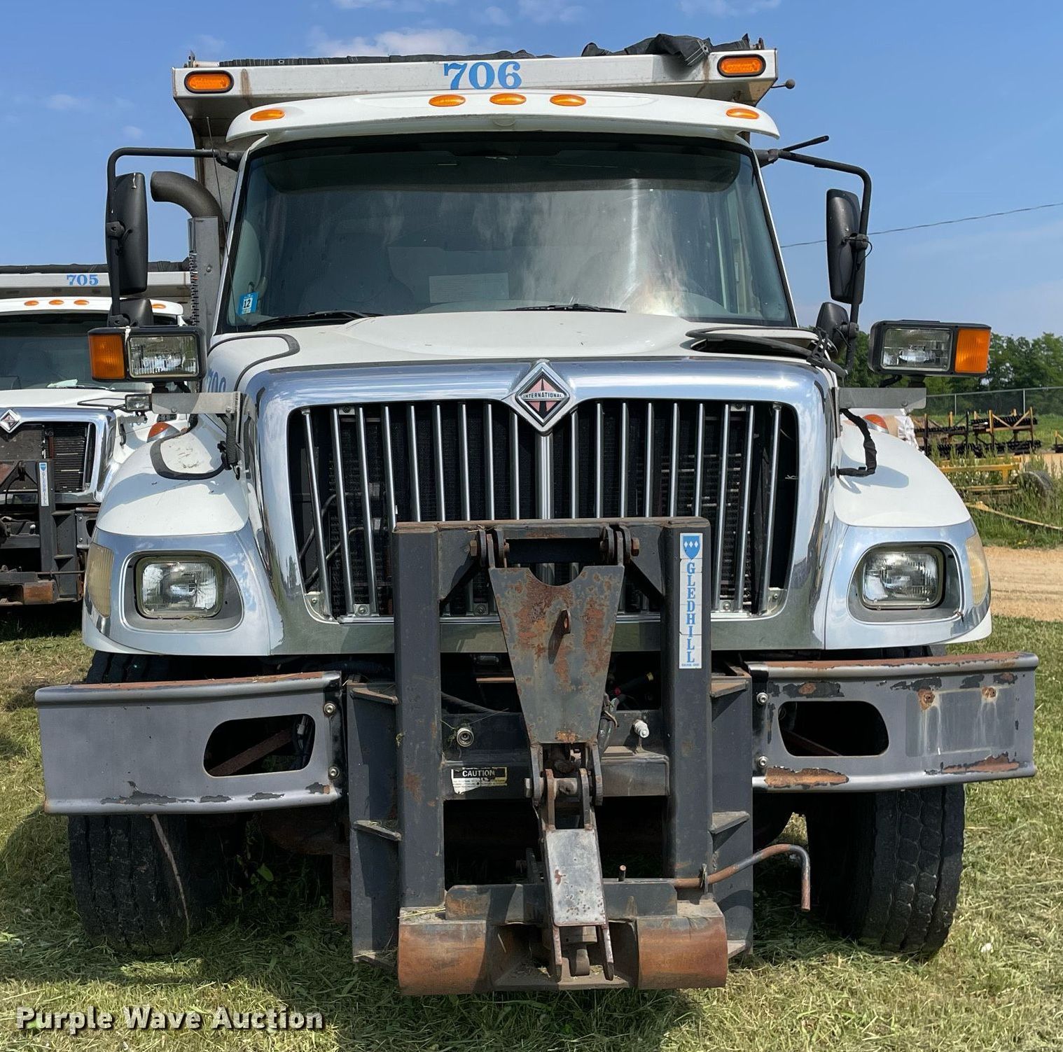 2006 International 7400 dump truck. Miles: 45,439 on odometer, Hours: 4,294 on meter, VIN: 1HTWDAAR76J266526, Unit #: 706. Engine International DT466, Displacement: 7.6L, Cylinders: 6, Fuel type: Diesel. Transmission Allison, Automatic. Chassis Axles: Single, Differential lock: Inter-axle, Suspension: Spring, Brakes: Air, PTO, GVWR: 36,200 lbs FAWR: 13,220 lbs, RAWR: 23,000 lbs, Wheelbase: 160". Interior AC, Heat, Heated mirrors, Cruise control, Brake controller. Features Dump bed Henderson 10x36x304SSxRDO, 10' L x 96" W, Side height: 36", Side board height: 12", Roll tarp, Ram: Single , End gate: Air operated, Belt conveyor Stainless steel, Length: 22". Tires Size: 11R22.5. Notes Dead battery, Possible parts missing, Unit must be towed or hauled , Non-operational unit. New Jersey title. Seller is an Illinois licensed motor vehicle dealer. The buyer may be required to pay sales tax and/or registration fees to the dealer prior to taking possession. Title will be assigned and distributed by the dealer. Please contact the seller for distribution questions. 1385 Franklin Grove Road. Dixon, IL 61021