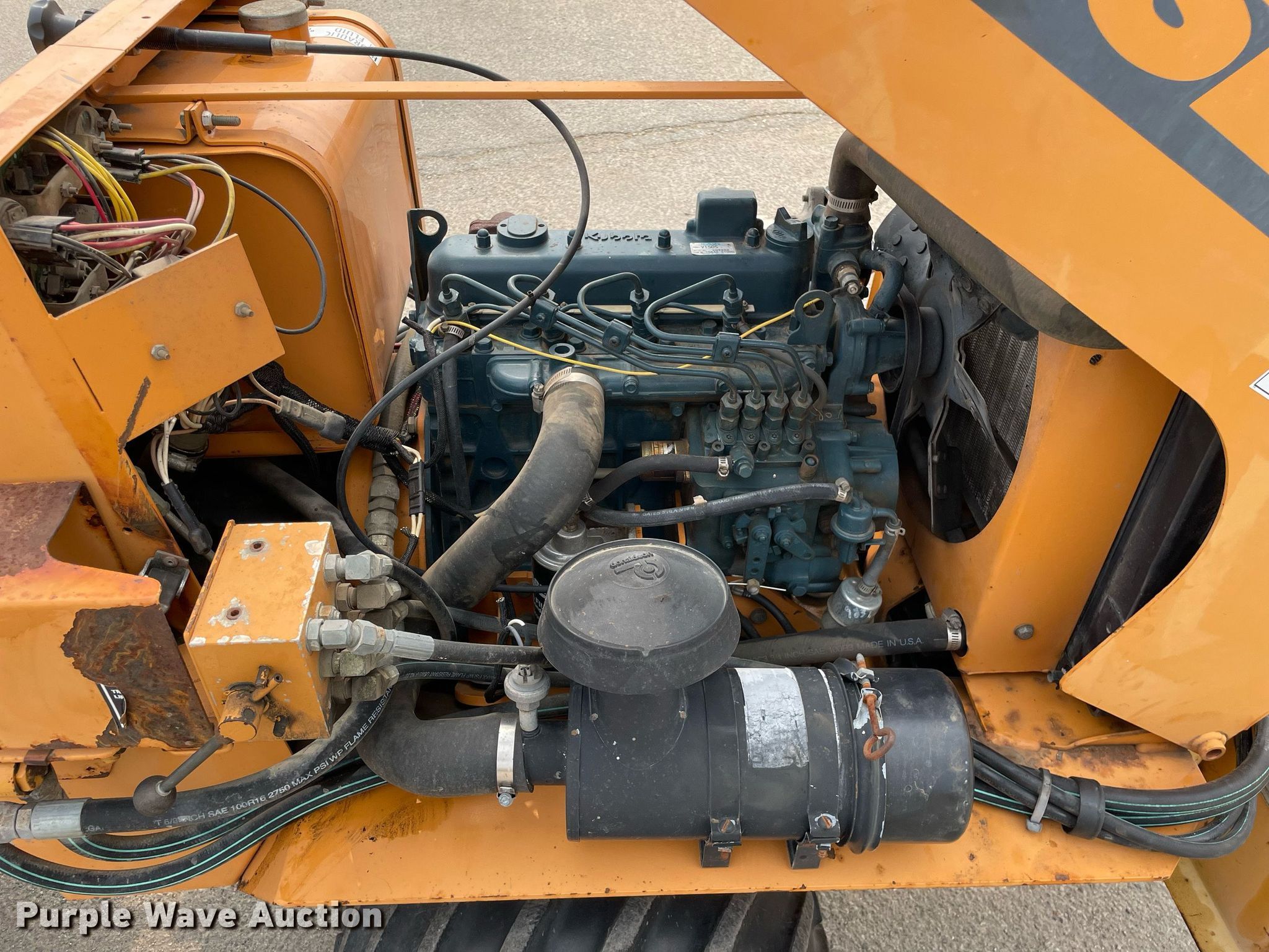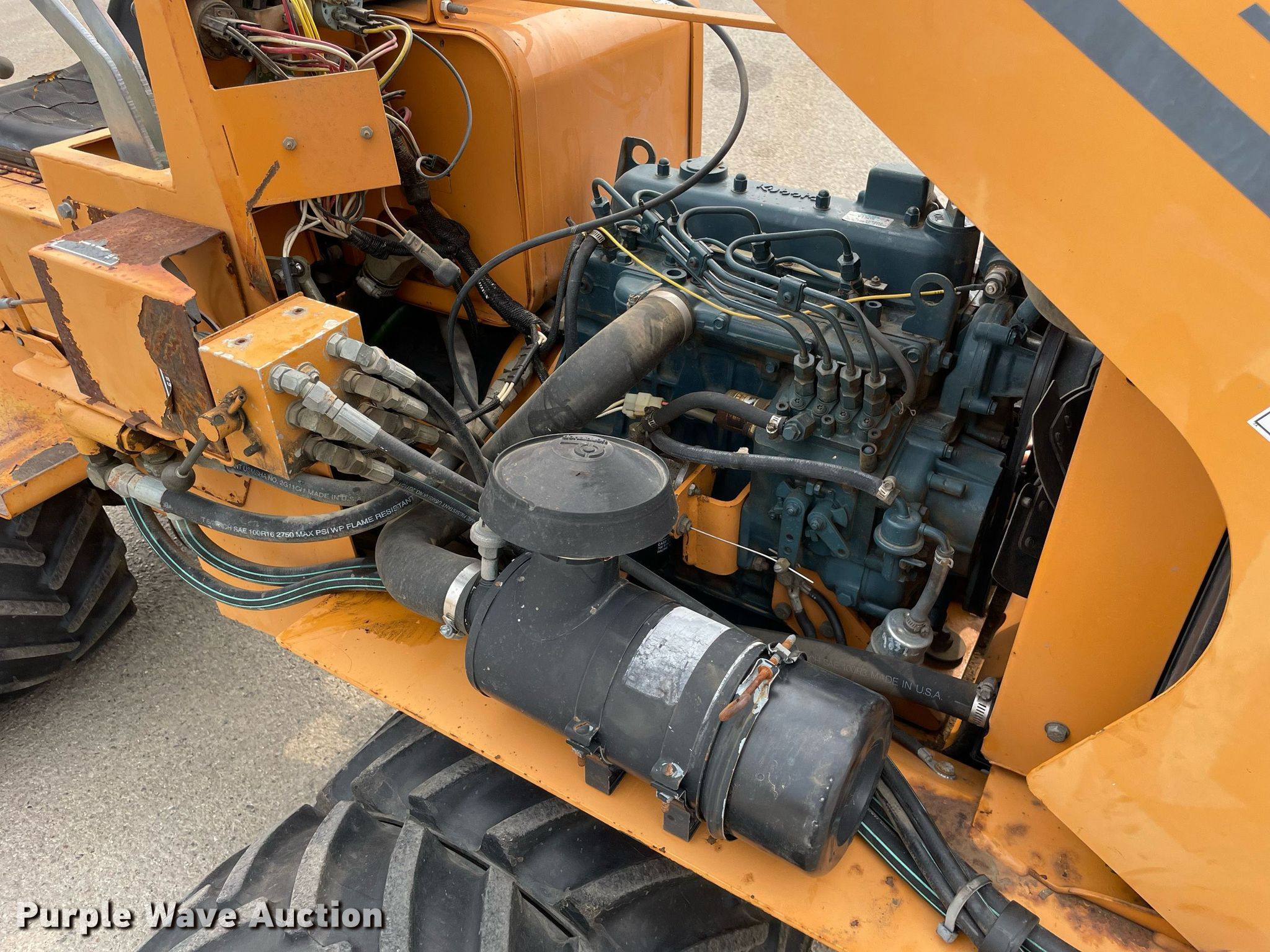 2000 Case Maxi Sneaker Series C trencher. Hours: 1,180 on meter, Serial: JAF0300377. Engine Kubota V1505, Serial: XN9202, Cylinders: 4, Fuel type: Diesel. Transmission Hydrostatic, Four wheel drive. Features Trencher Model: Maxi trencher, Serial: JAF0307015, Estimated dig depth: 72", Cutting width: 4", Teeth: Dirt, Vibratory plow Depth: 12", Mid mount PTO: 540. Tires Size: 23x10.5x12. Notes Manual. 625 Wheeling Road. Wheeling, IL 60090