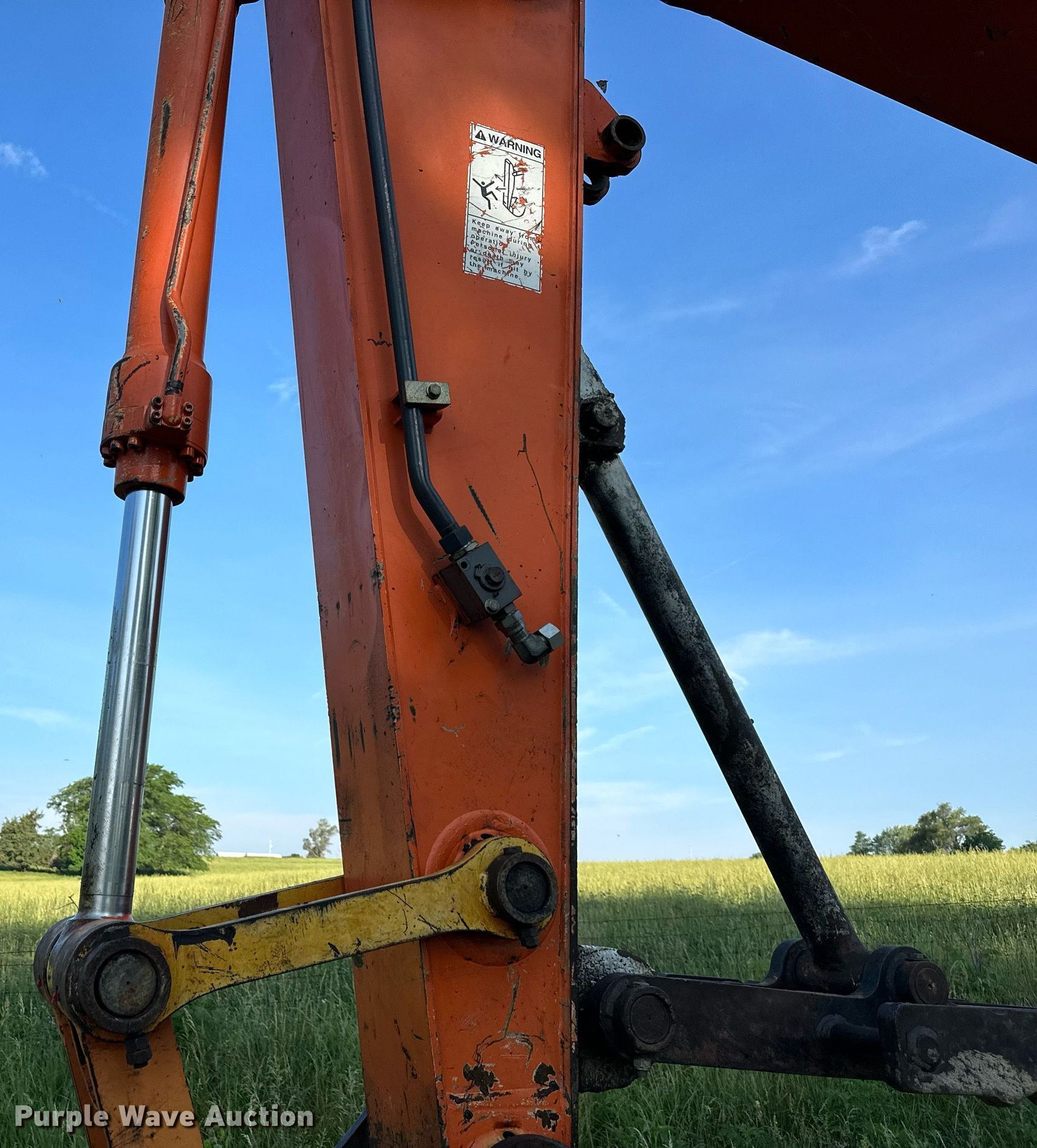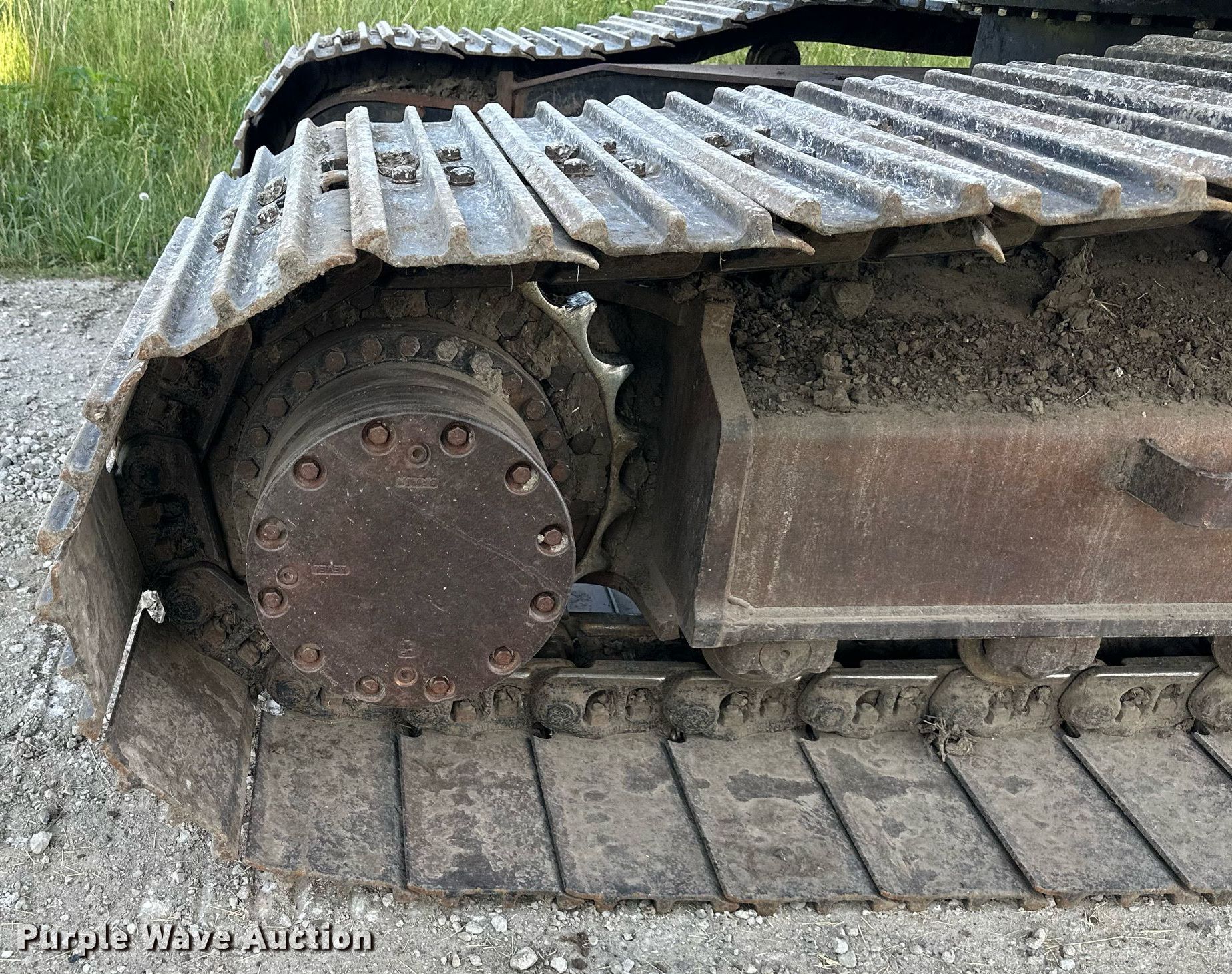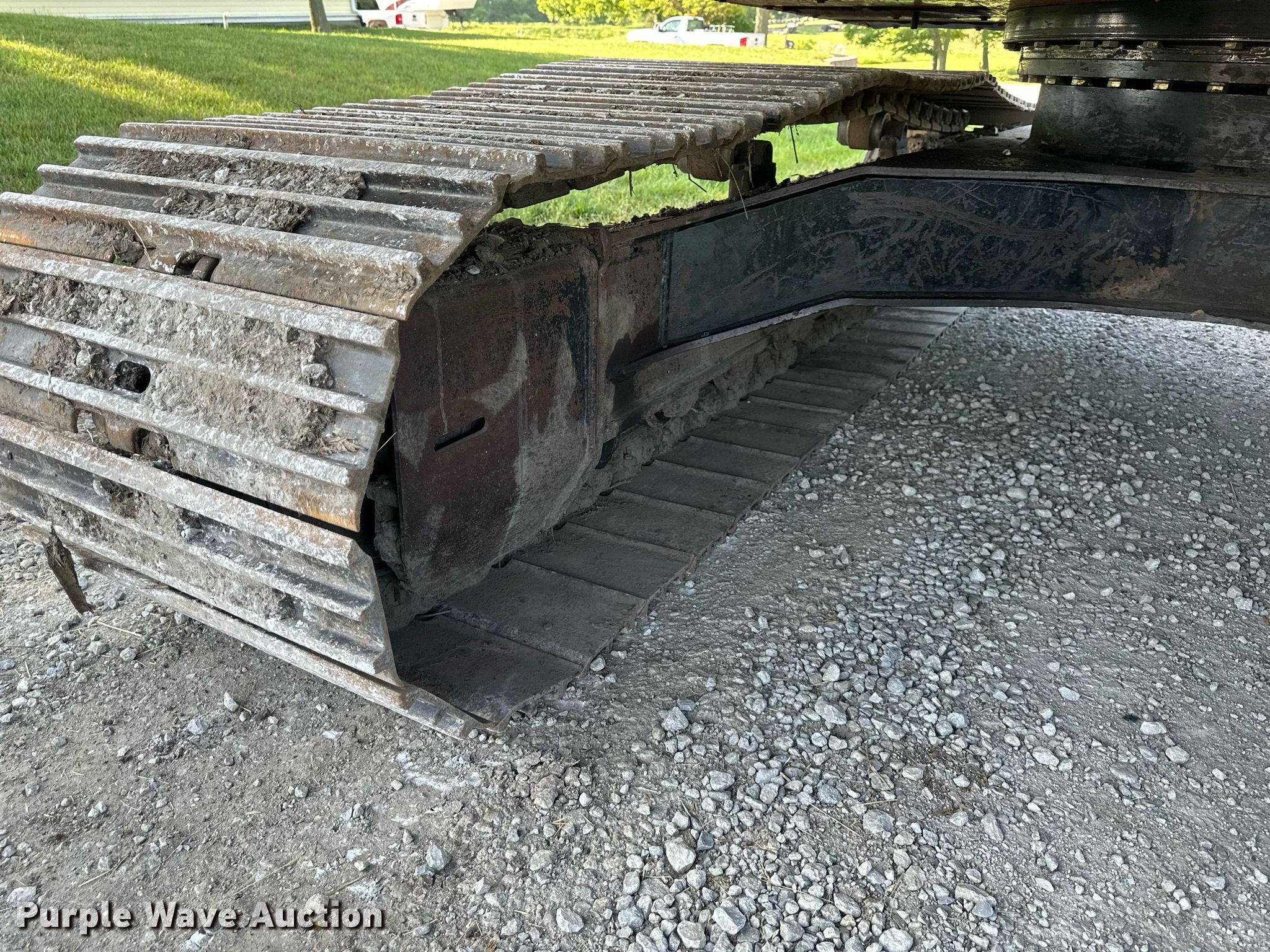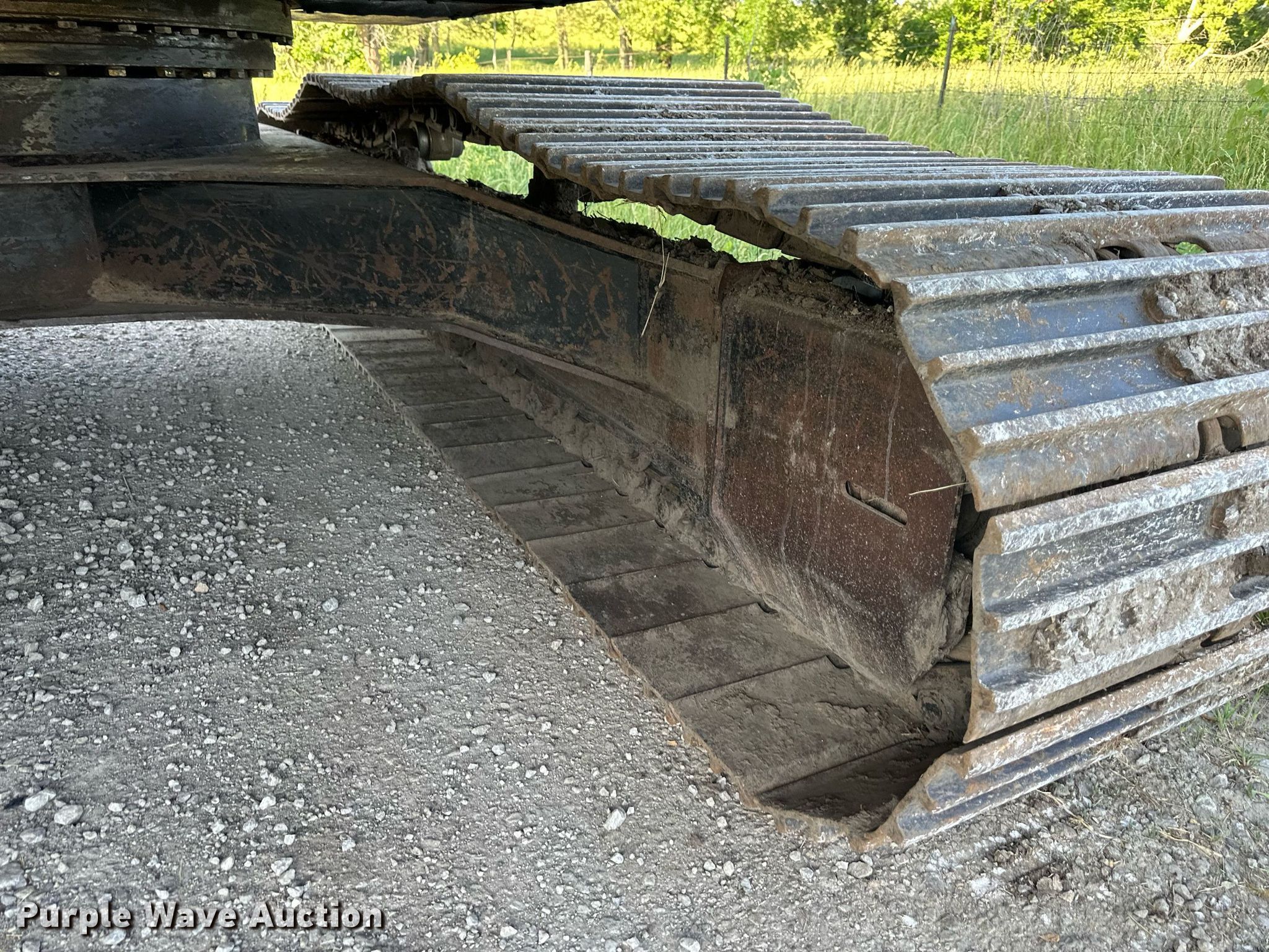 2006 Hitachi ZX200LC excavator. Hours: 10,364 on meter, Miles or hours may vary, unit still in use, Serial: ARH310986. Engine Isuzu AA-6BG1T, Displacement: 6.5L, Cylinders: 6, Fuel type: Diesel. Transmission Hydrostatic, Two speed travel. Operators station Enclosed cab, AC, Heat. Features Auxiliary hydraulics Standard, One-way, Counter weights, Removable, Boom Standard, Stick Stick length: 12', Thumb: Manual, Bucket Width: 40", Cutting edge: Weld-on, Teeth: 5. Tracks Width: 31.5", Steel, Grouser pads: Triple. Wolfe Farms. Helena, MO 64459