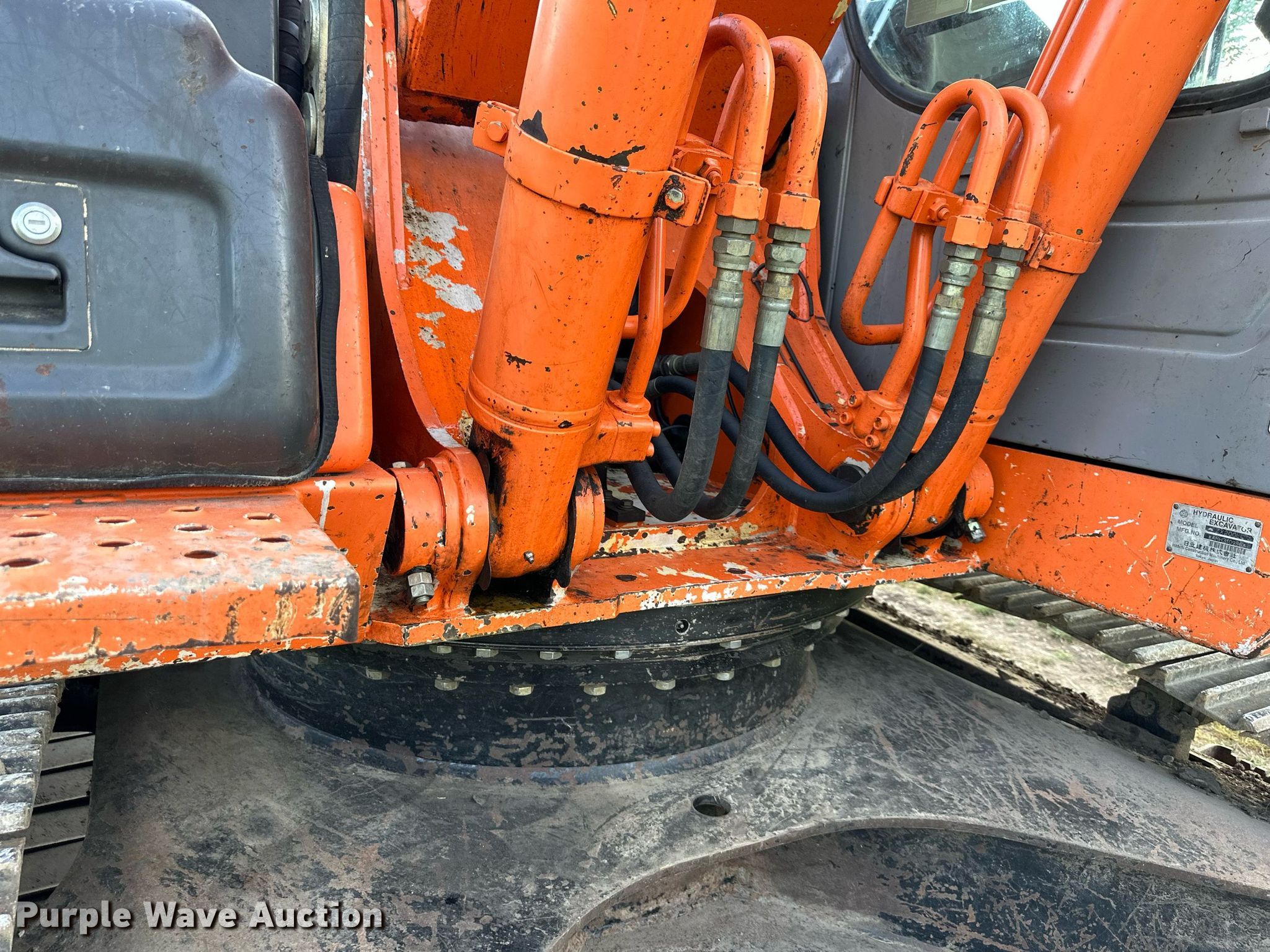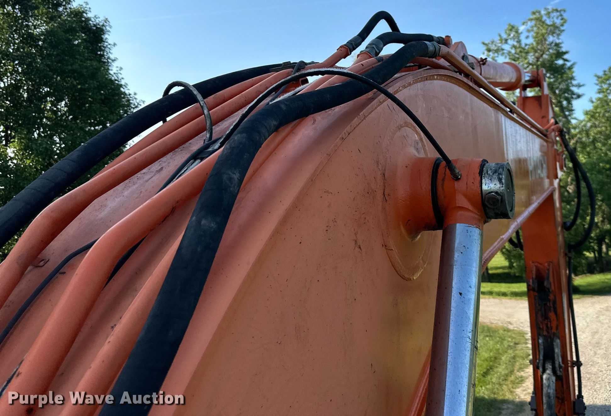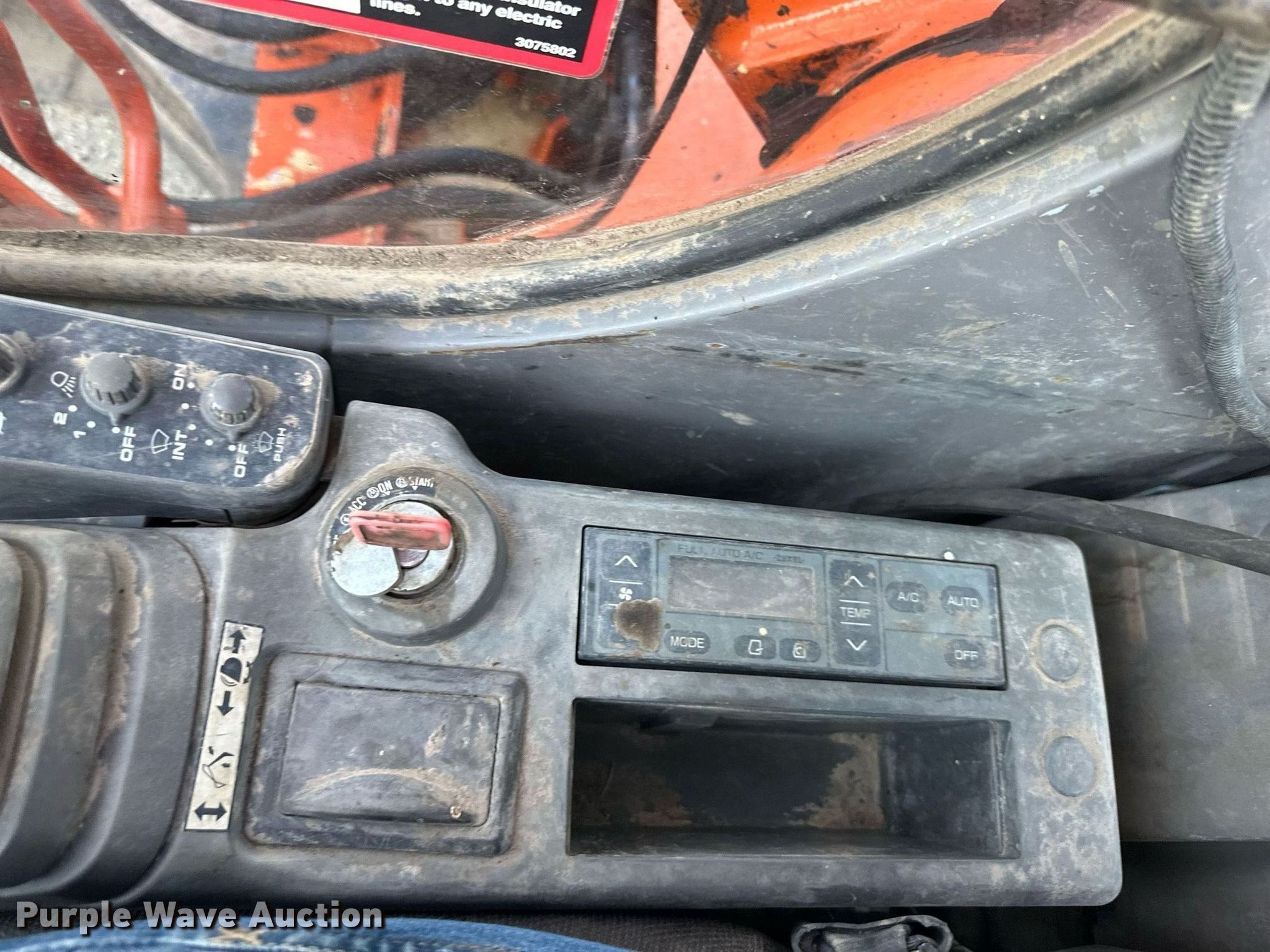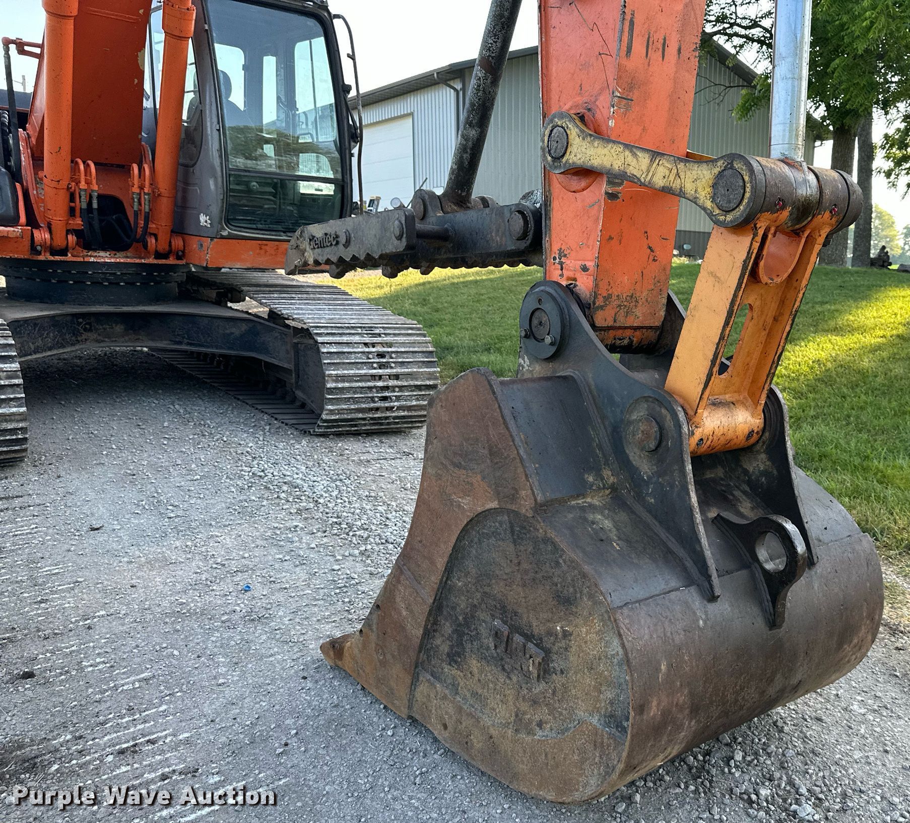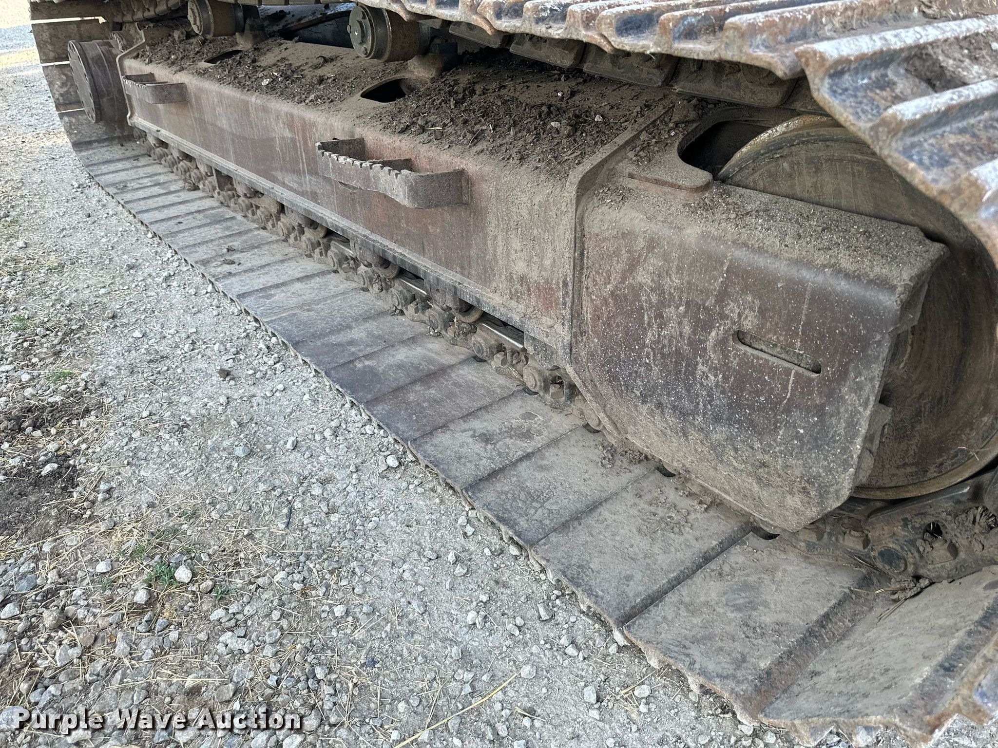 2006 Hitachi ZX200LC excavator. Hours: 10,364 on meter, Miles or hours may vary, unit still in use, Serial: ARH310986. Engine Isuzu AA-6BG1T, Displacement: 6.5L, Cylinders: 6, Fuel type: Diesel. Transmission Hydrostatic, Two speed travel. Operators station Enclosed cab, AC, Heat. Features Auxiliary hydraulics Standard, One-way, Counter weights, Removable, Boom Standard, Stick Stick length: 12', Thumb: Manual, Bucket Width: 40", Cutting edge: Weld-on, Teeth: 5. Tracks Width: 31.5", Steel, Grouser pads: Triple. Wolfe Farms. Helena, MO 64459