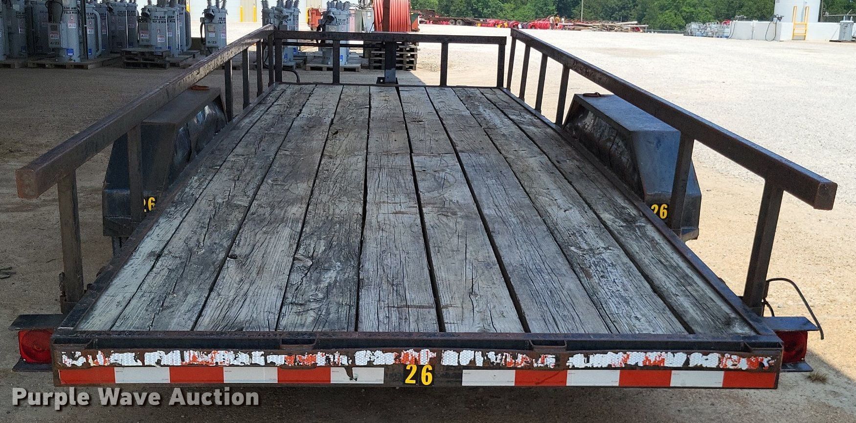 2001 R&W utility trailer. VIN: 4RWUF20261N019676, Unit #: 26. Dimensions Deck: 20' L x 82" W, Deck height: 28". Features Deck type: Wood. Chassis Hitch: Pintle, Landing gear: Single, Suspension: Spring, Brakes: Electric, Axles: Tandem. Tires Steel wheels, Size: 7.50R16LT. Missouri title. Title distribution may be delayed up to 14 days from verification of funds. Ozark Border Electric Cooperative. Poplar Bluff, MO 63902