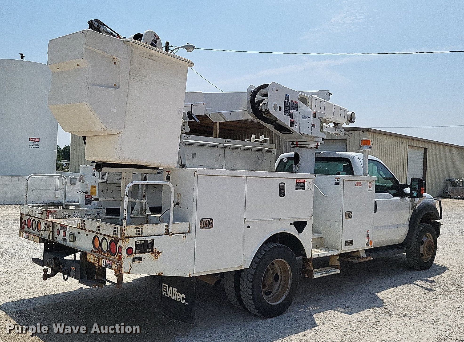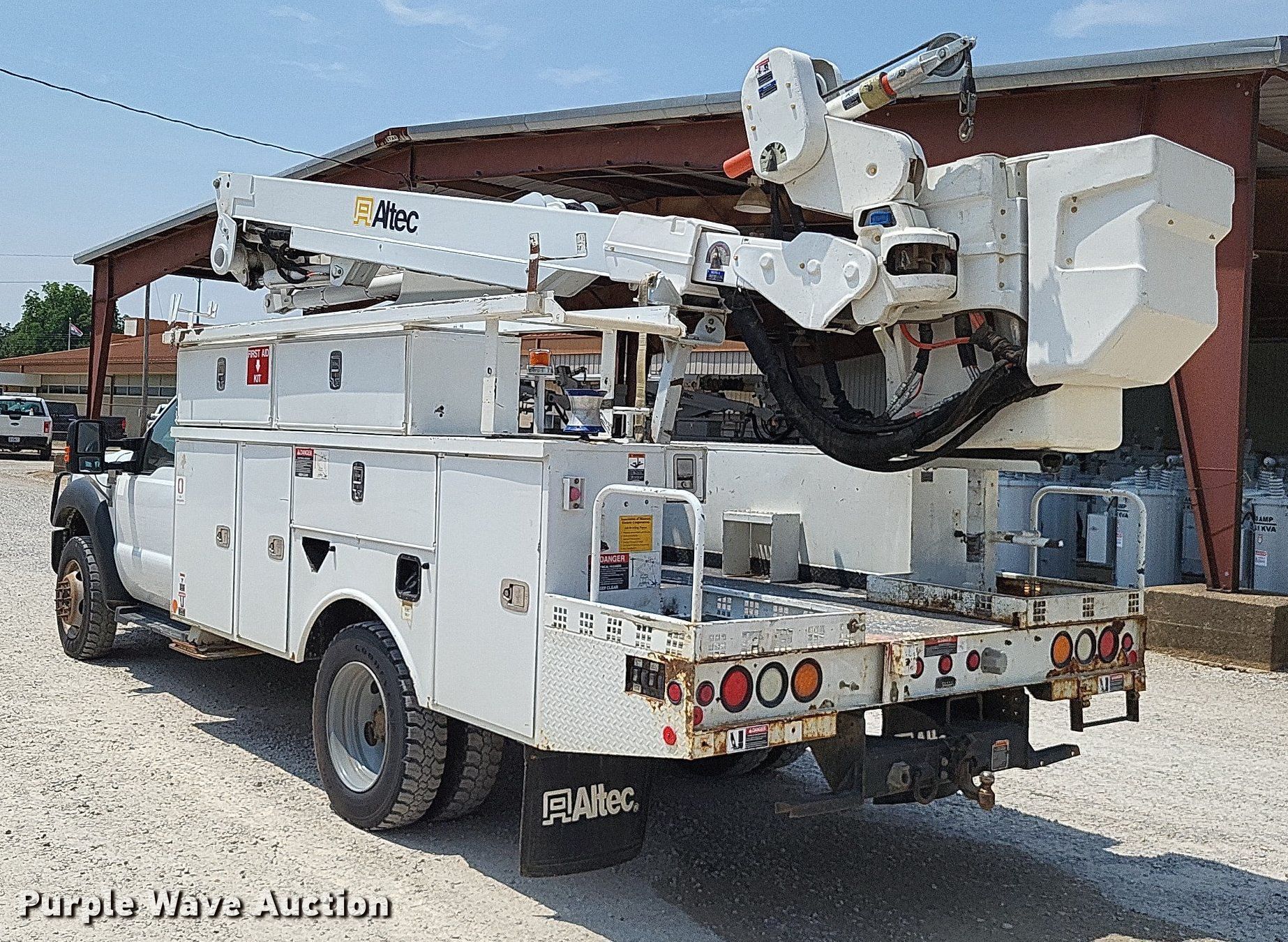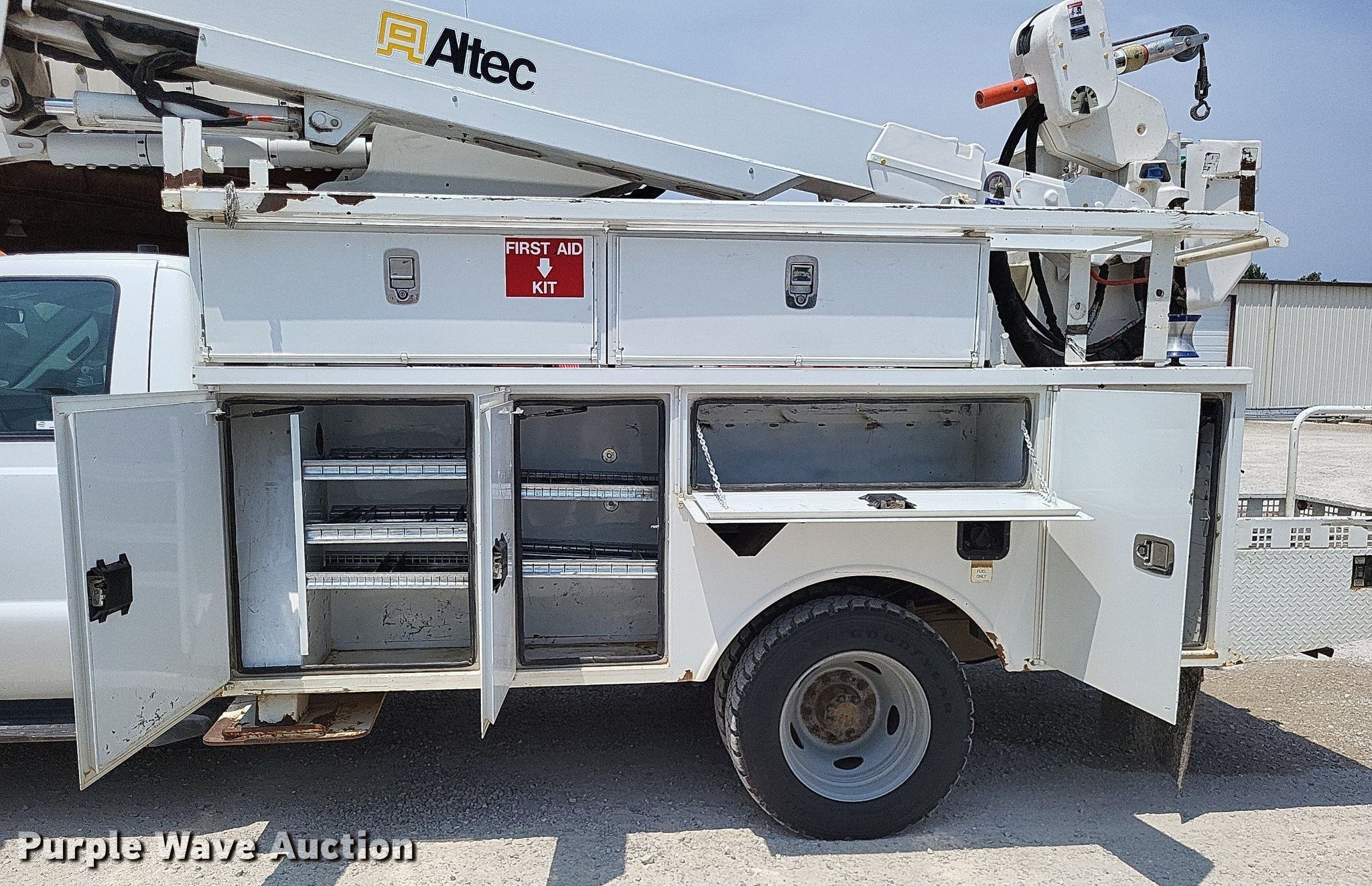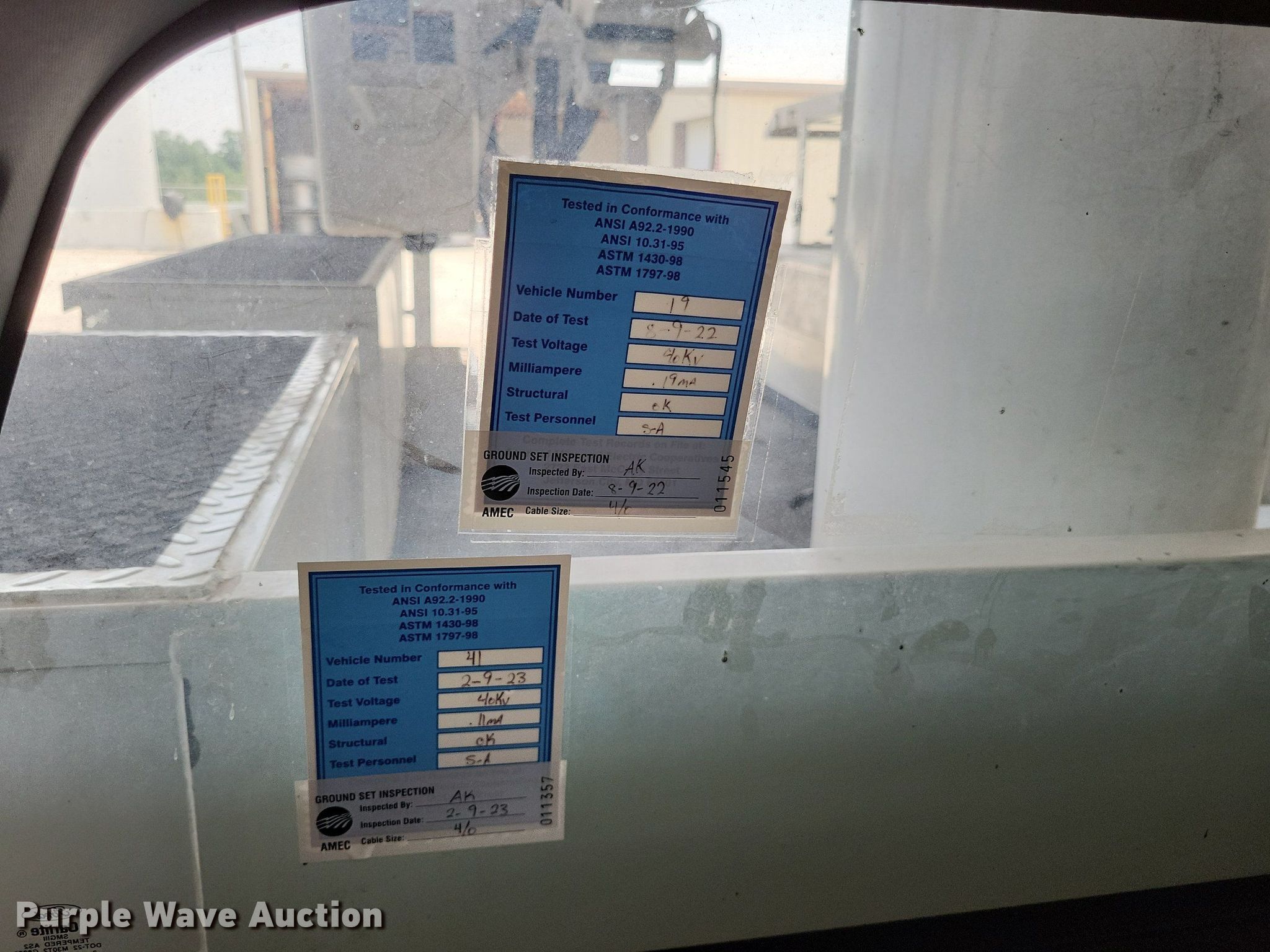 2012 Ford F550 Super Duty XL bucket truck. Miles: 146,170 on odometer, VIN: 1FDUF5HY5CEC49663, Unit #: 41. Engine Displacement: 6.8L, Cylinders: 10, Fuel type: Gas. Transmission Automatic. Chassis Axles: Single, Suspension: Spring, Brakes: Hydraulic, PTO, GVWR: 19,500 lbs. Interior AC, Heated mirrors, Power windows, Power locks, Auxiliary controls, Brake controller. Features Bed Altec , Serial: 014-24518239/27-23925499-11-12, 161" L x 94" W, Boom Altec AT40M, Serial: 1012CZ0988, Maximum lift capacity: 400 lbs, Maximum lift height: 40', Boom type: Articulating, Insulated, Telescopic, Man basket, Boom controls Ground, Platform/ basket, Material handler, Certification valid through: 02/2024. Tires Size: 8R19.5. Missouri title. Title distribution may be delayed up to 14 days from verification of funds. Ozark Border Electric Cooperative. Poplar Bluff, MO 63902