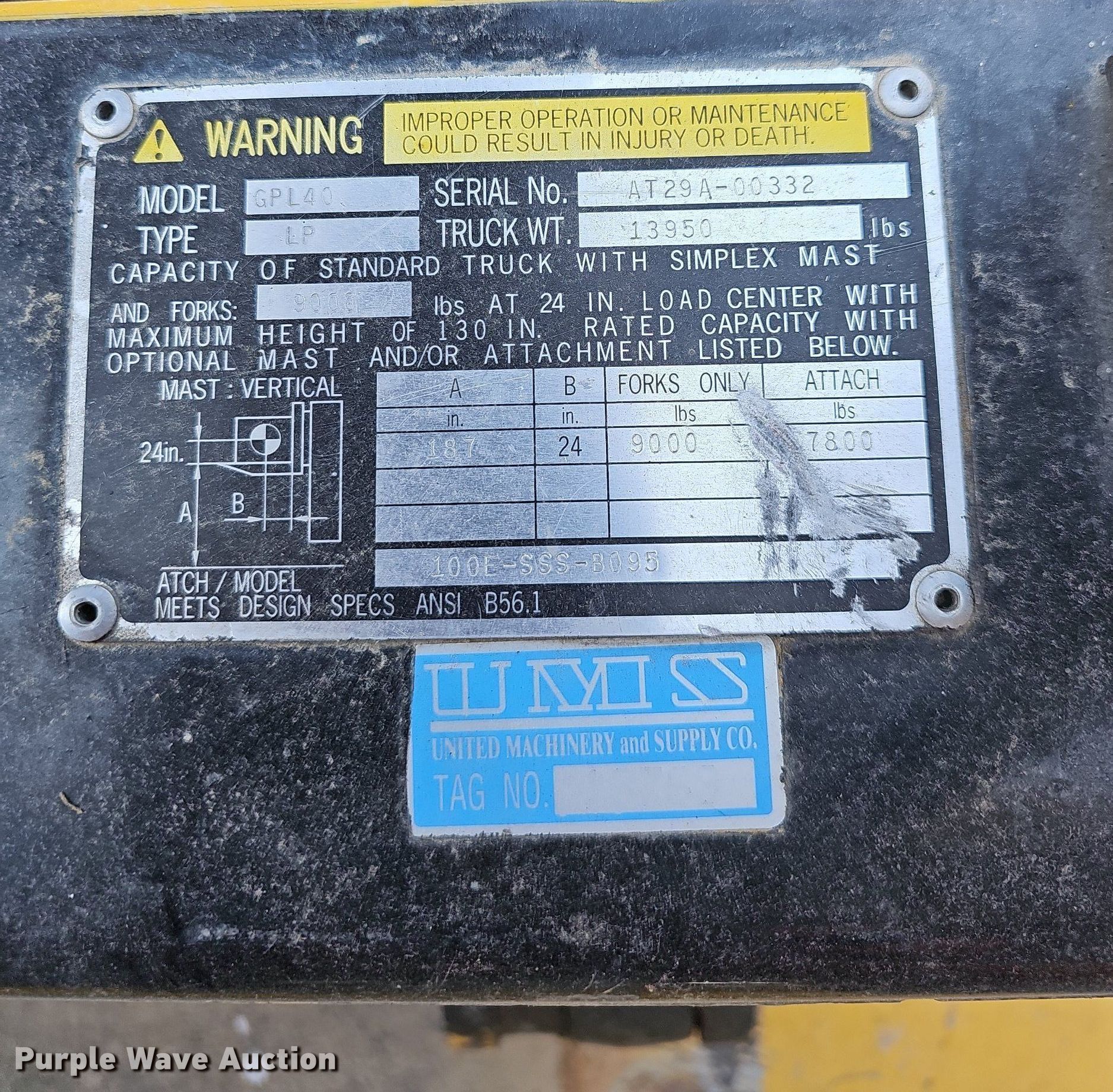 Purple Wave is selling a used Cushion Tire or Pneumatic Forklift in Missouri. This item is a Caterpillar GPL40 forklift with the following: Hours: 6,856 on meter, Serial: AT29A-00332
