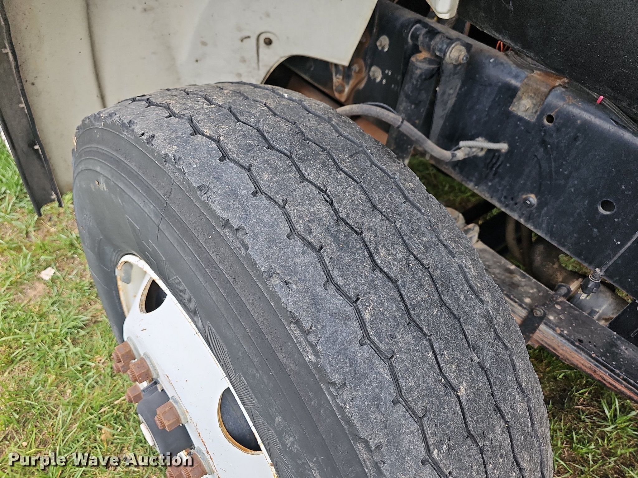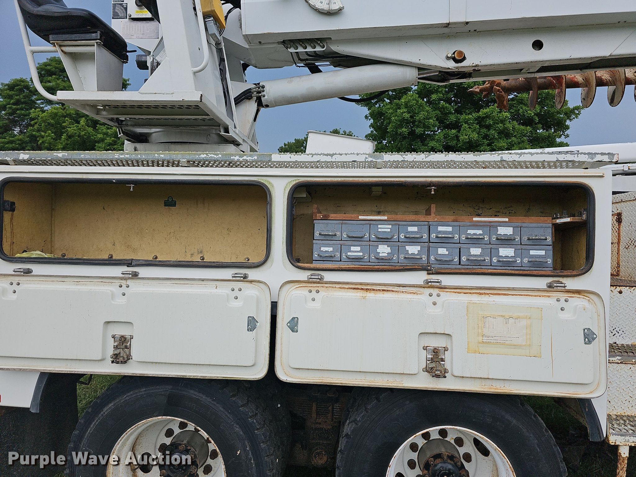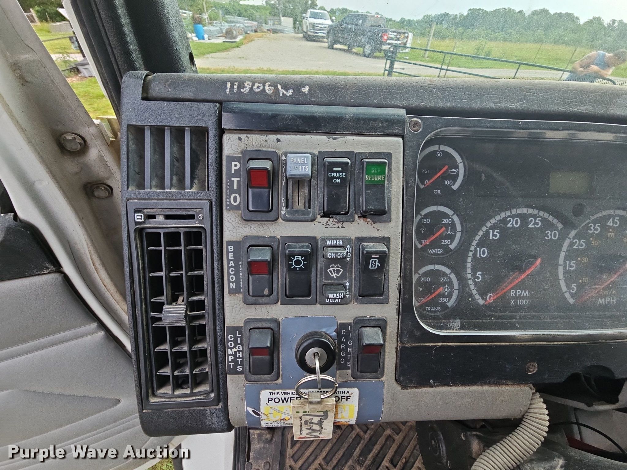 2002 Freightliner FL80 Crew Cab digger derrick truck. Miles: 160,586 on odometer, VIN: 1FVHBXAK82HK27872. Engine Caterpillar 3126, Displacement: 7.2L, Cylinders: 6, Fuel type: Diesel. Transmission Allison, Automatic. Chassis Axles: Tandem, Differential lock: Full, Suspension: Spring over walking beam, Brakes: Air, PTO. Interior AC, Heat, Heated mirrors, Cruise control, Auxiliary controls. Features Bed Astroia, Serial: 190-01-2, 17' L x 93" W, Boom Altec D02050, Serial: 0302-Y0763, Boom length: 40', Maximum lift capacity: 30,000 lbs, Maximum lift height: 40', Boom type: Telescopic, Man basket, Boom controls Ground, Platform/ basket, Remote control, Material handler, Pole guide, Auger Diameter: 18".. Tires Front: 315/80R22.5, Rear: 11R22.5. Notes Man basket liner included. Missouri title. Title distribution may be delayed up to 14 days from verification of funds. DIY Broadband LLC. 14567 West Pine Hill Lane. Billings, MO 65610