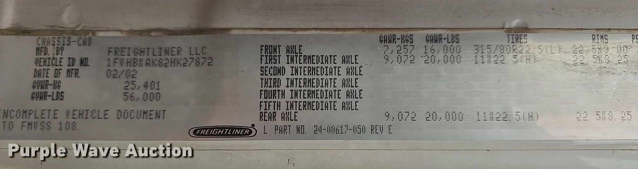 Purple Wave is selling a used Digger Derrick Truck in Missouri. This item is a 2002 Freightliner FL80 Crew Cab digger derrick truck with the following: Miles: 160,586 on odometer, VIN: 1FVHBXAK82HK27872