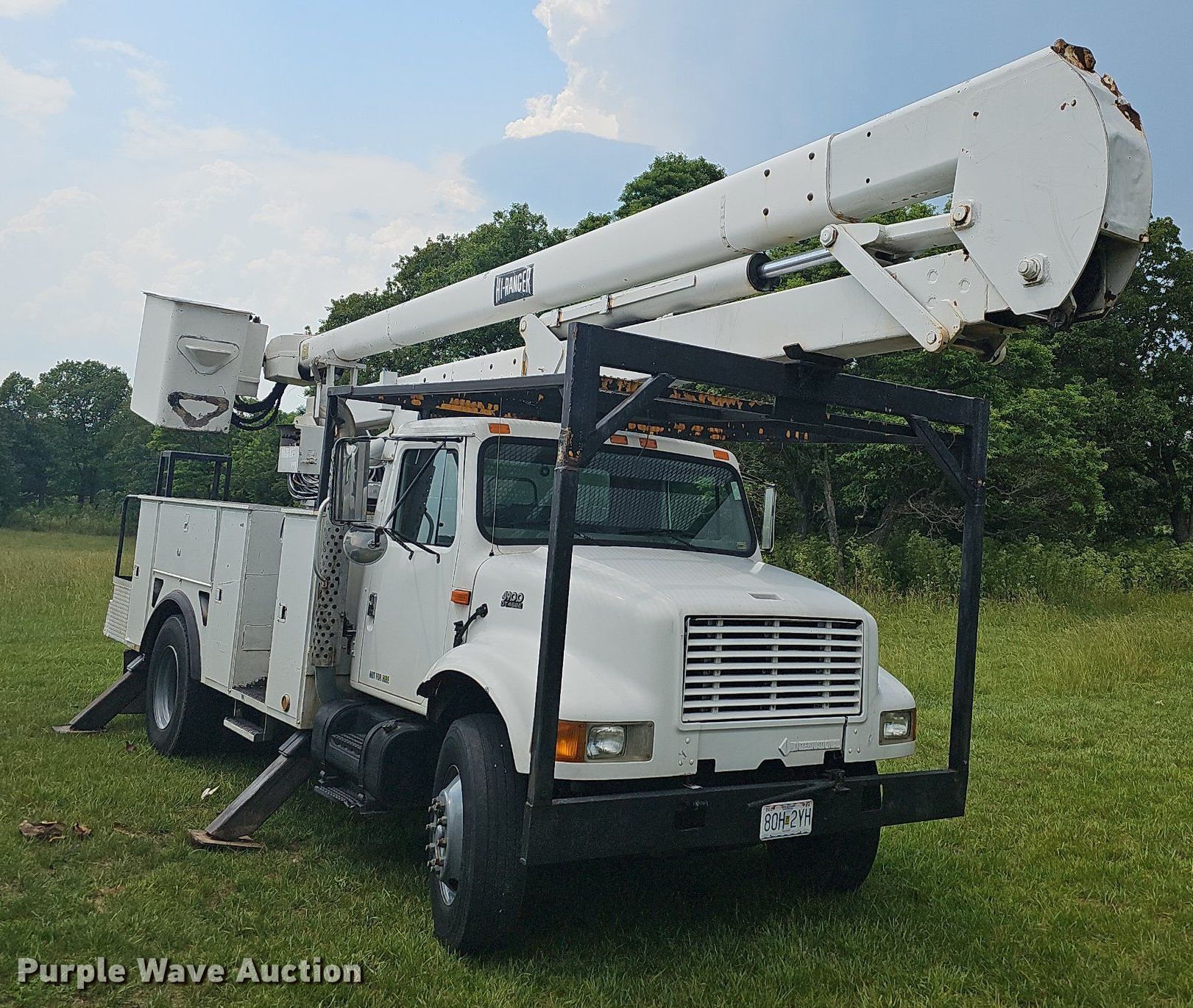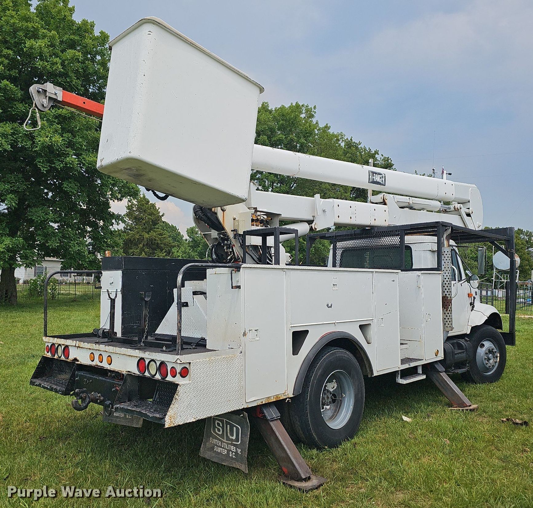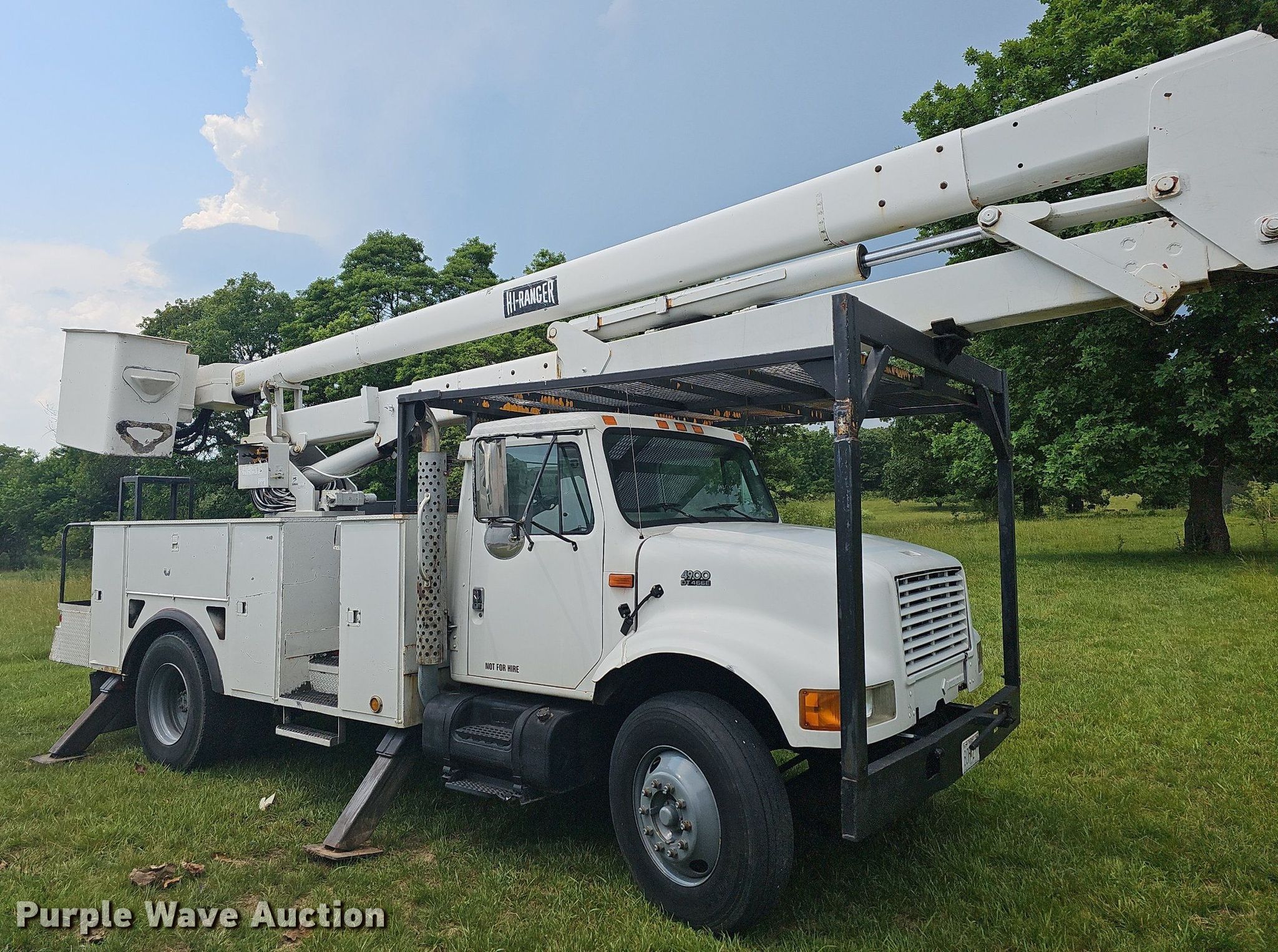 This 2000 International 4900 bucket truck will sell to the highest bidder regardless of price.