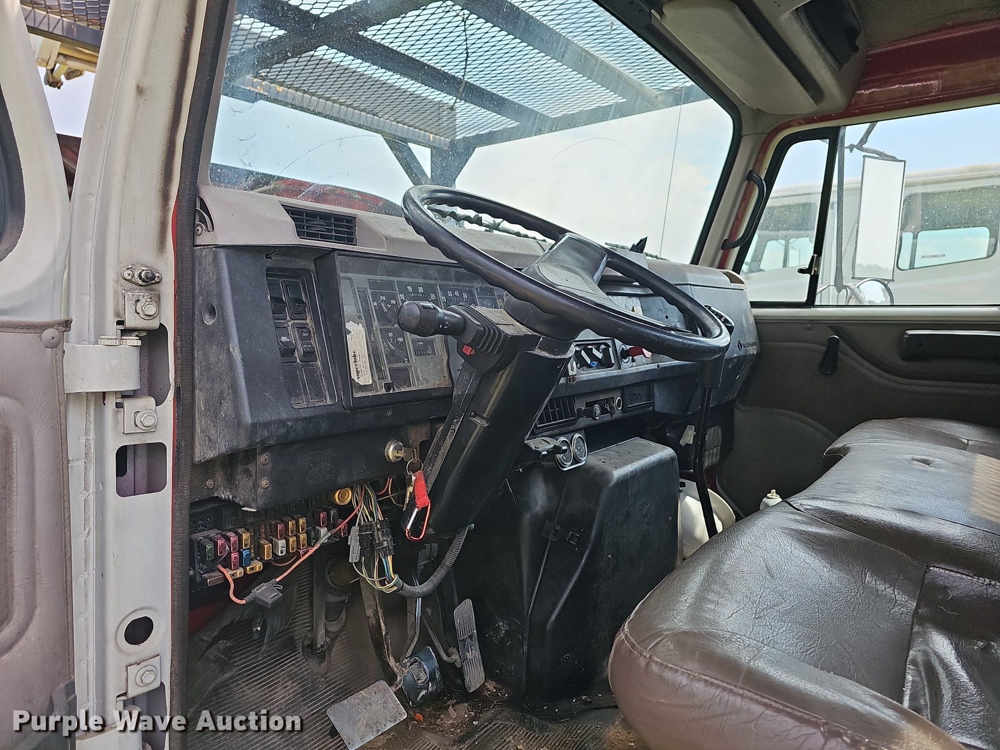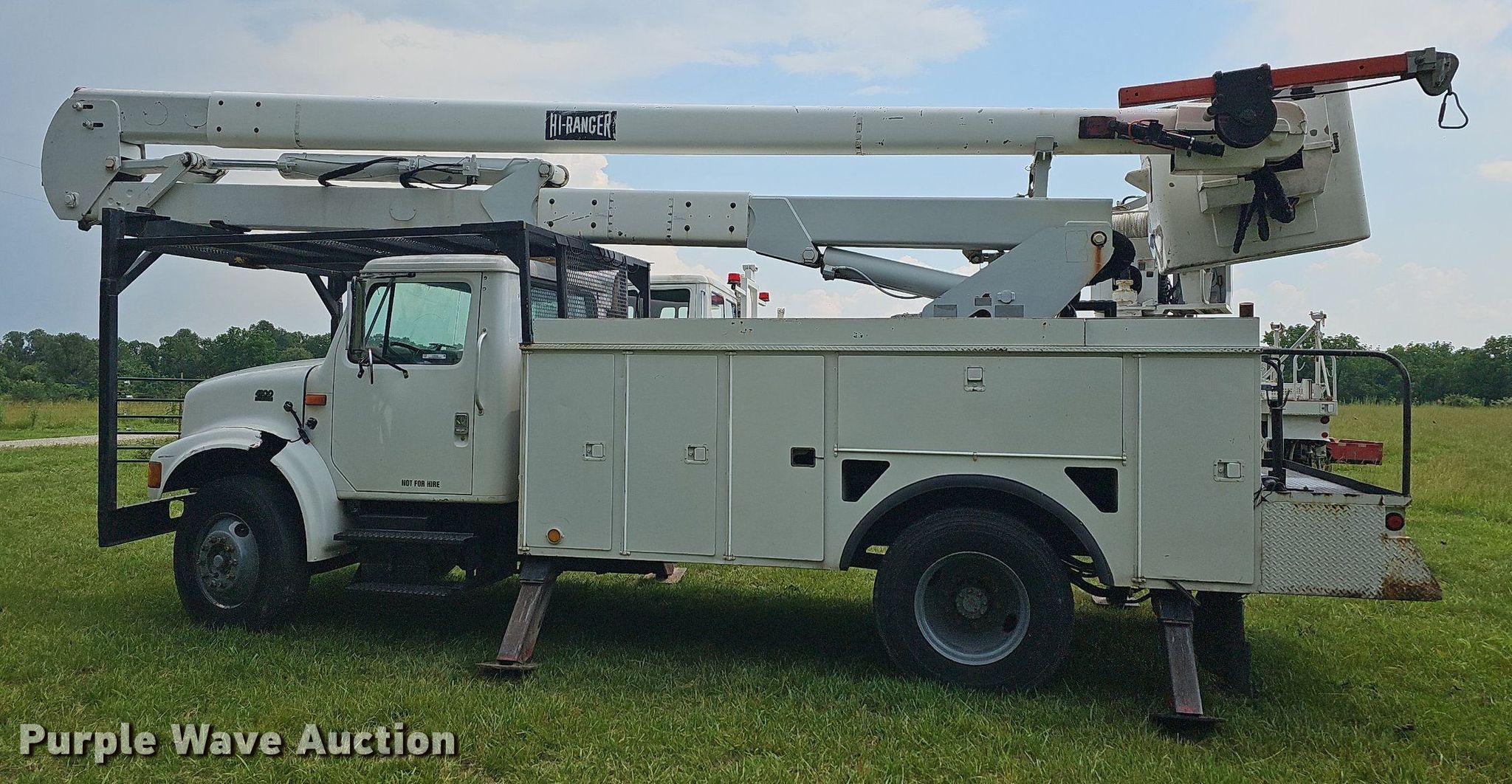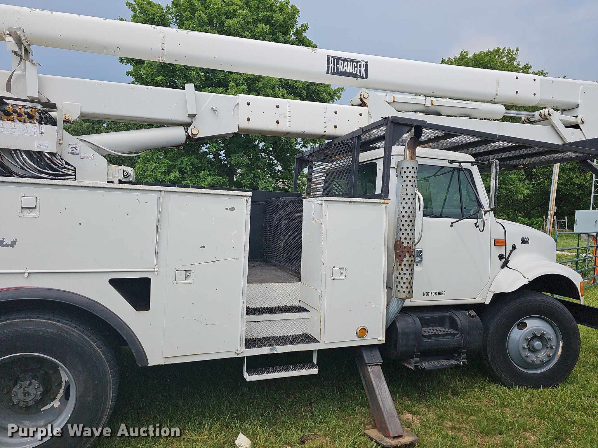 This 2000 International 4900 bucket truck will sell to the highest bidder regardless of price.