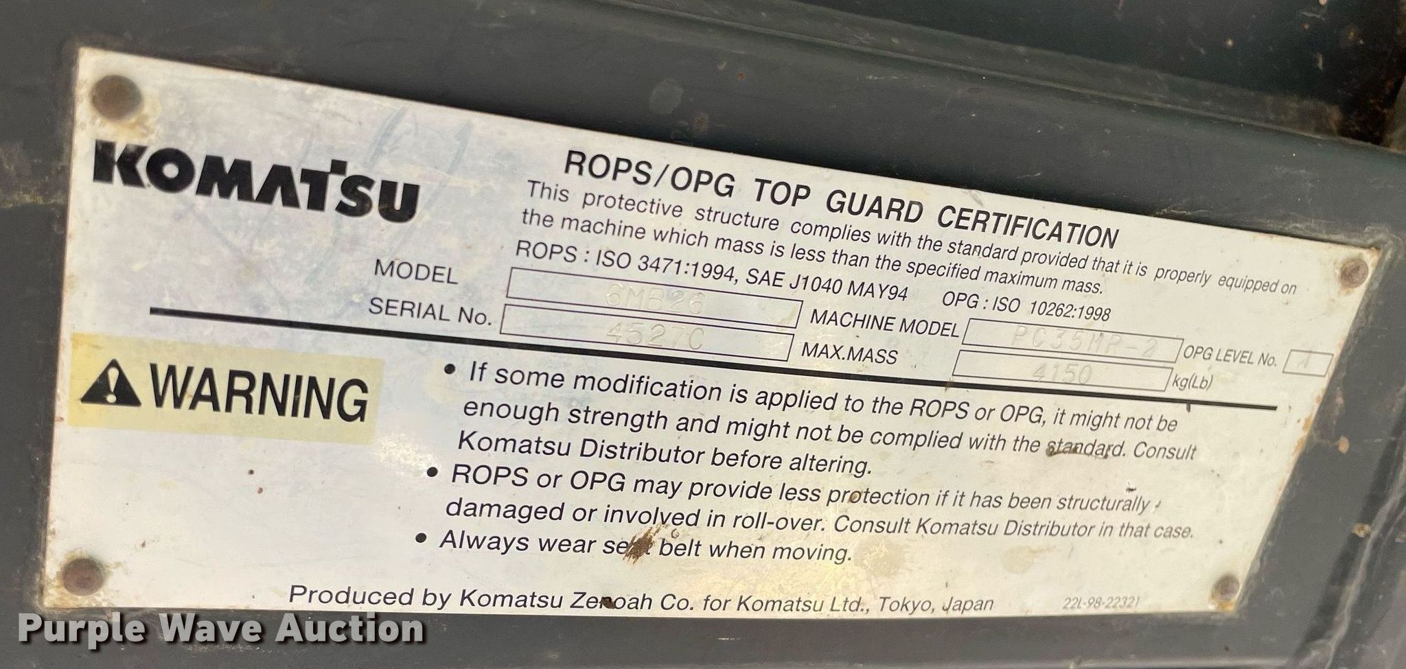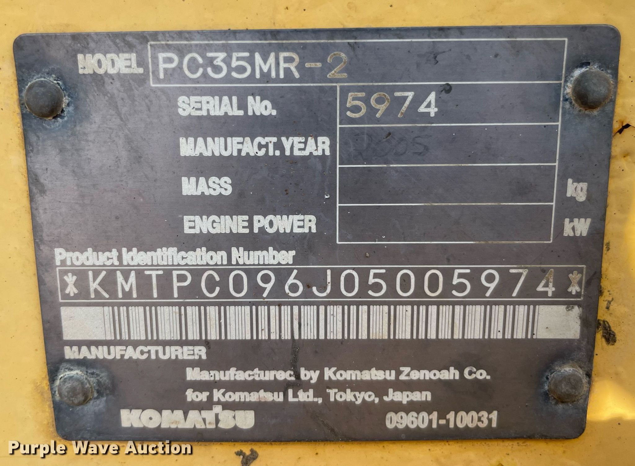 Purple Wave is selling a used Mini Excavator in Kansas. This item is a 2005 Komatsu PC35MR-2 mini excavator with the following: Hours: Unknown, Serial: KMTPC096J05005974, Unit #: 7